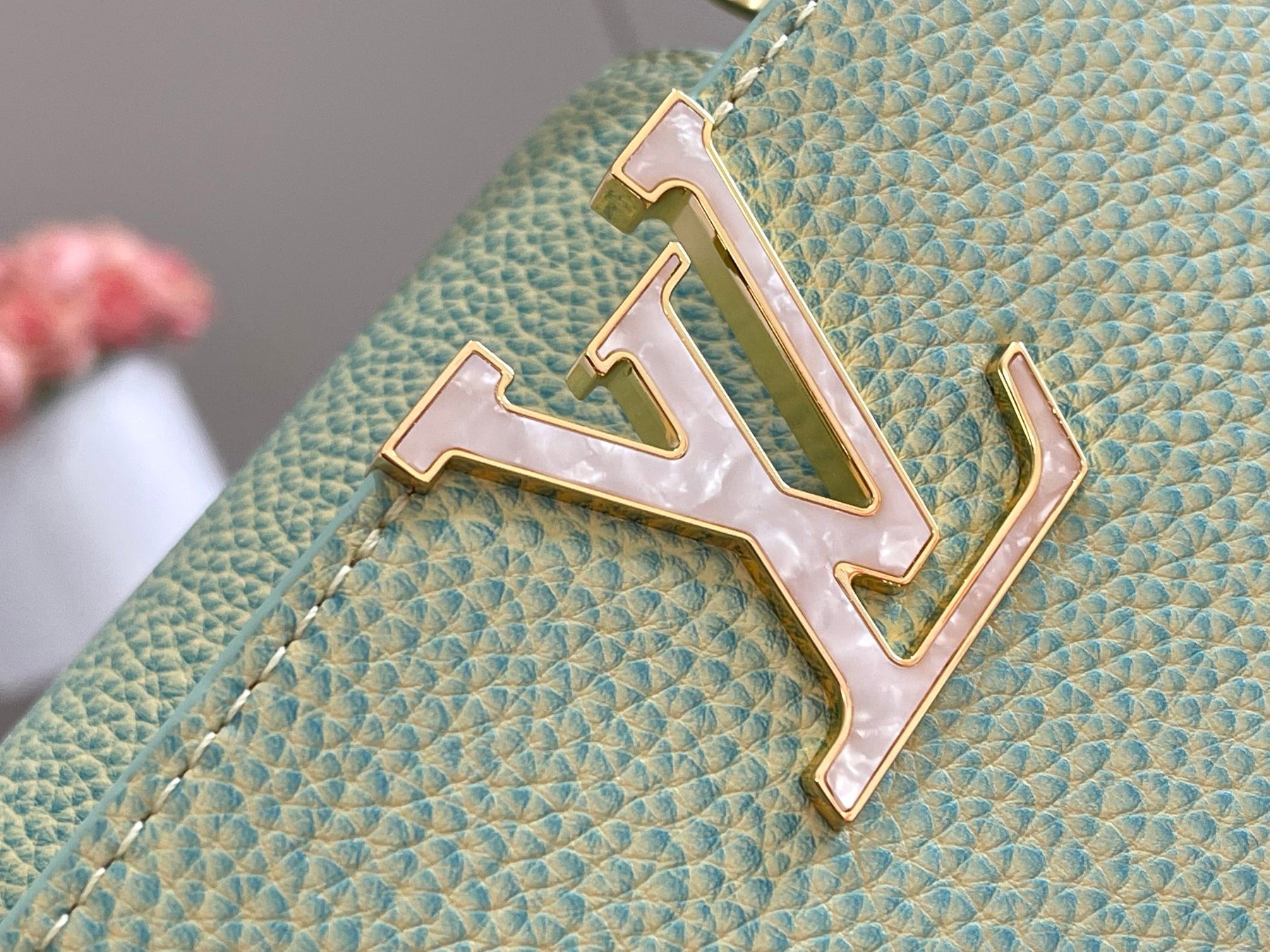Capucines BB Handbag in Green and Yellow with Mother-of-Pearl Accent