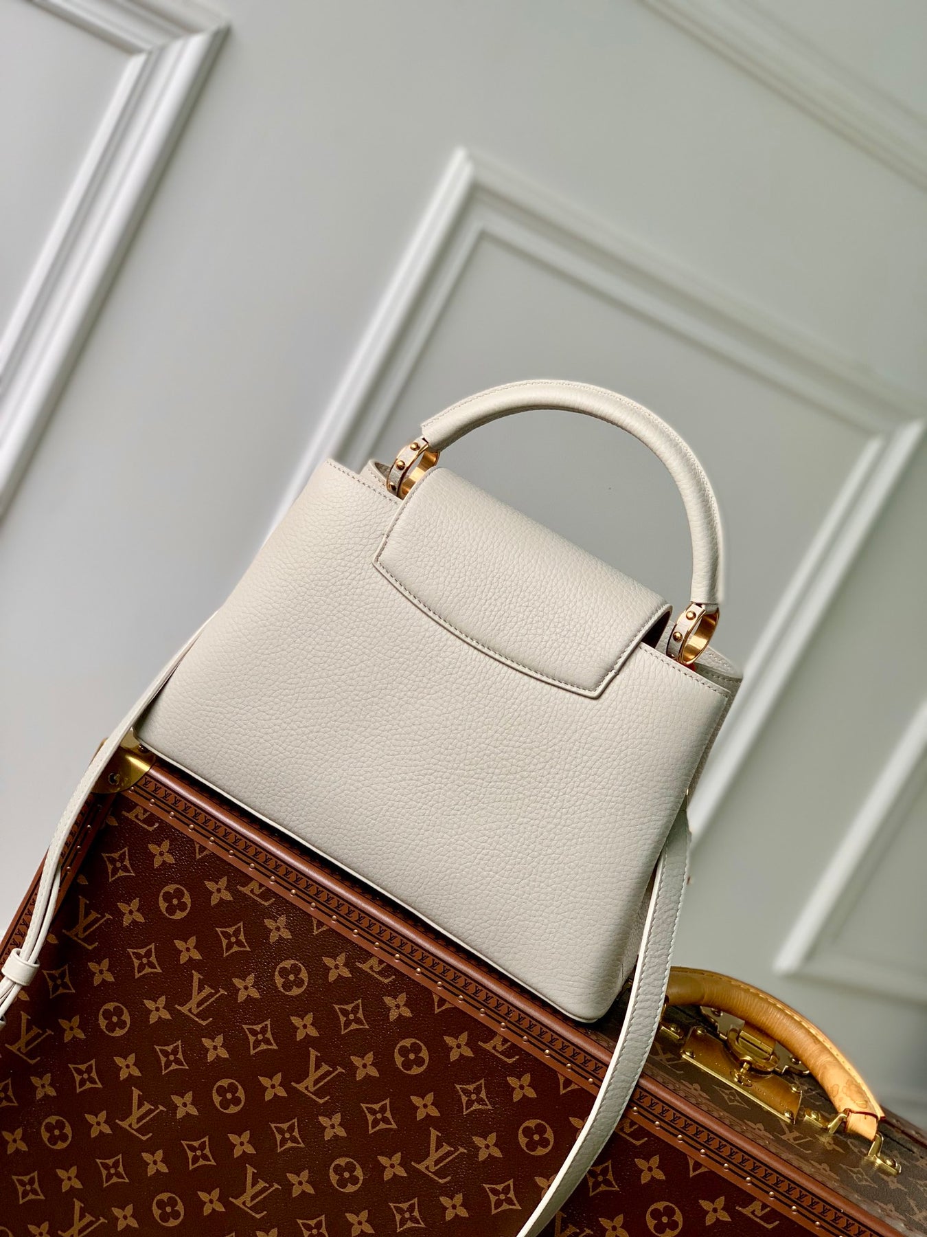 Introducing the Capucines Medium Handbag in a sophisticated gray hue. Part of our exclusive Naying Style series, this season's handbag is designed to celebrate femininity and elegance. Crafted from luxurious soft cow leather, it features intricate metal links woven into a delicate chain, adding a touch of sophistication. The handbag is adorned with enamel accents and scattered Monogram Dhlo flowers, enhancing its unique charm. The enamel brand logo adds a jewelry-like texture, elevating the overall aesthetic.