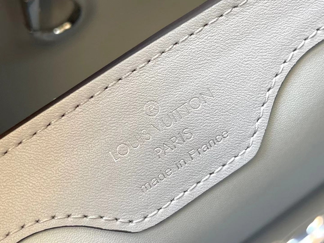 Introducing the Capucines Small Handbag, a luxurious blend of elegance and functionality. Crafted from premium Taurillon cow leather and exquisite mink fur, this handbag captures the enchanting spirit of winter. The chic gray hue is complemented by a striking silver buckle, adding a touch of sophistication to any ensemble.