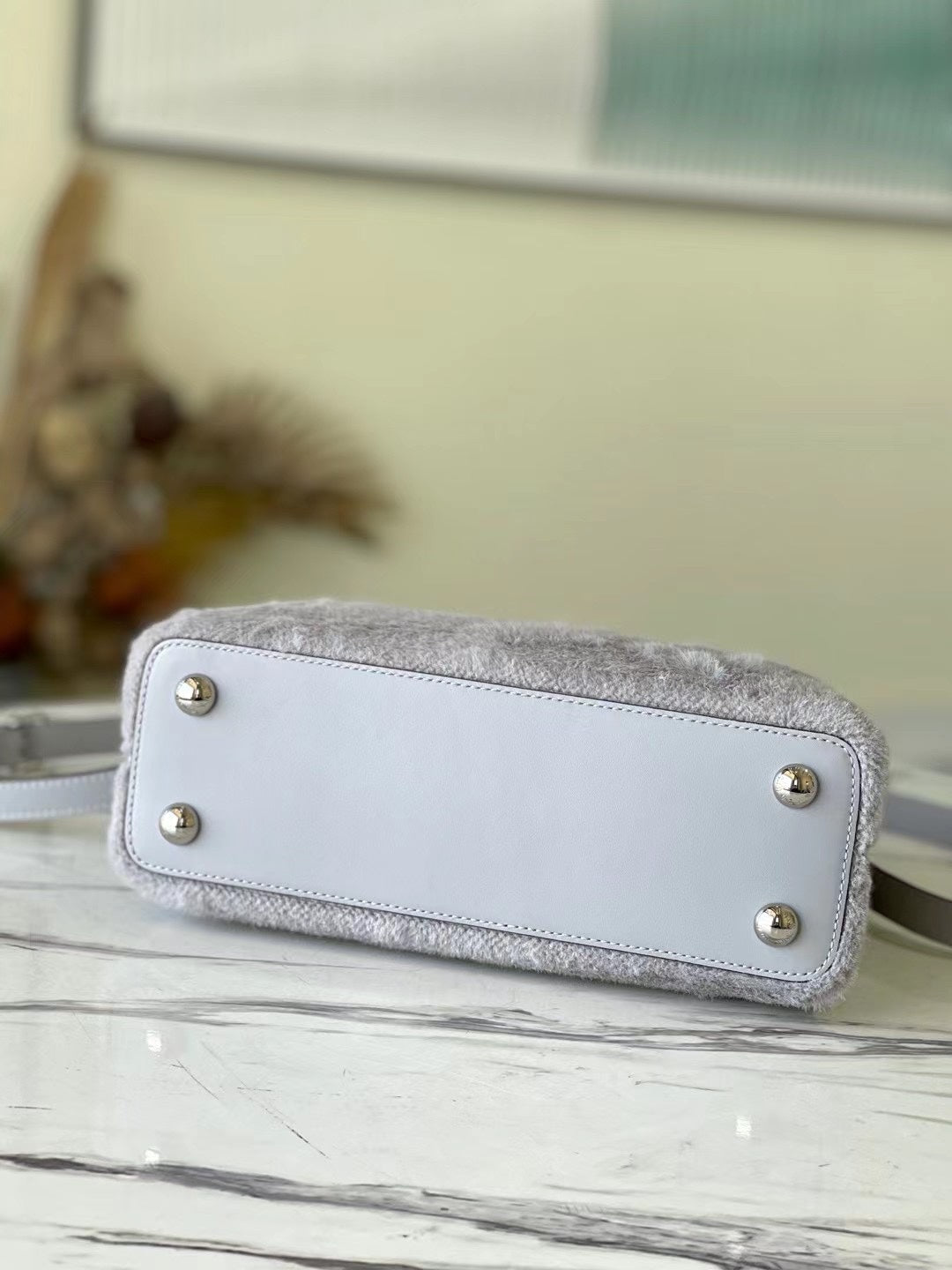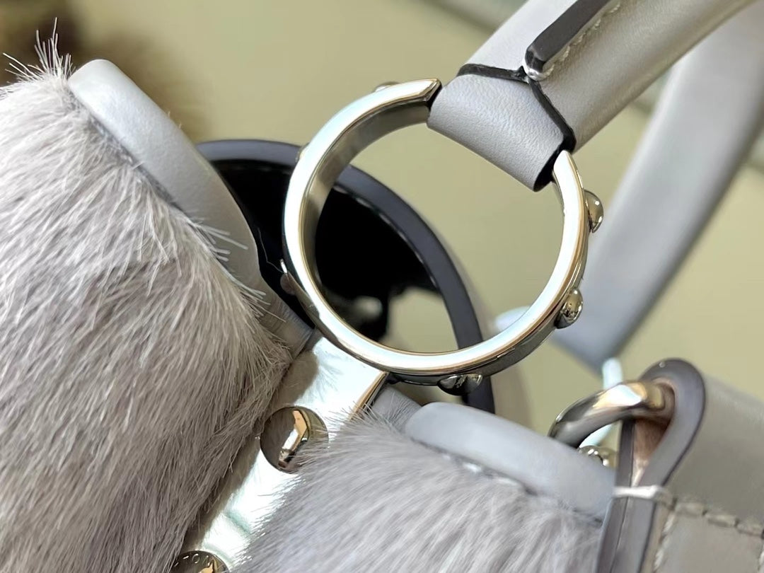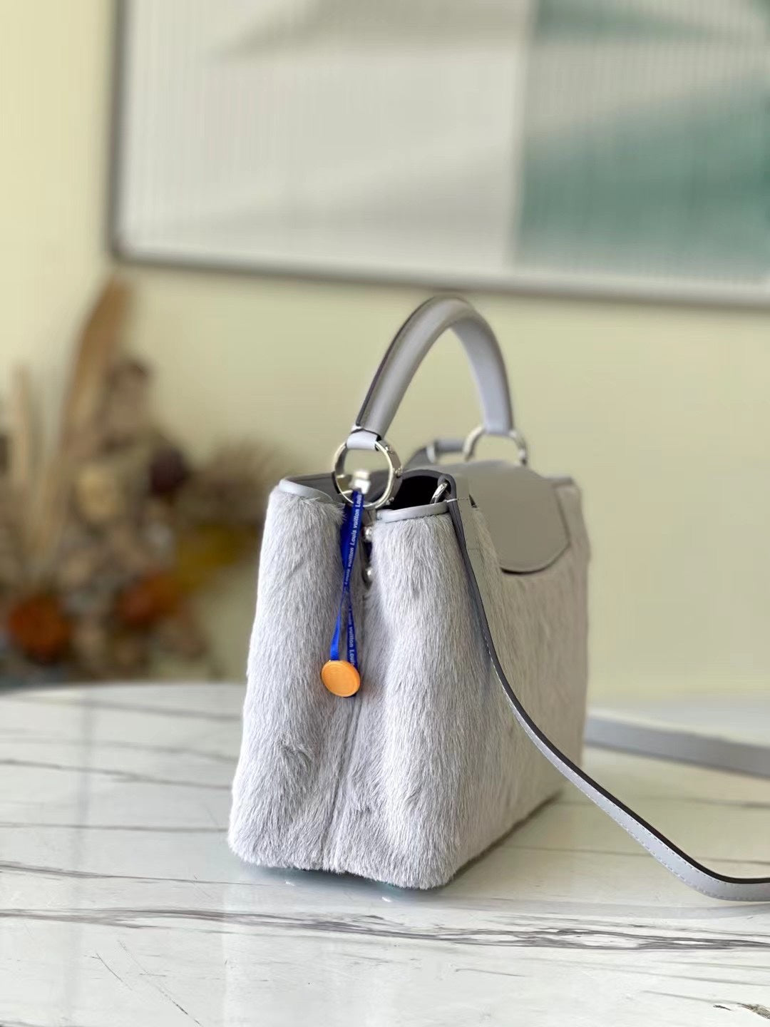 Capucines Small Handbag in Gray Mink Fur and Taurillon Leather