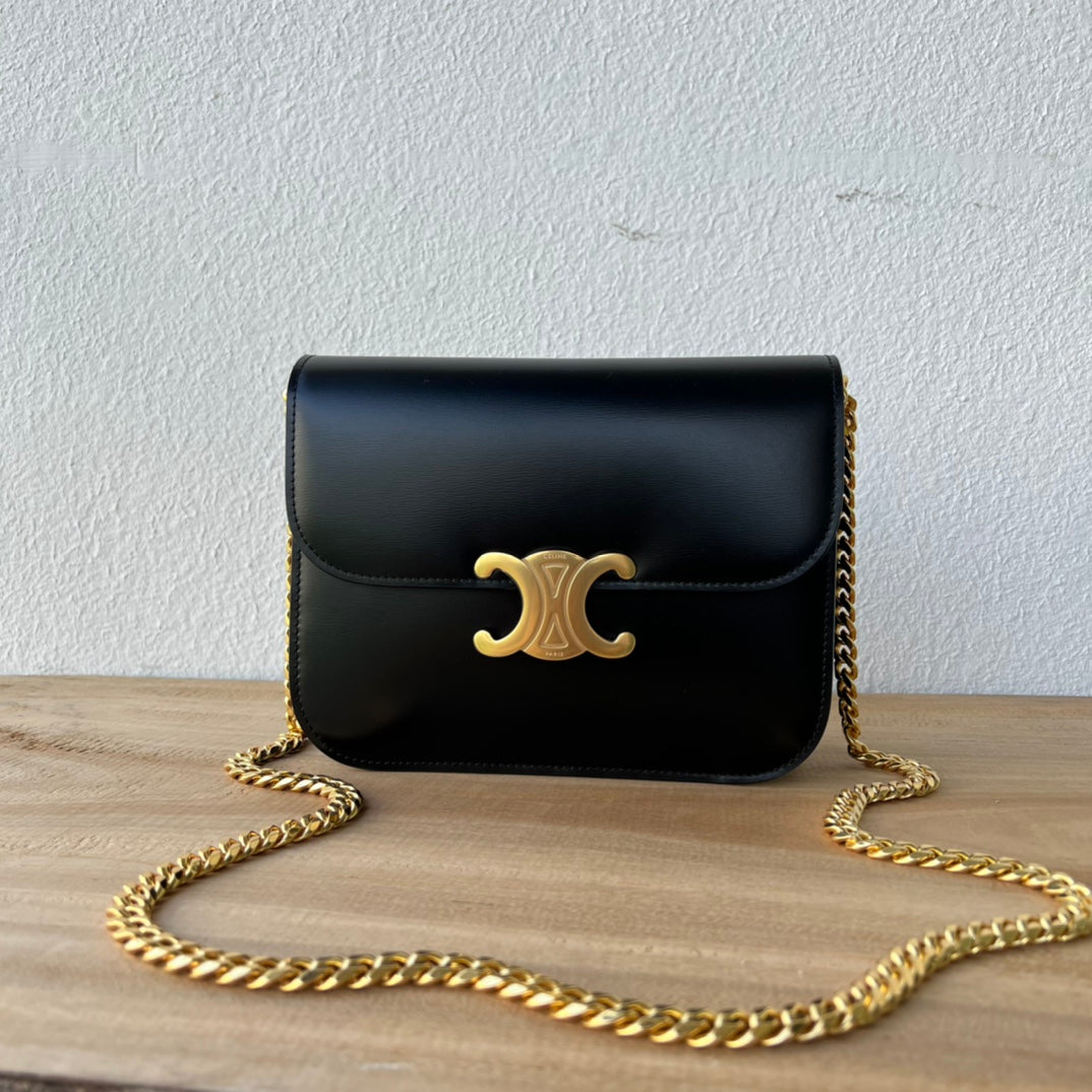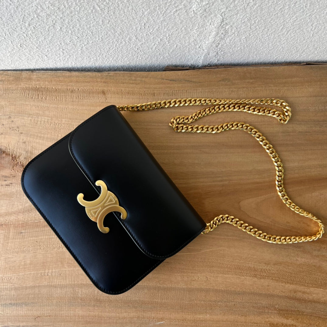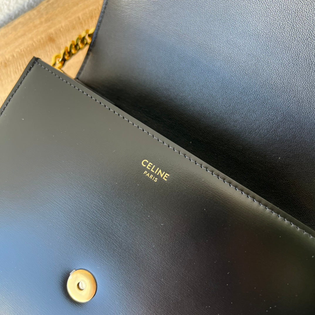 Celine College TRIOMPHE Classic Black Gold Chain Bag