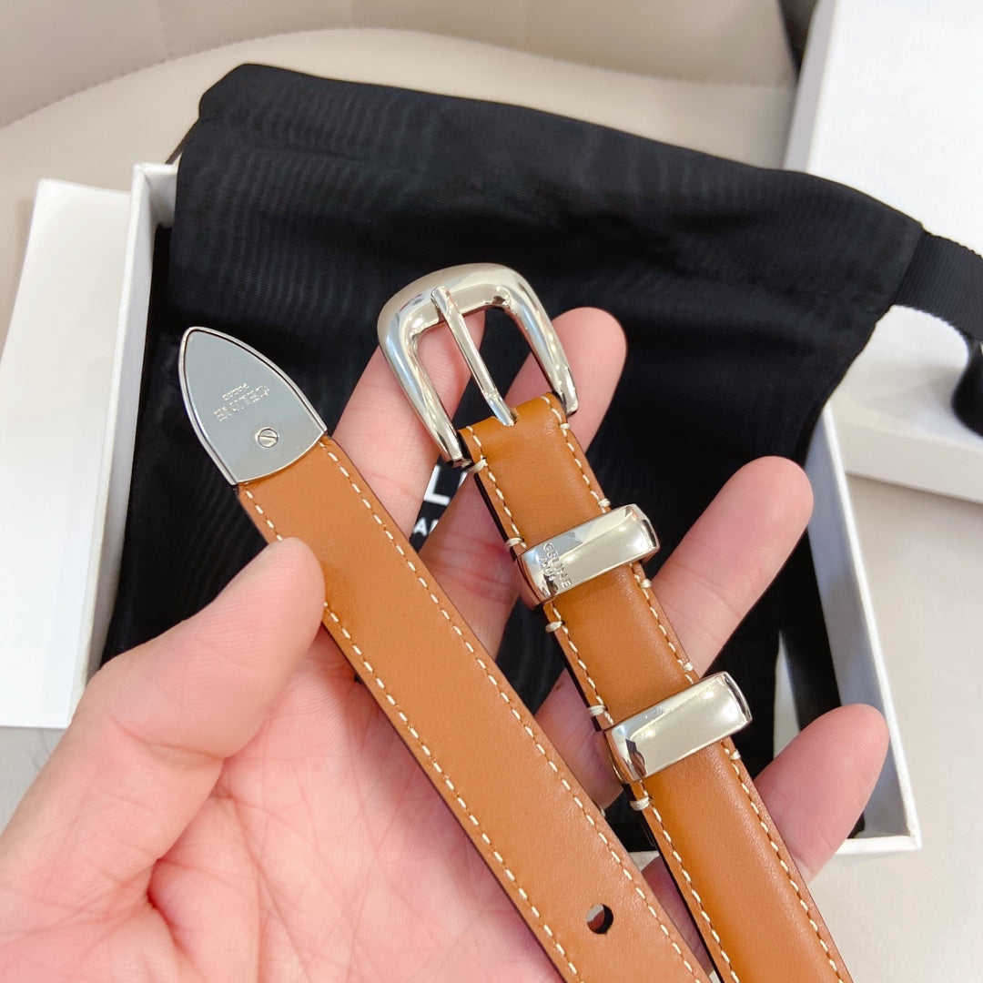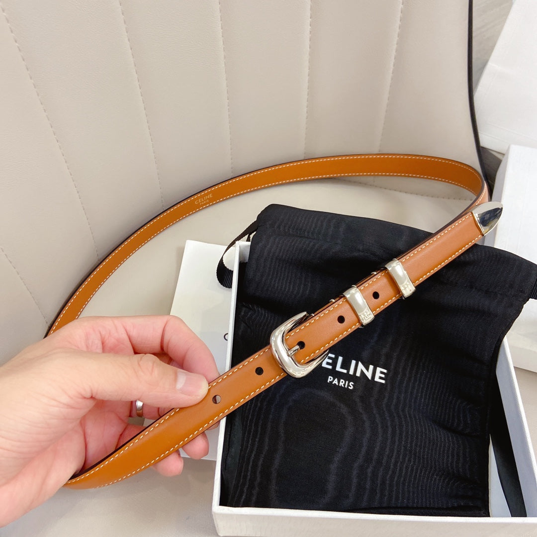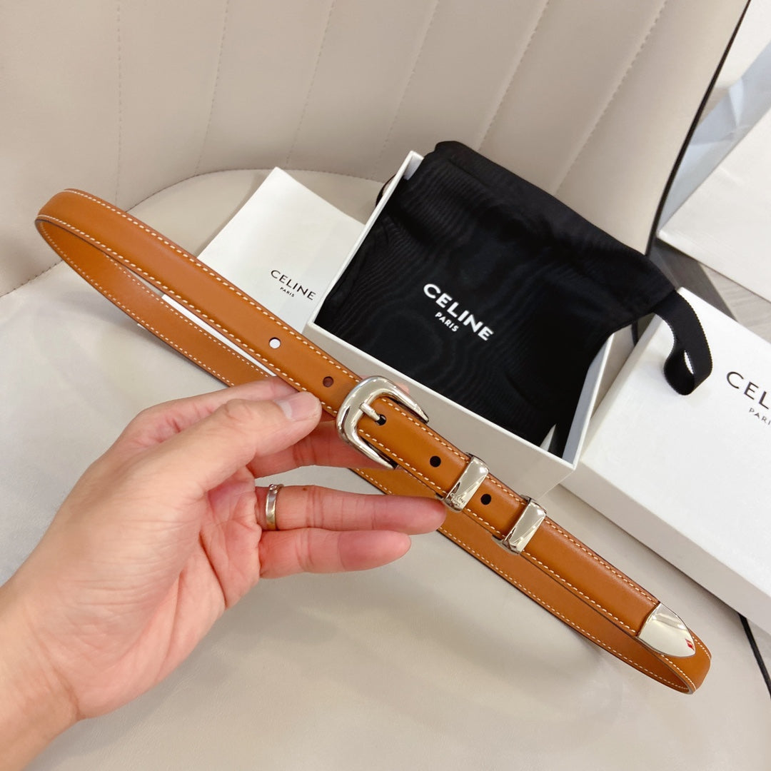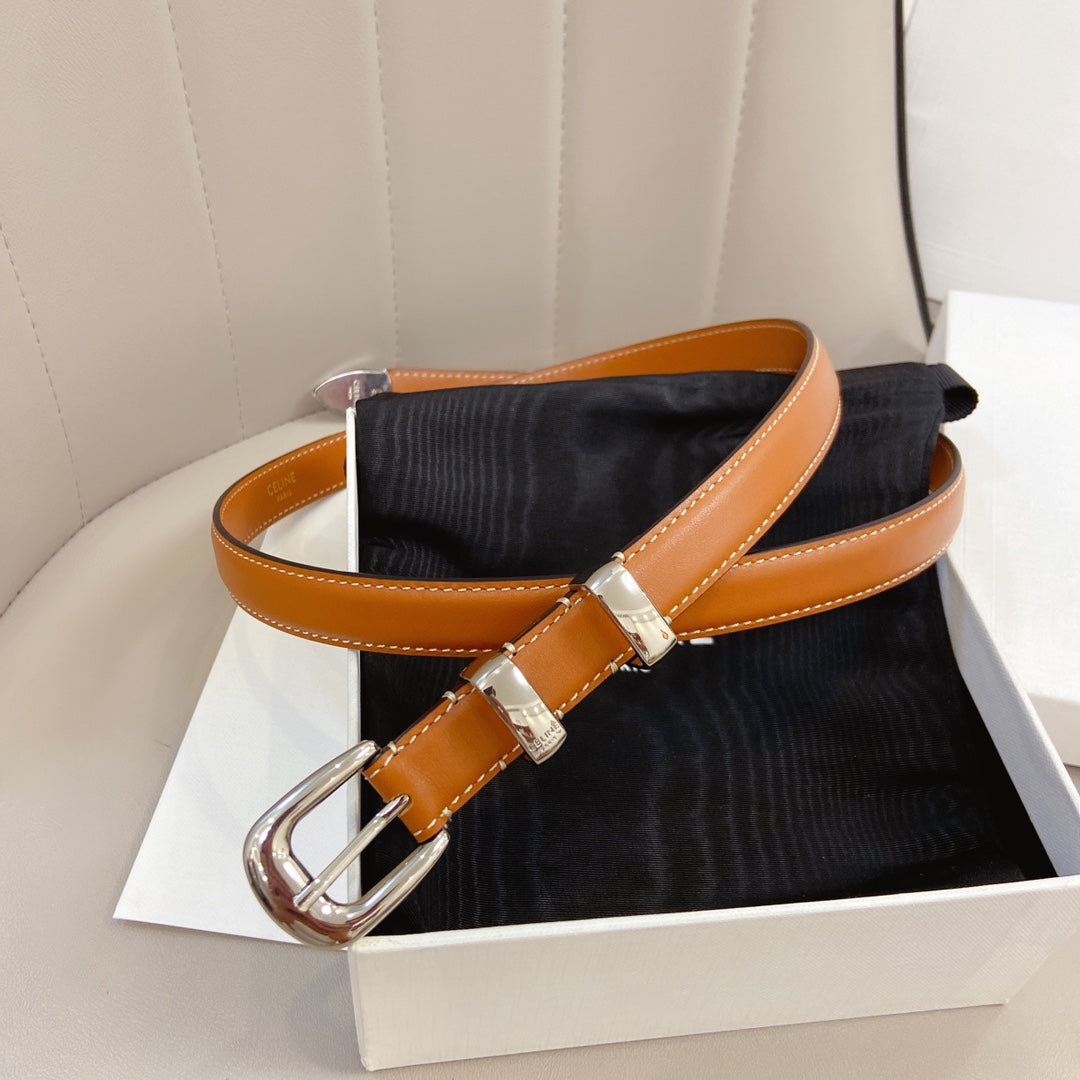 Elevate your style with the Celine Women's Elegant Cow Leather Belt, designed for the modern woman. Crafted from smooth brown cow leather, this belt features a sleek width of 1.8 cm (0.7 inches) and showcases a luxurious fine palladium-plated pin buckle.
