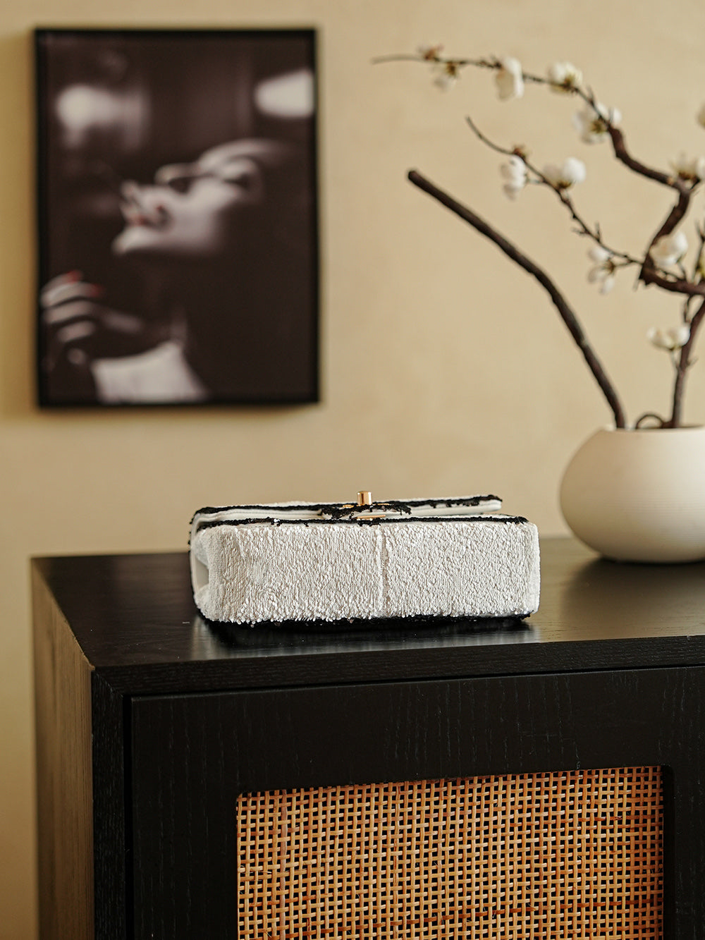 Introducing the Chane25ss Sequin Series, where elegance meets functionality in a chic crossbody bag. Measuring 13 x 20 x 7 cm, this stunning accessory features a classic rhombus embroidery method, accentuating its three-dimensional design in a sophisticated black and white color scheme.
