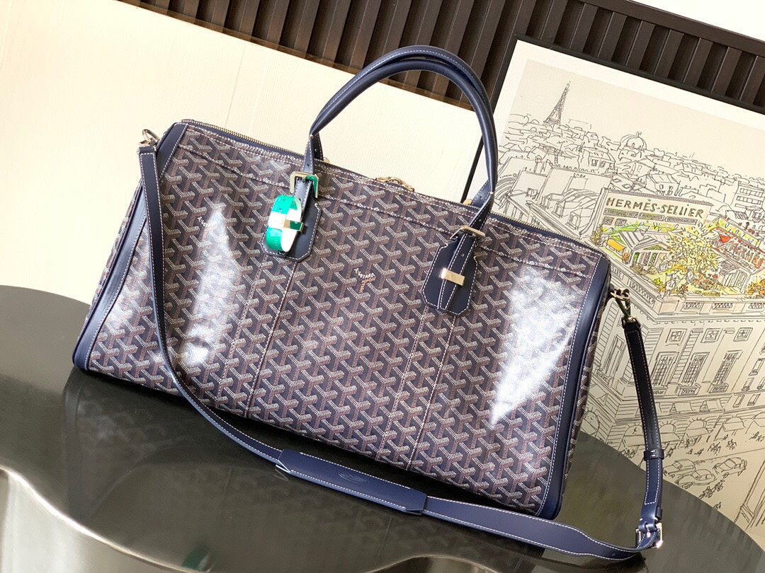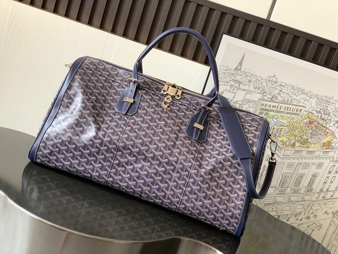 Introducing the CROISIERE Handbag, your perfect travel companion. With dimensions of 26 cm x 26 cm x 50 cm, this sophisticated dark blue handbag offers ample space to securely transport and protect your personal belongings. The unique padlocked zipper ensures your items stay safe, while the optional shoulder strap provides versatile carrying options. Ideal for short trips and air travel, the CROISIERE handbag combines functionality with an eye-catching design, making it a must-have accessory for any traveler.
