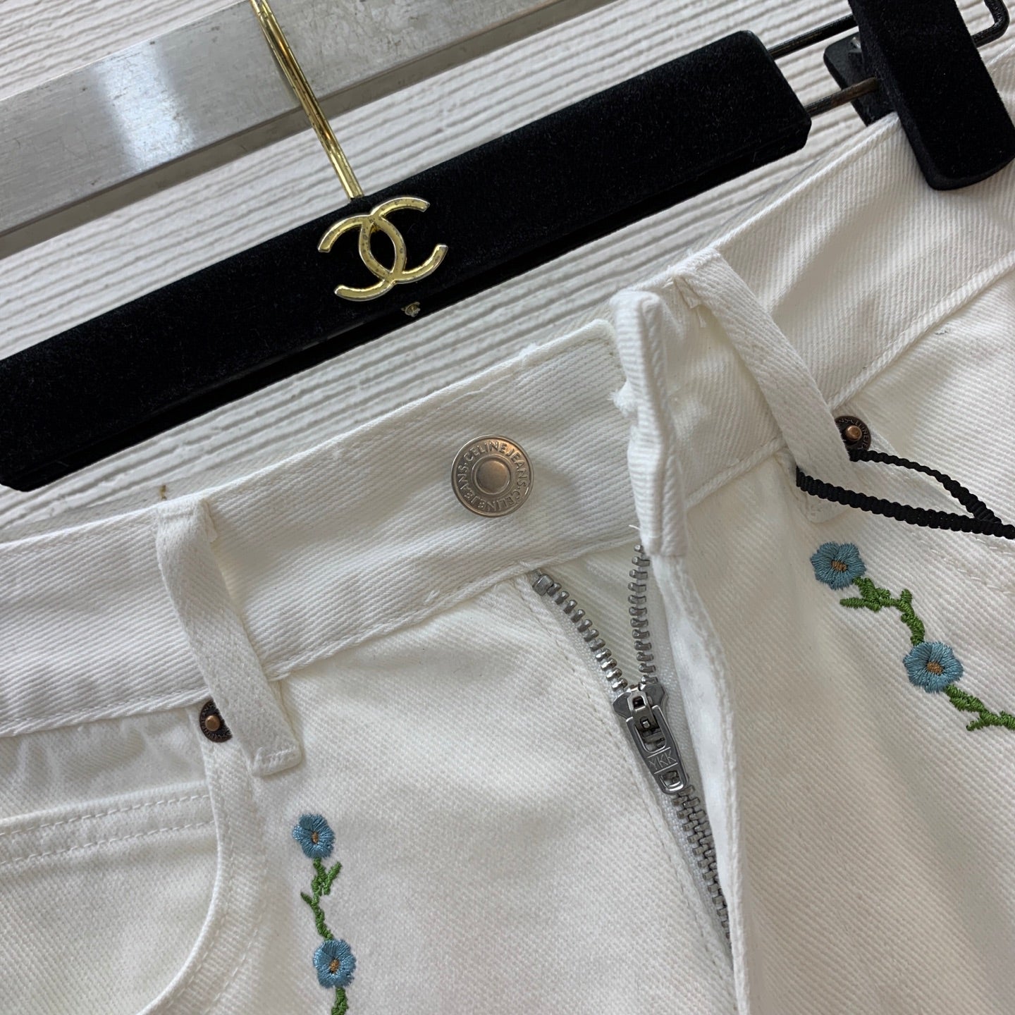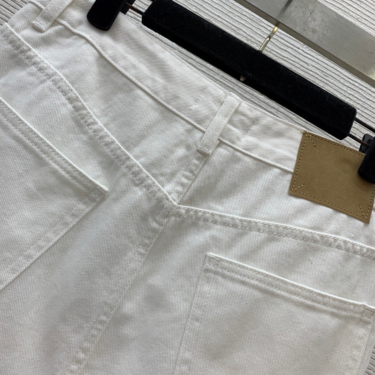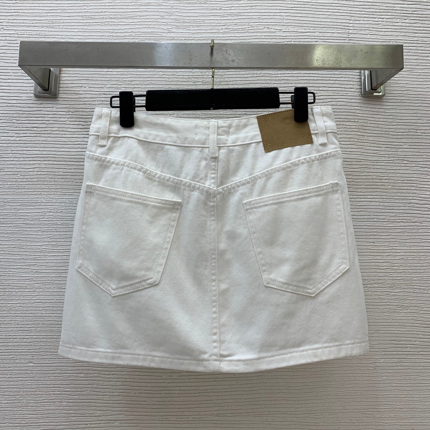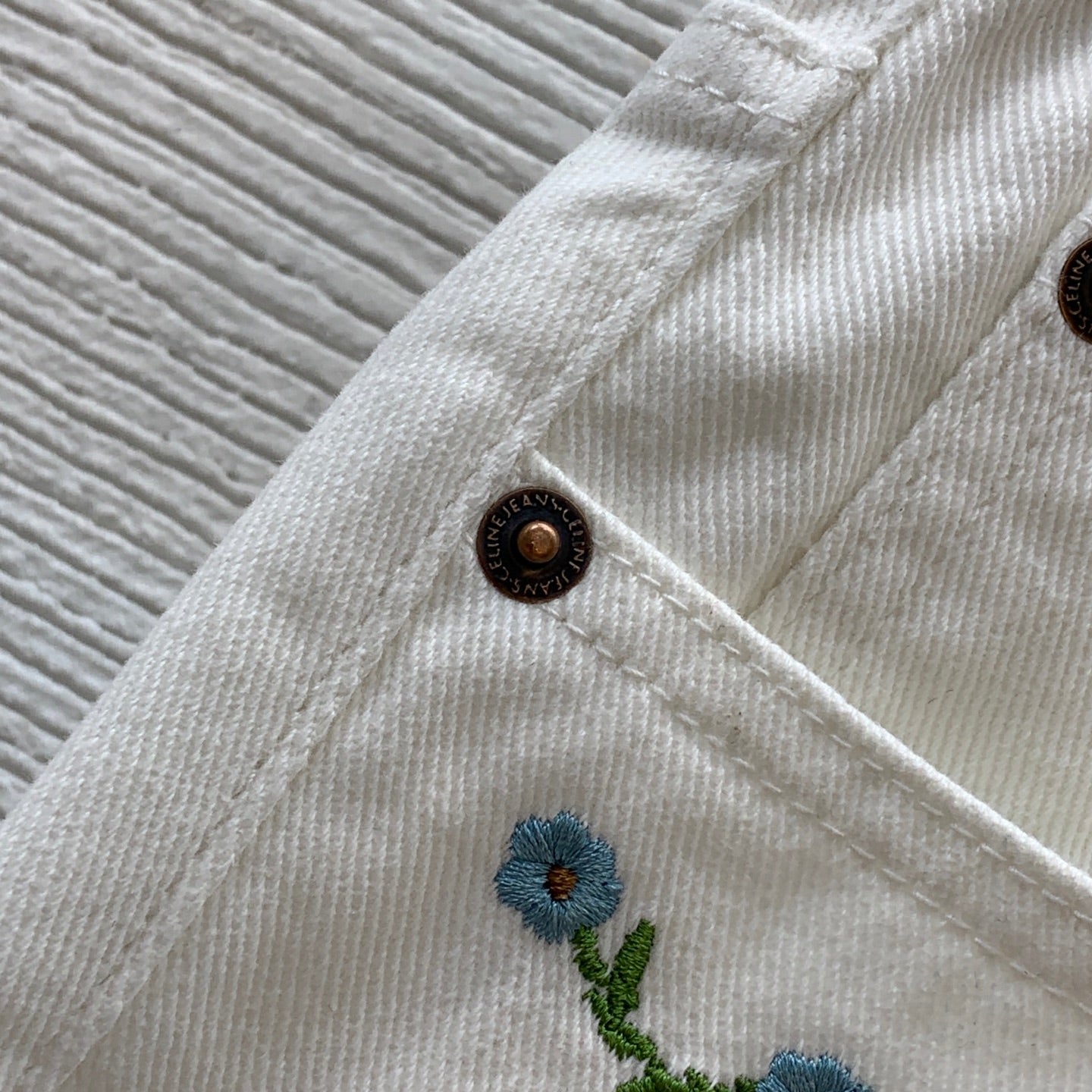 Elevate your wardrobe with Celine's exclusive high-end denim skirt, featuring the signature logo hardware and exquisite embroidered floral accents. This stylish, high-waisted design offers a flattering slim fit, perfect for any occasion. Available in chic off-white, this skirt comes in sizes 26, 27, 28, and 29, with size 27 featuring a waist measurement of 74 cm, a hip measurement of 94 cm, and a skirt length of 37 cm. Make a statement with this versatile piece that combines luxury and comfort effortlessly.