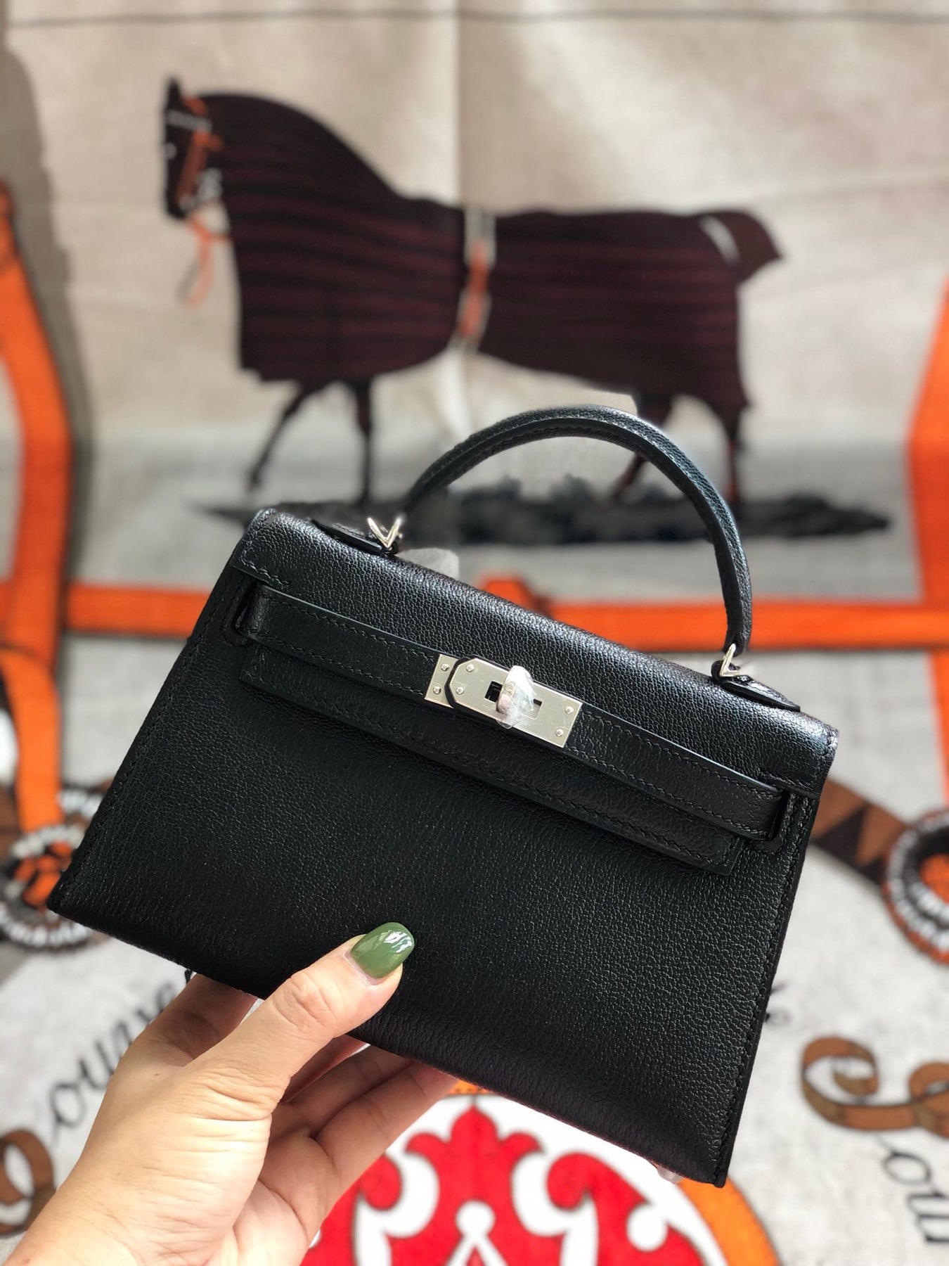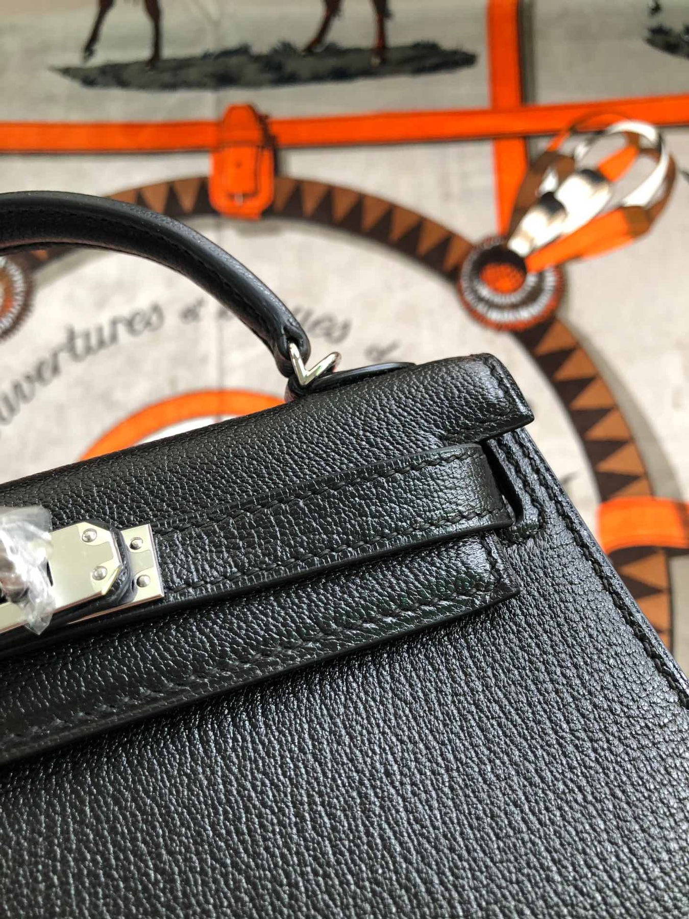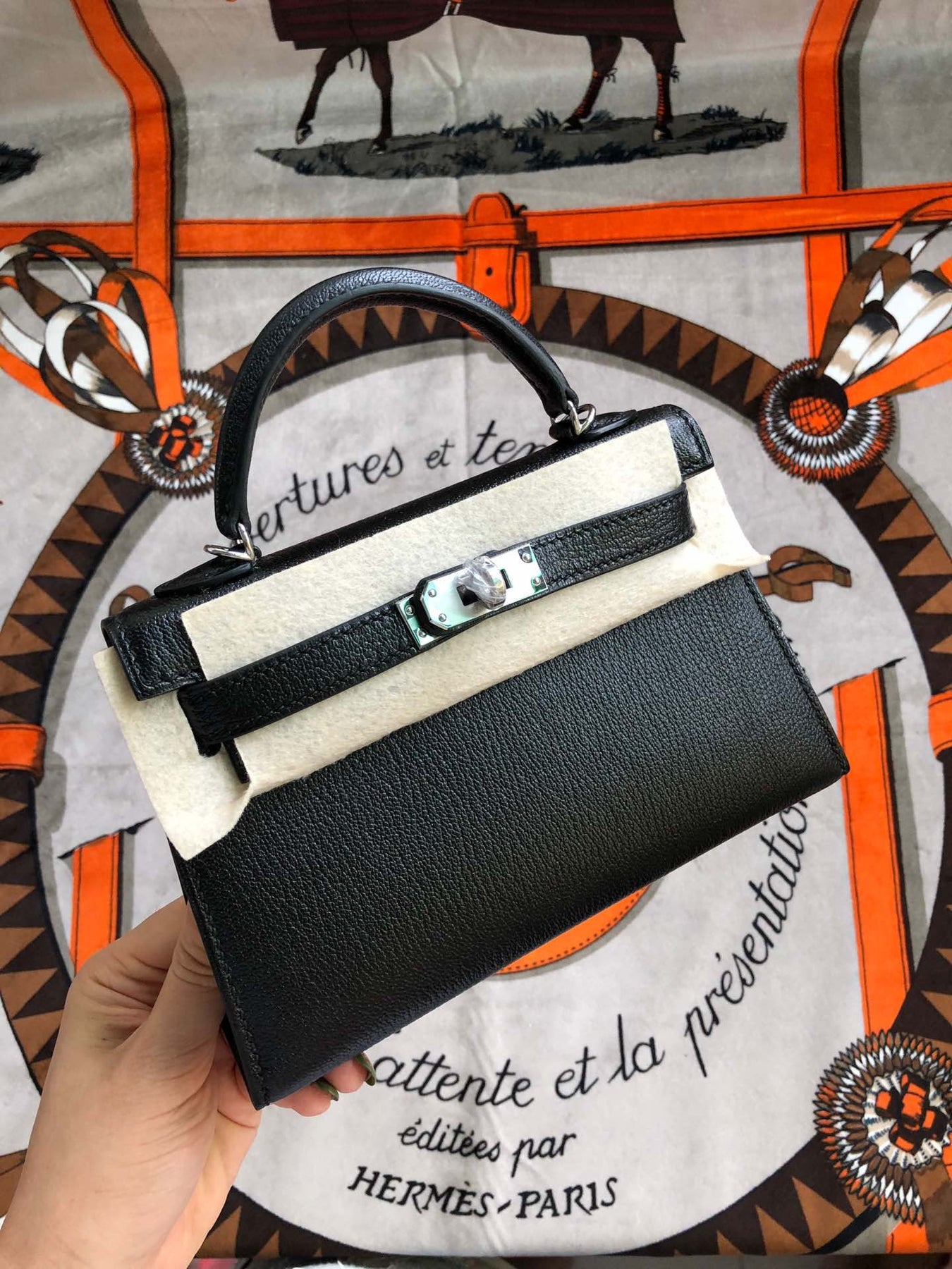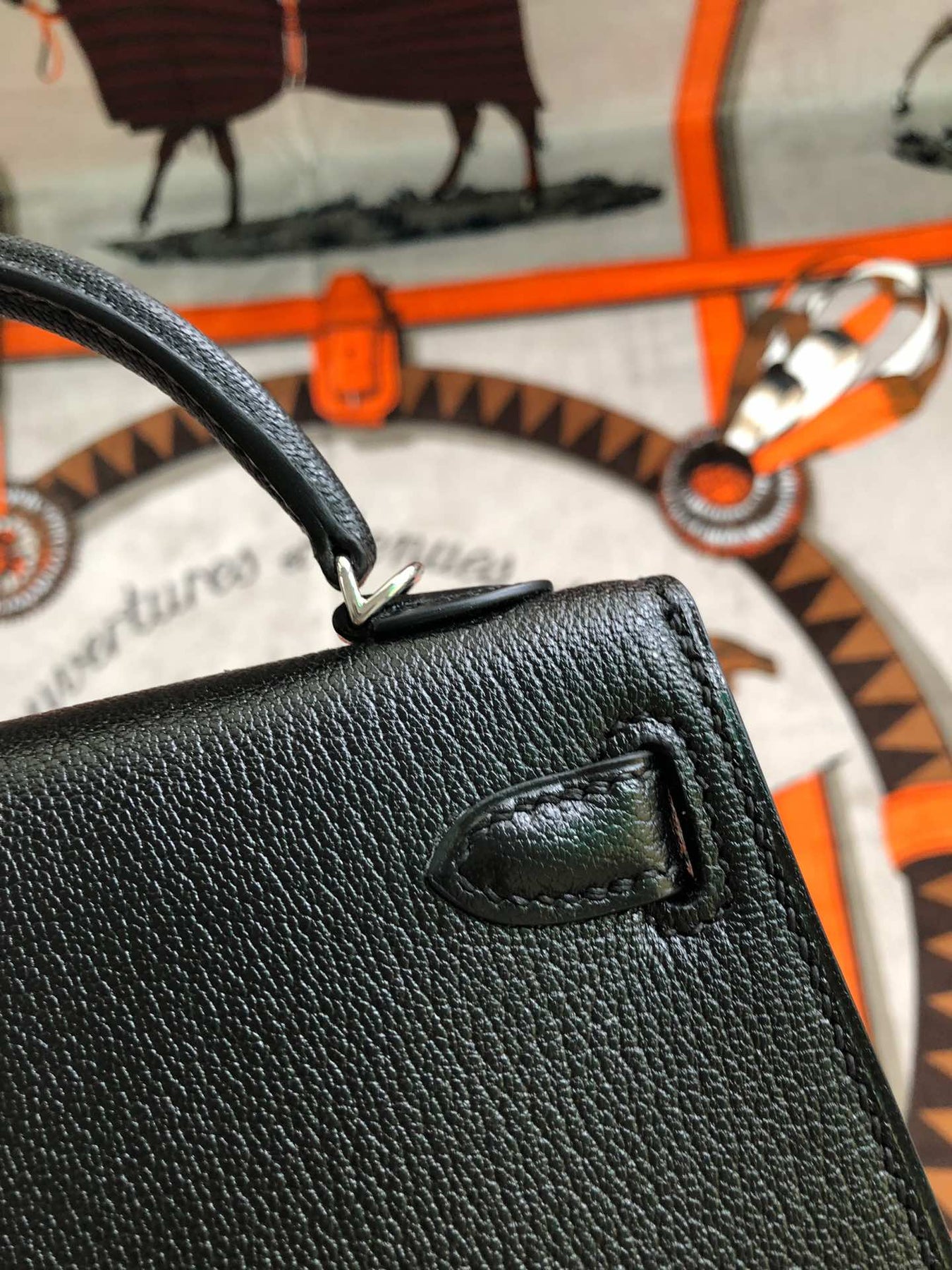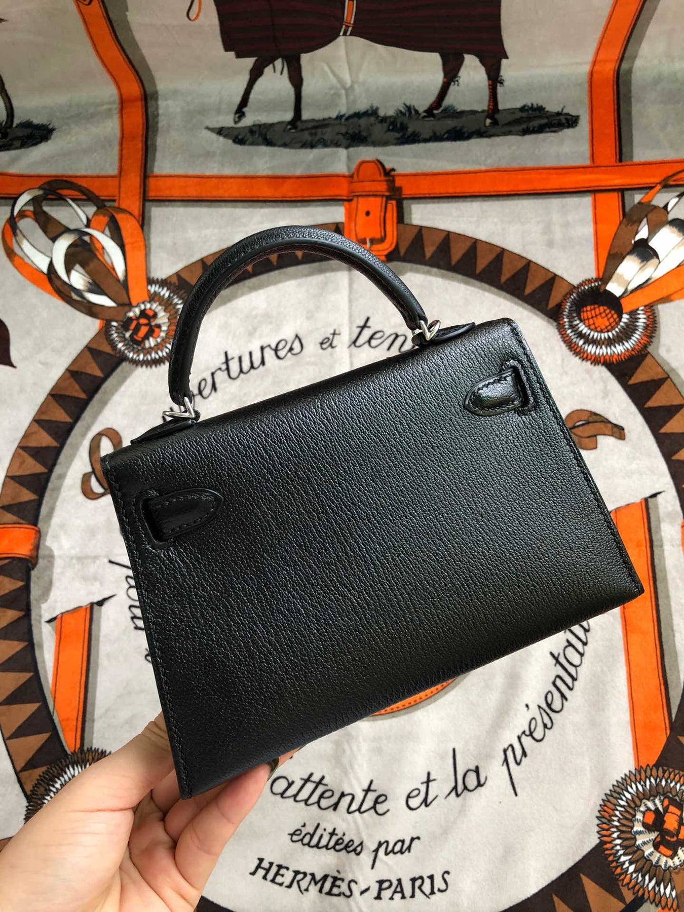 Elevate your style with the Custom Kelly 19cm semi-handmade mini bag. Crafted from luxurious Chevre Mysore goatskin in classic black, this 2nd generation design features a sleek silver buckle and is meticulously hand-sewn with waxed thread. Perfectly sized at 19cm, it’s an ideal accessory for any occasion, combining elegance with practicality. Experience personalized craftsmanship with this stunning piece, made to order just for you.