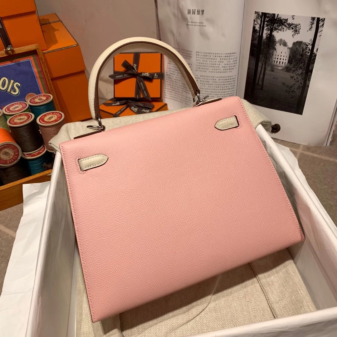 Custom Kelly 25cm Epsom Leather Bag - Cherry Blossom & Milkshake White