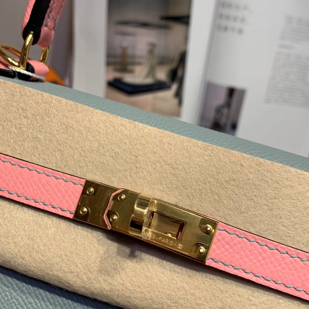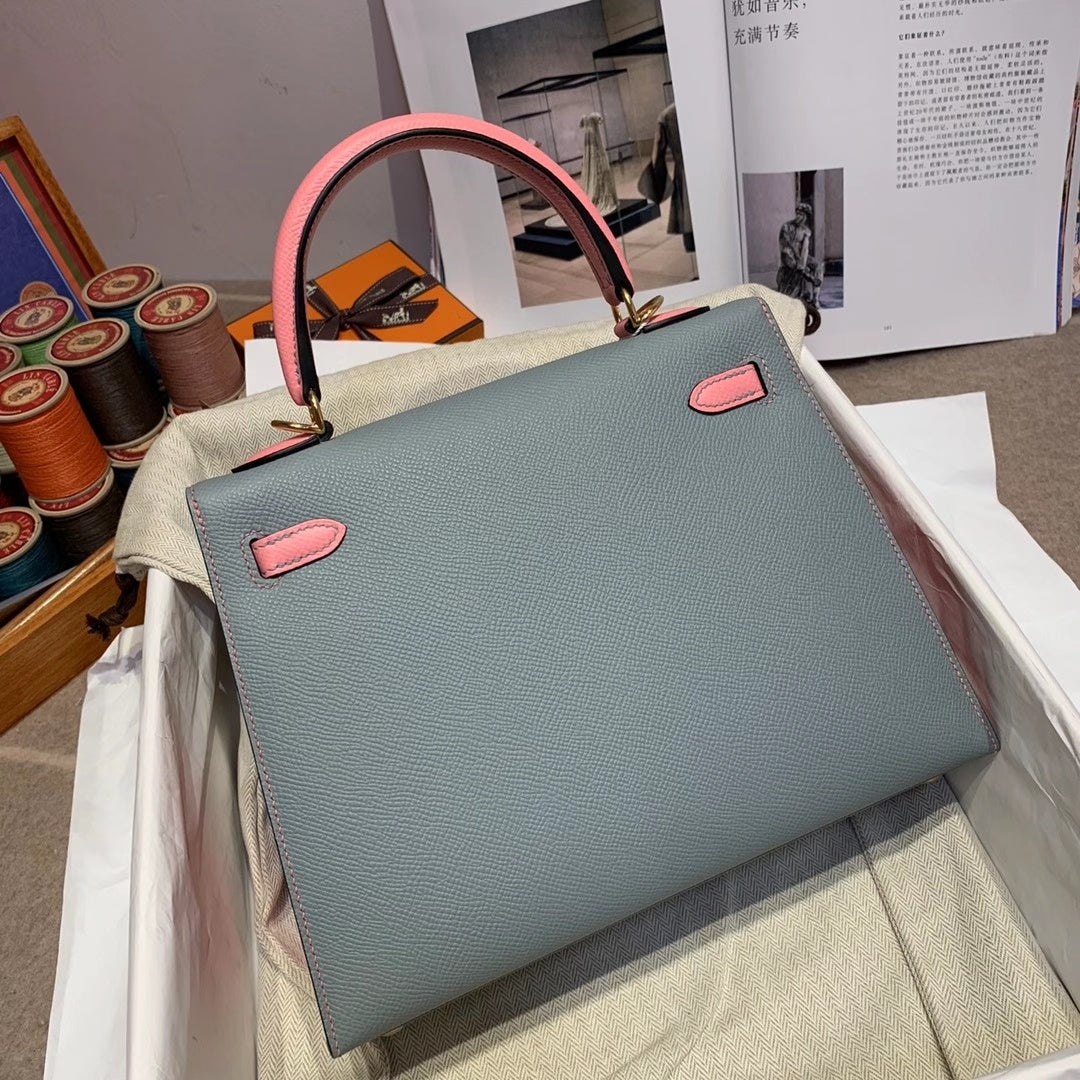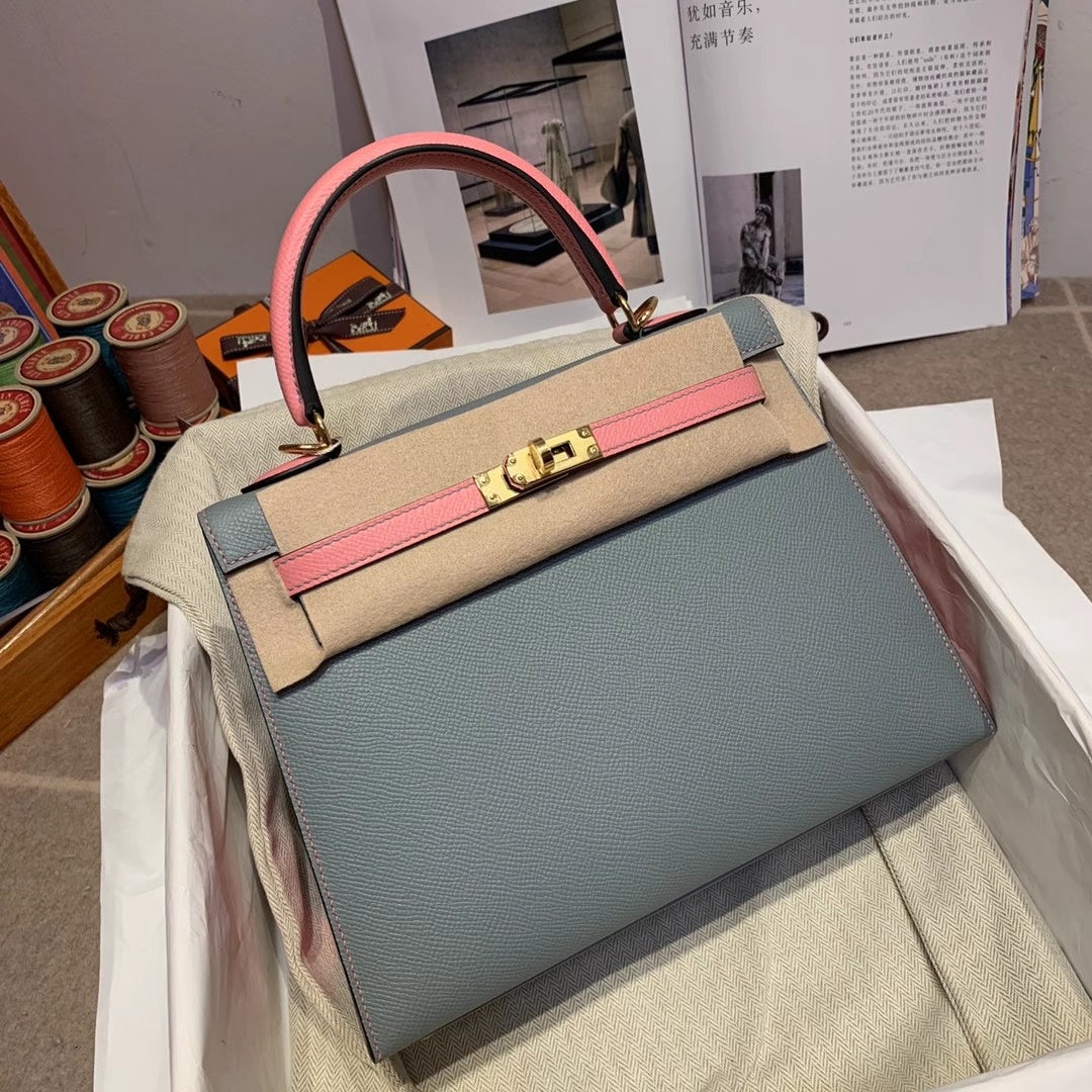 Customized Kelly 25cm Epsom Leather Bag in Glacier Blue and Milkshake Powder