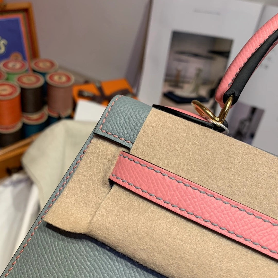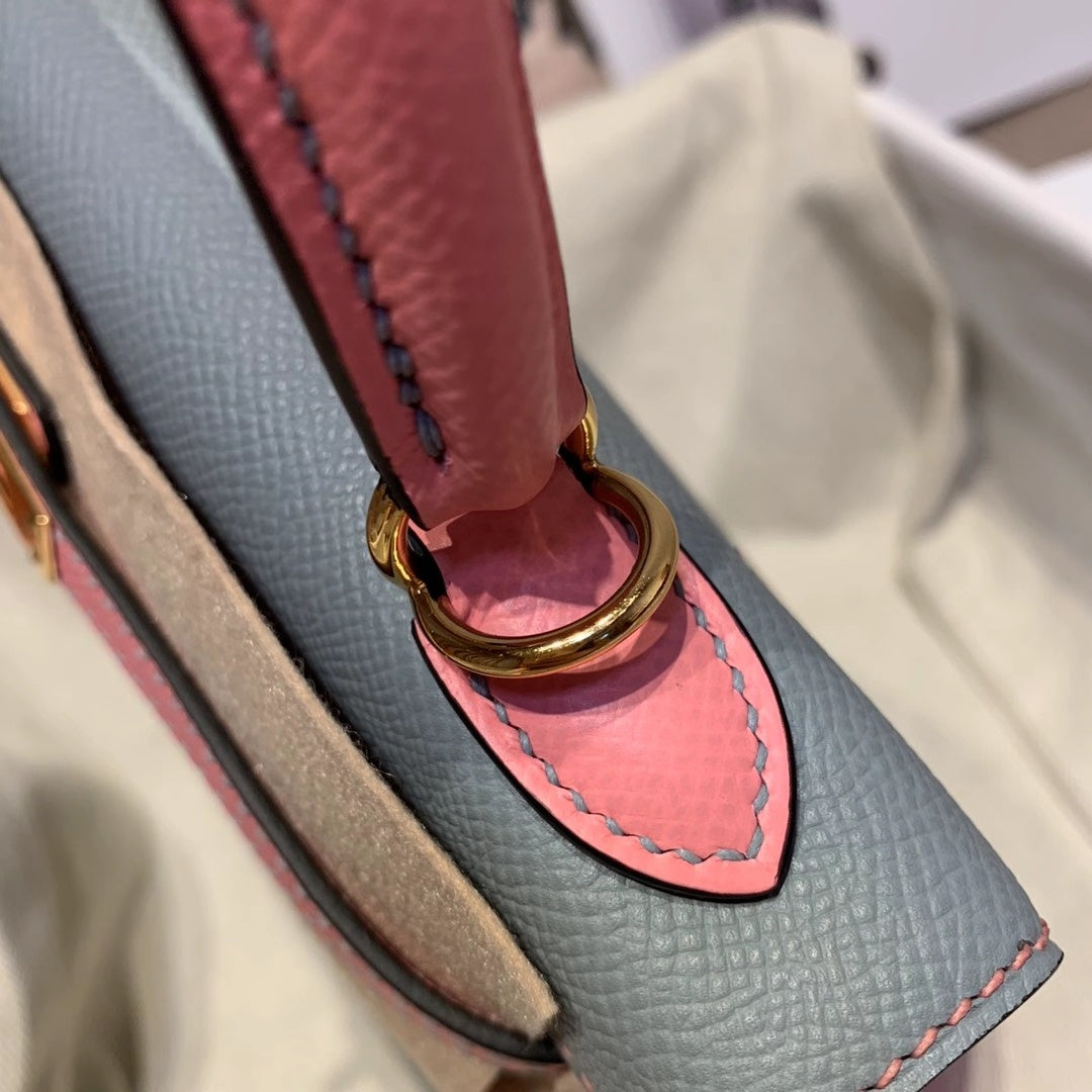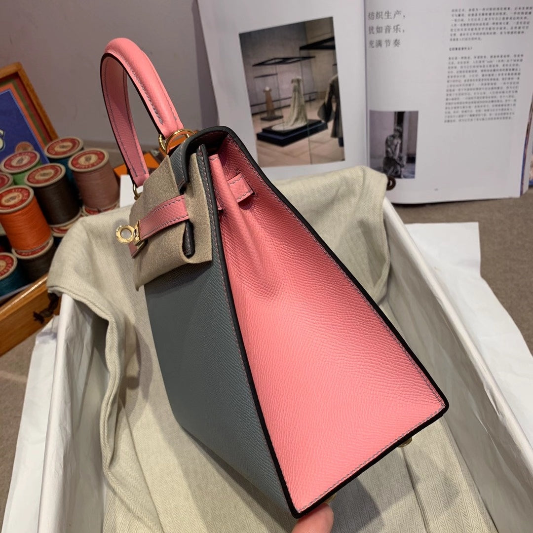 Customized Kelly 25cm Epsom Leather Bag in Glacier Blue and Milkshake Powder