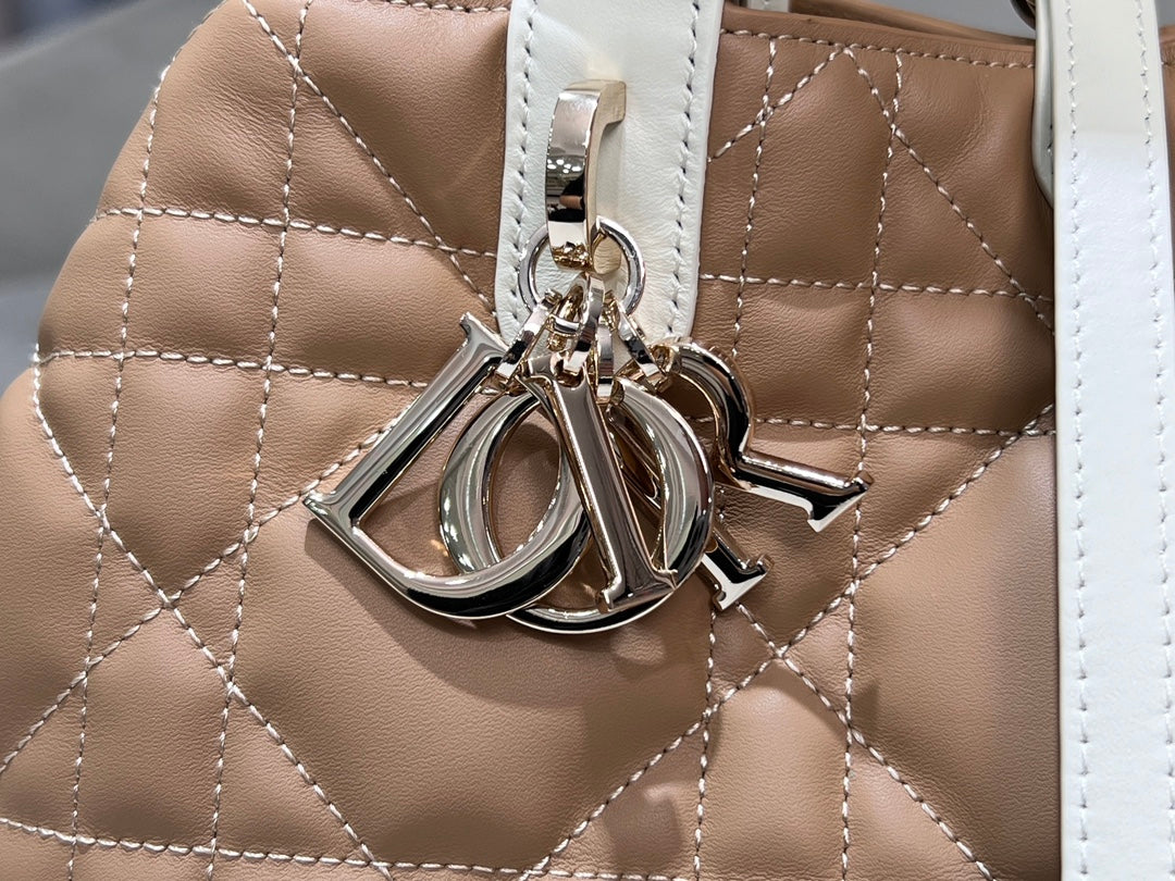 ** Dior Toujours Color Block Medium Handbag – Dark Apricot & White Leather **