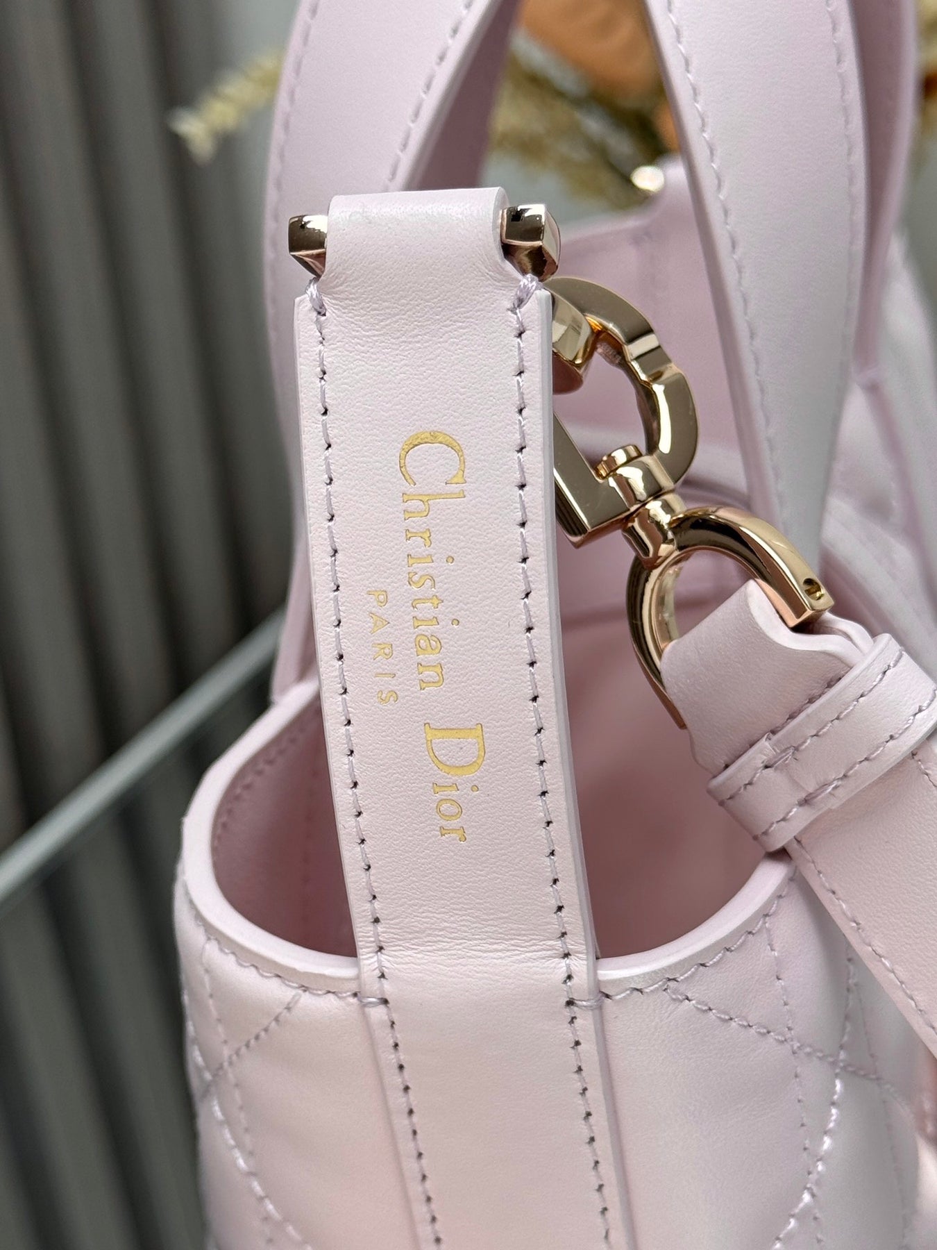 Introducing the Dior Toujours Vertical Handbag from the 2025 early spring ready-to-wear collection. This elegant handbag combines fashion and functionality, crafted from luxurious pink cow leather adorned with oversized cannage topstitching.