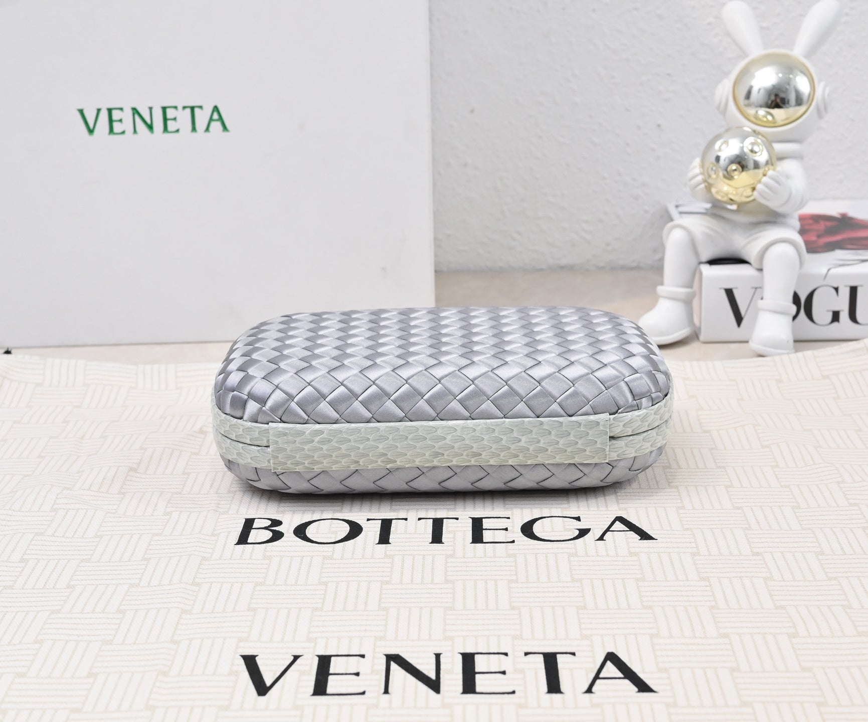 Discover timeless elegance with the BV Knot Woven Evening Bag, a sophisticated accessory that complements any formal attire. Crafted with intricate silk weaving and adorned with a stylish snake skin trim, this handbag features a unique knot buckle that adds a touch of charm.