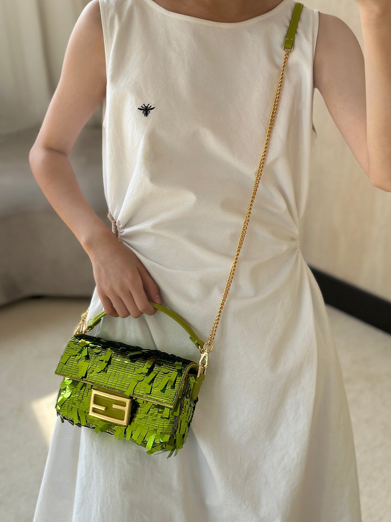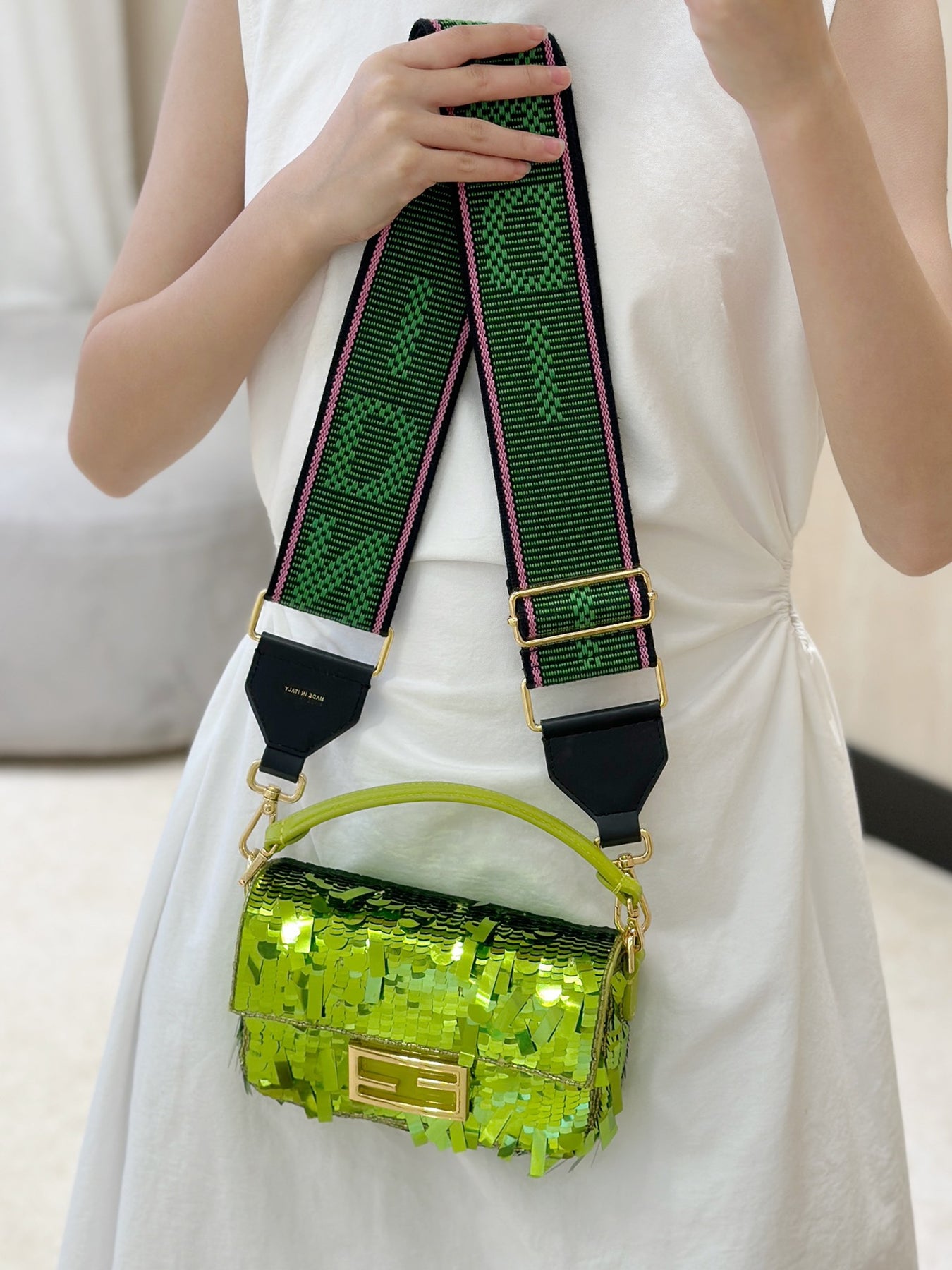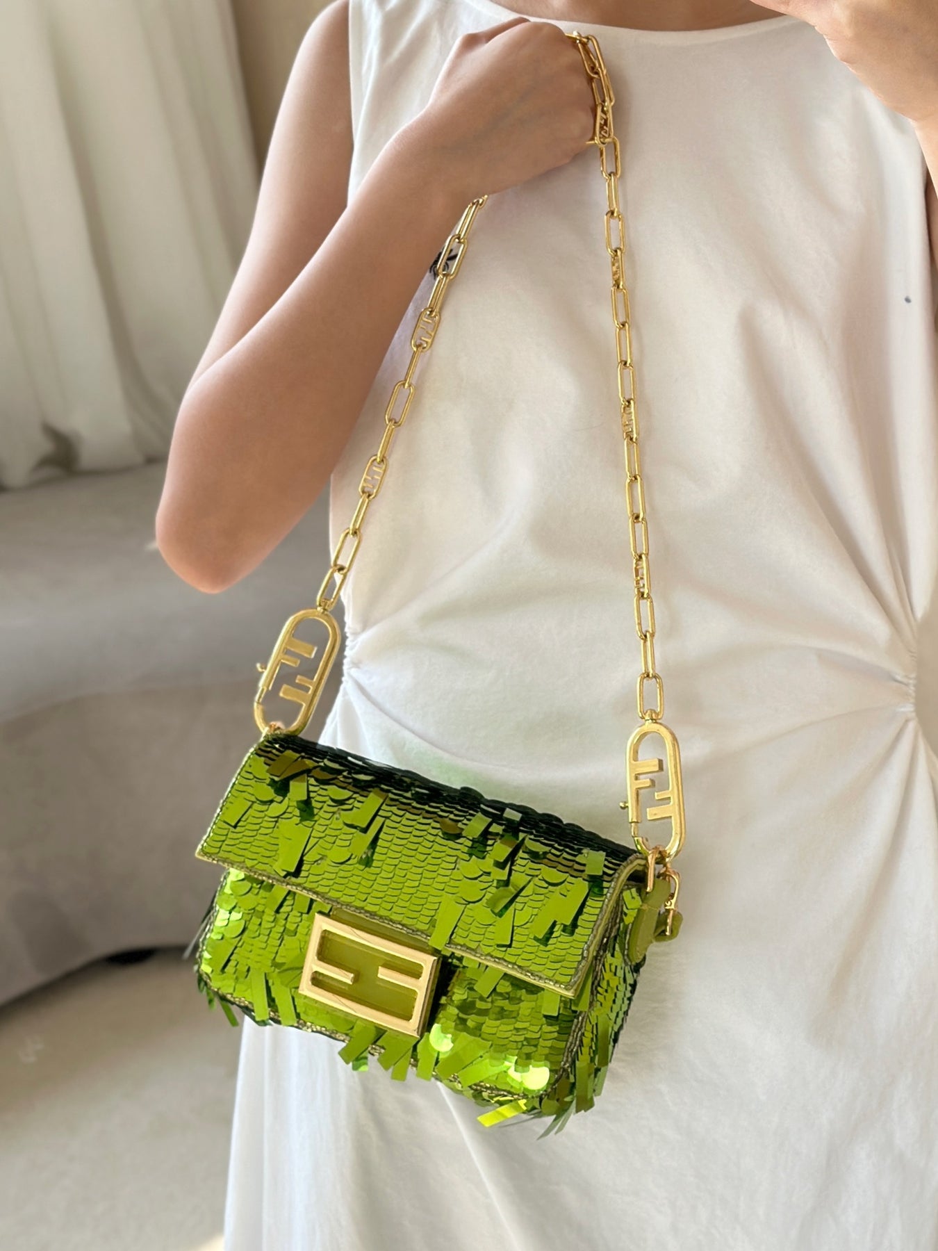 Elevate your style with our stunning green sequined baguette bag. This eye-catching accessory features a luxurious design adorned with shimmering sequins, making it perfect for both casual outings and special occasions. Its compact size and elegant shape make it a versatile addition to your wardrobe. Stand out with this beautiful bag that blends fashion and sophistication effortlessly.