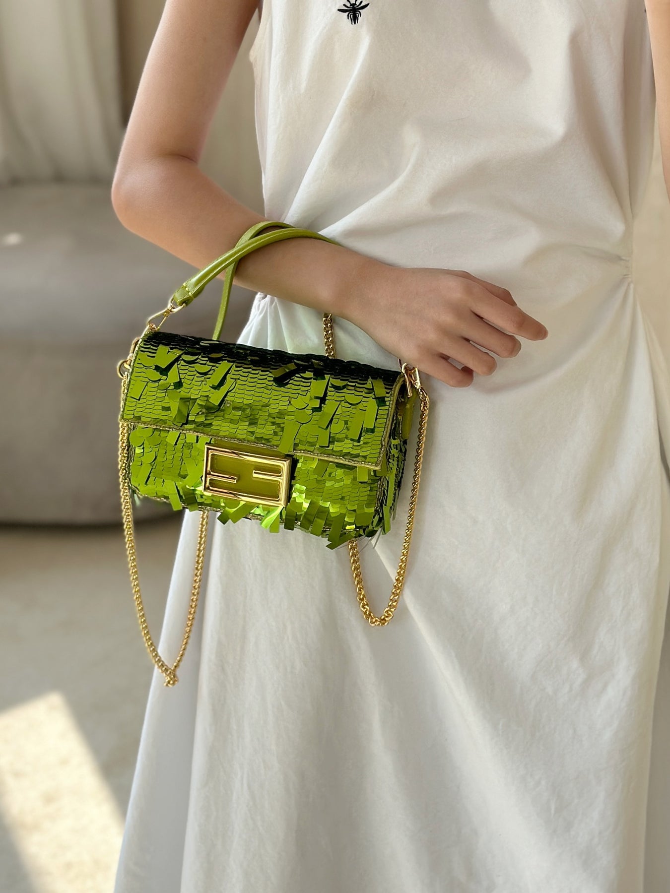Elegant Green Sequined Baguette Bag