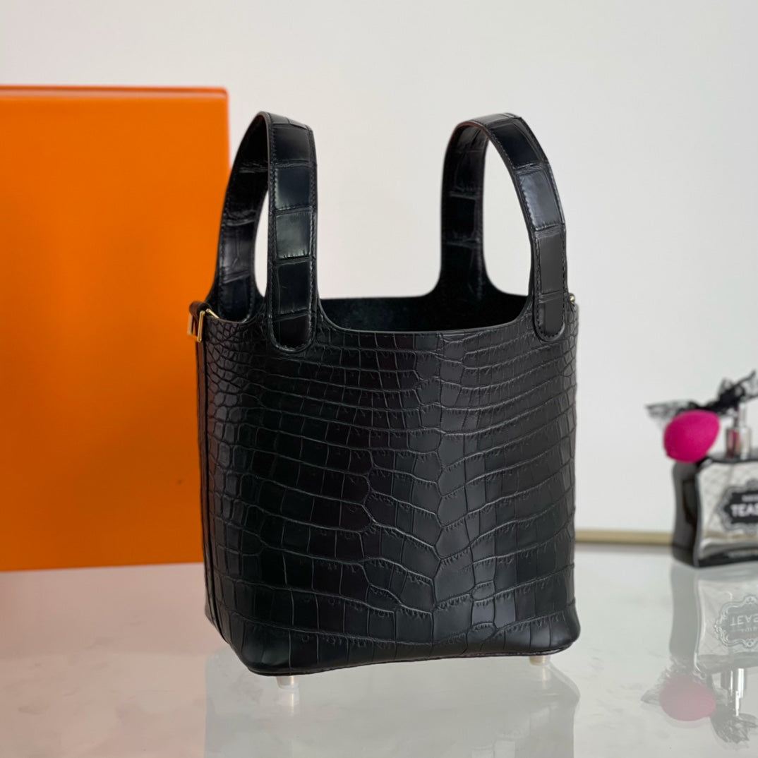 Elegant Matte Nile Crocodile Vegetable Basket - 18x13x18 cm