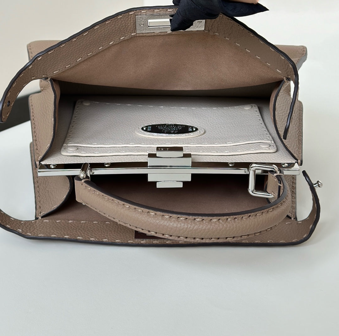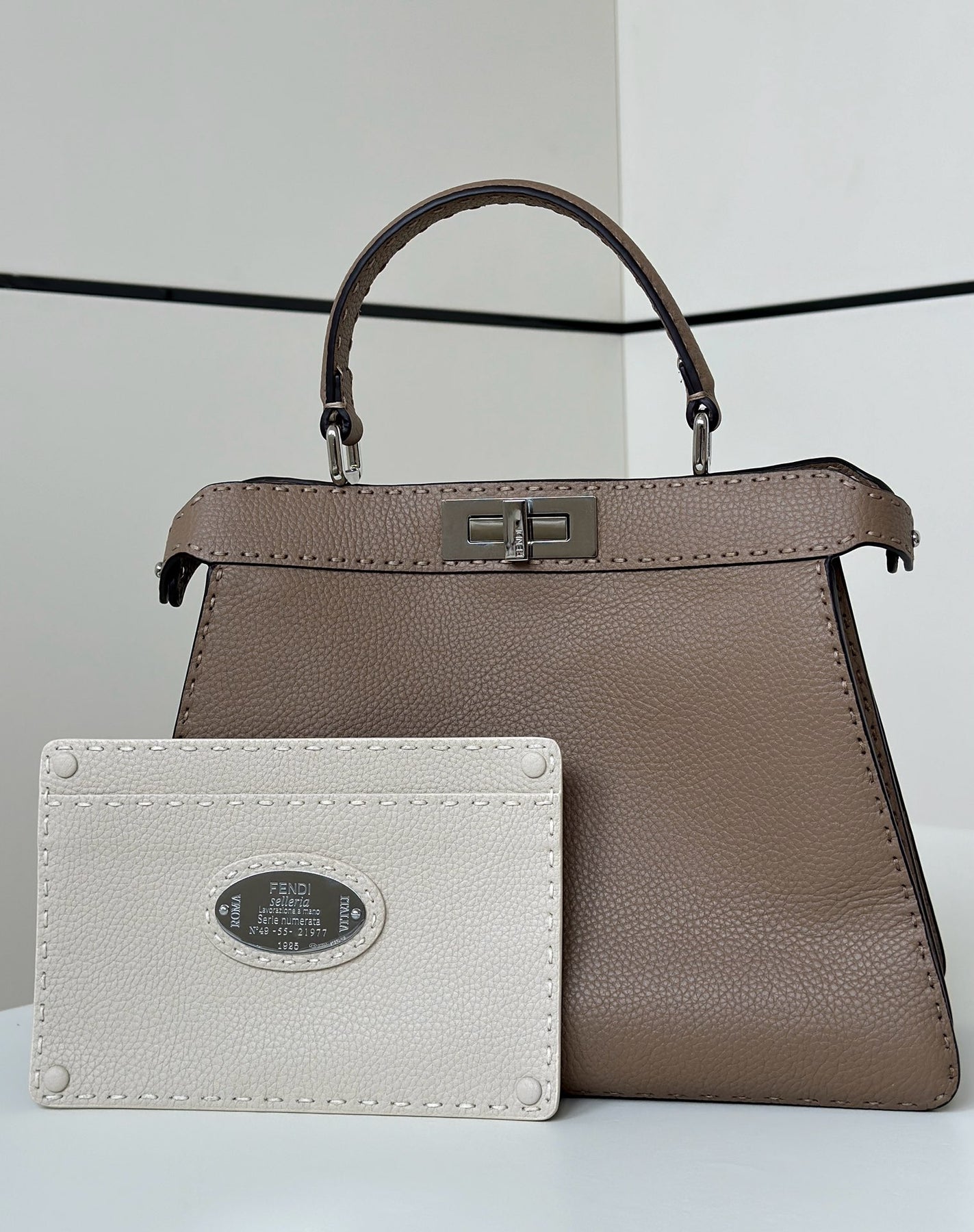 Discover the exclusive PEAKABOO medium handbag, crafted from premium custom-made calfskin that boasts an ultra-fine texture. This handbag features exquisite handmade outer stitching and a simple yet elegant organ design, embodying a generous personality that complements any outfit. With its classic silhouette and remarkable craftsmanship, this handbag is an essential accessory for the discerning individual.