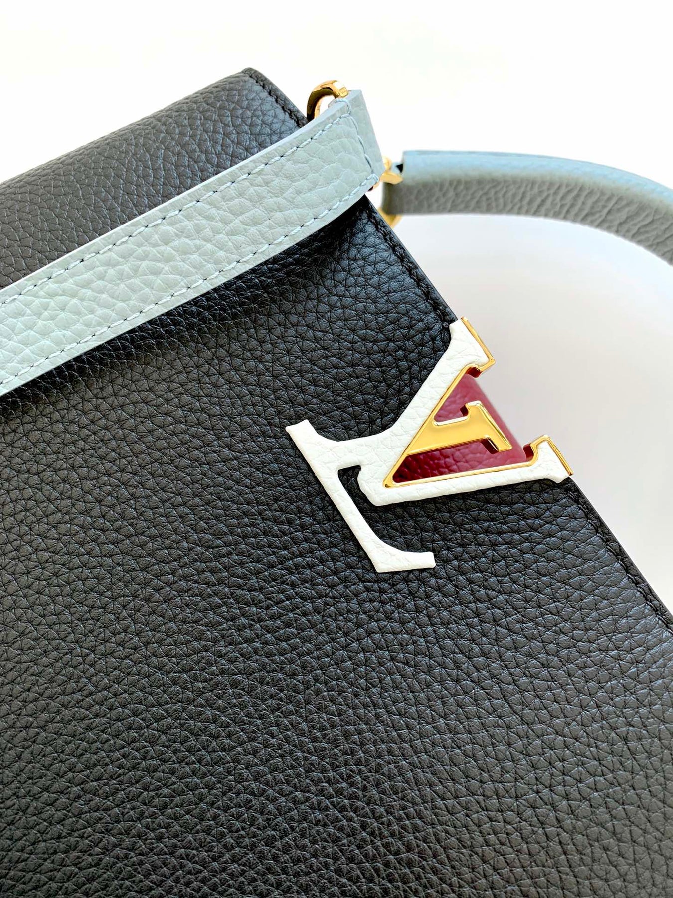 Elevate your style with our exclusive LV handbag, featuring a sleek black design complemented by vibrant purple accents. Crafted for sophistication and practicality, this handbag measures 27x18x9 cm, making it the perfect accessory for any occasion. Make a statement and secure yours today!