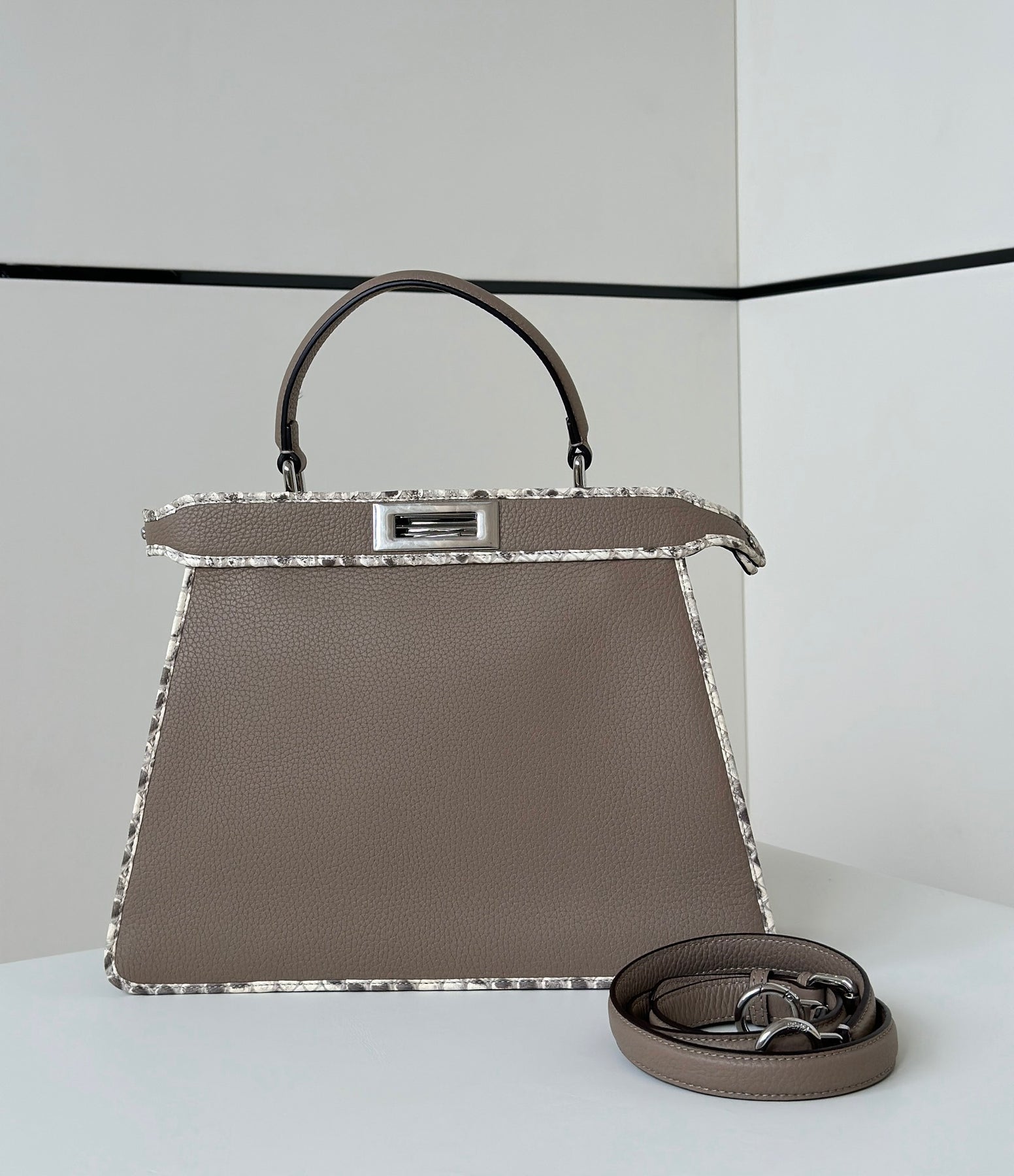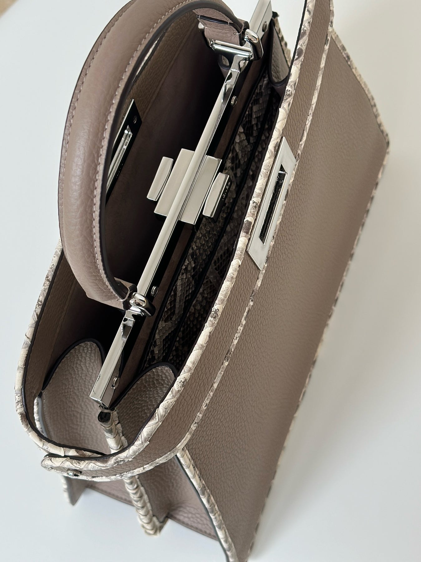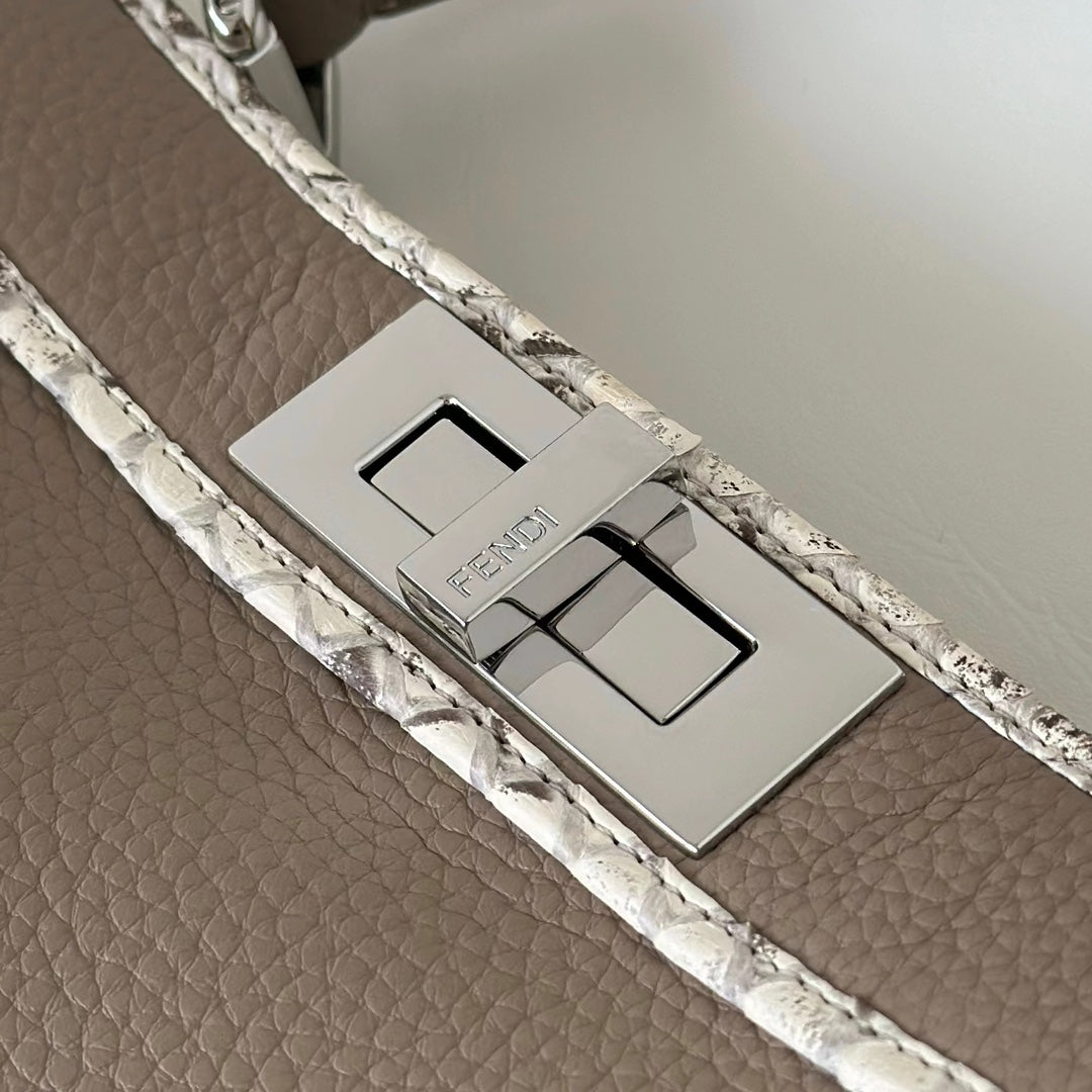 Exclusive PEAKABOO Medium Handbag in Dove Gray - Custom Calfskin & Snakeskin