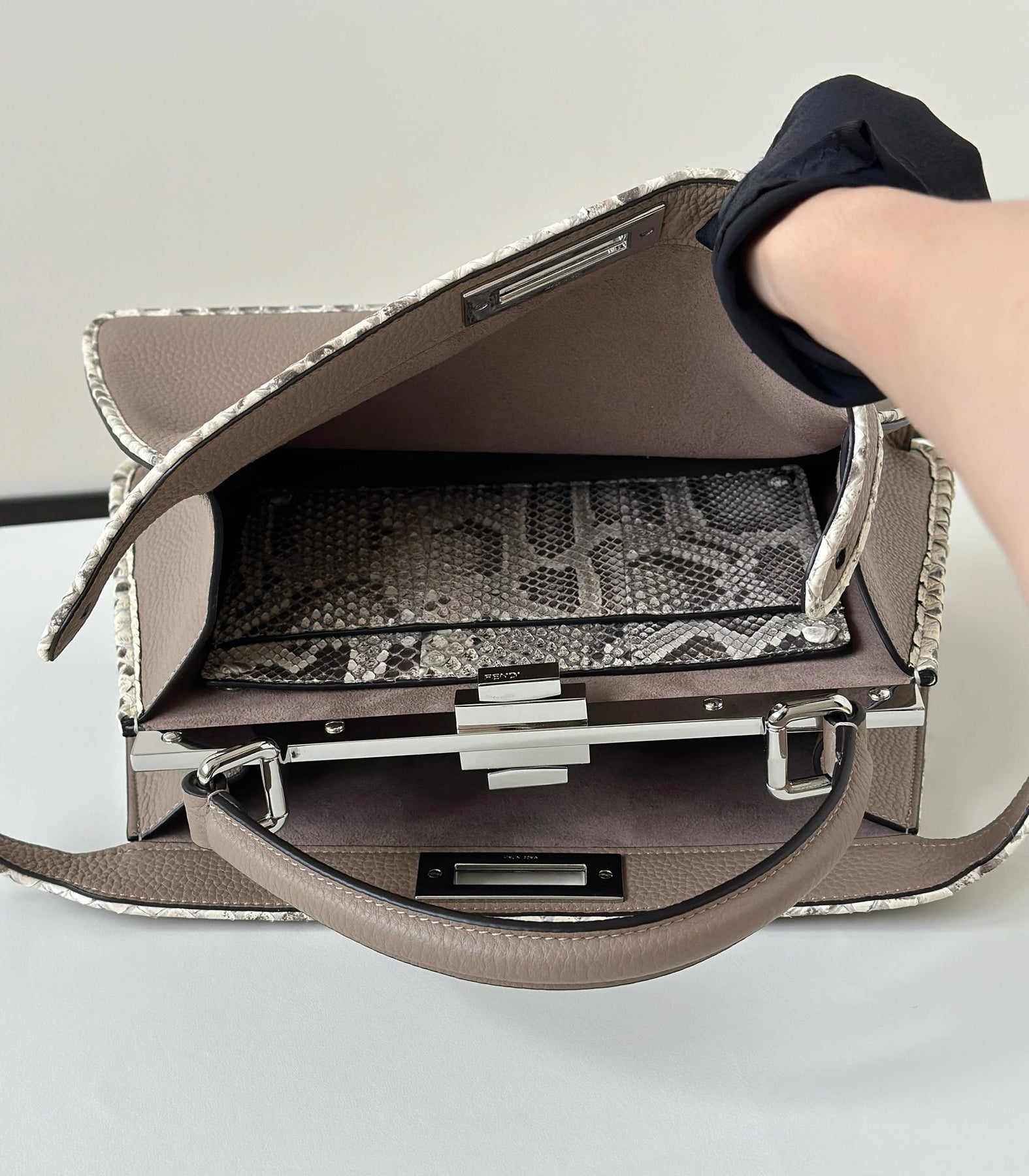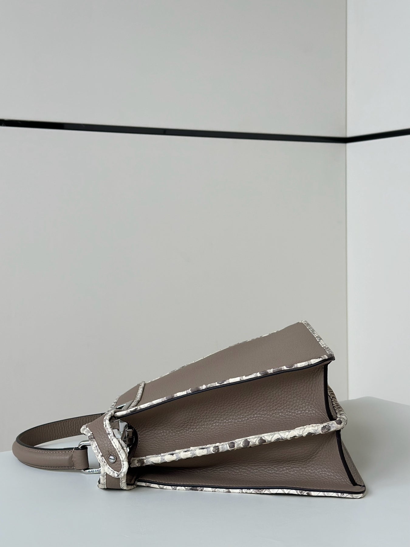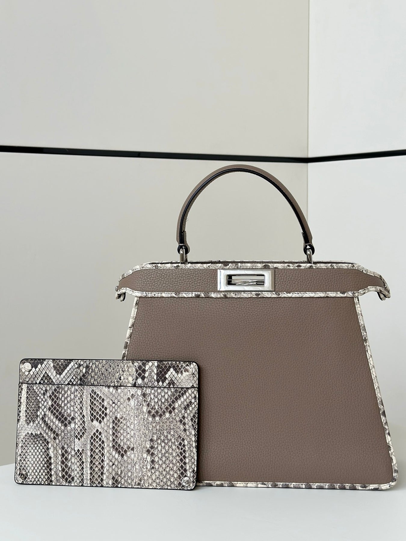 Exclusive PEAKABOO Medium Handbag in Dove Gray - Custom Calfskin & Snakeskin