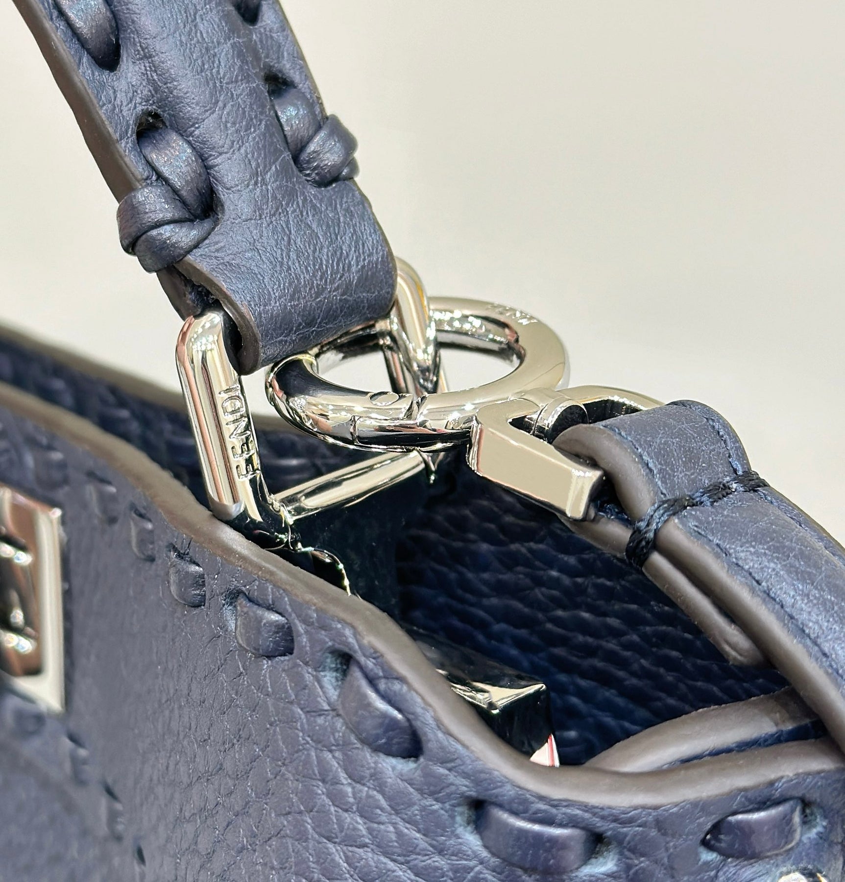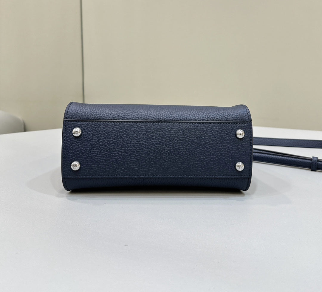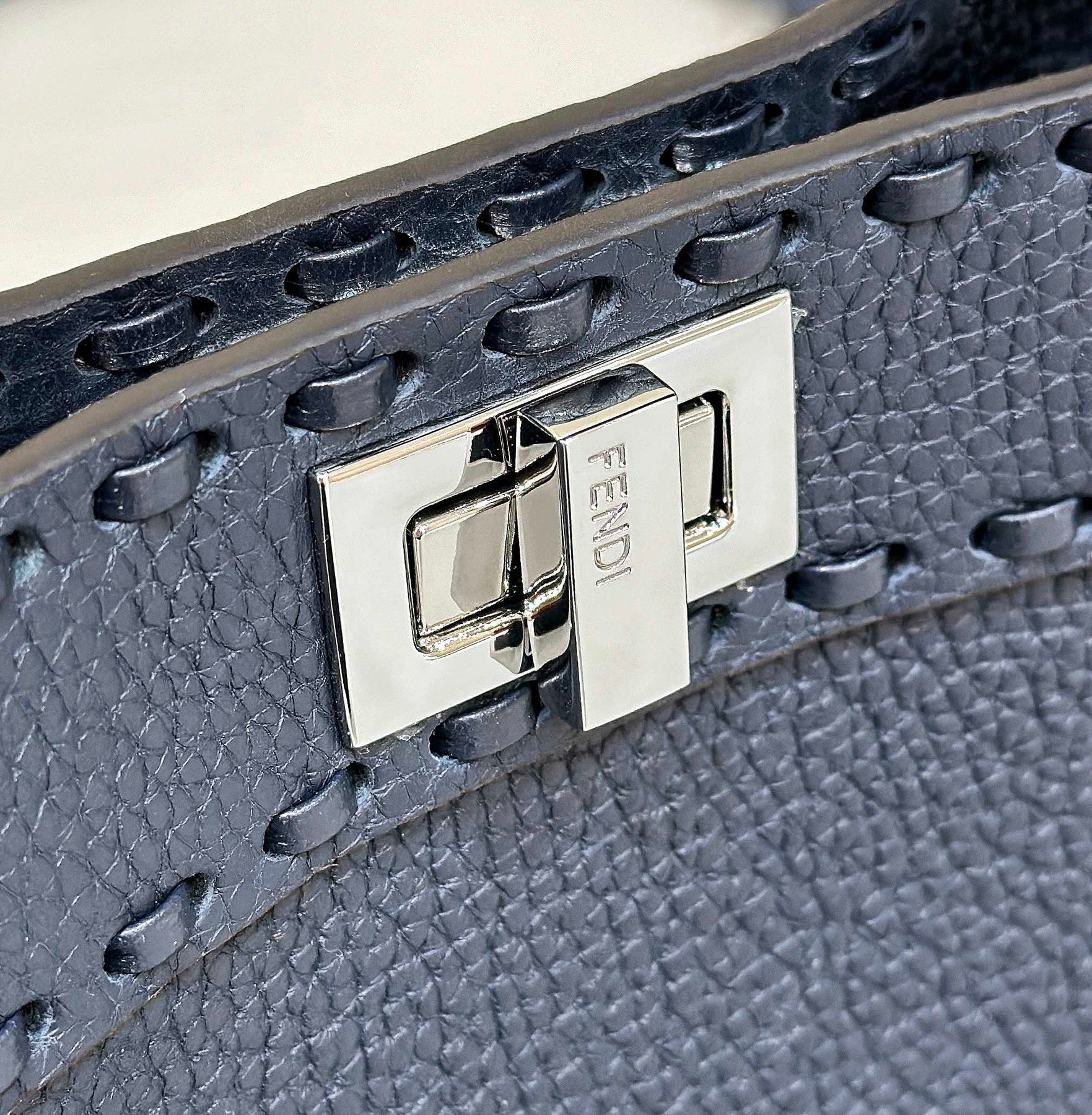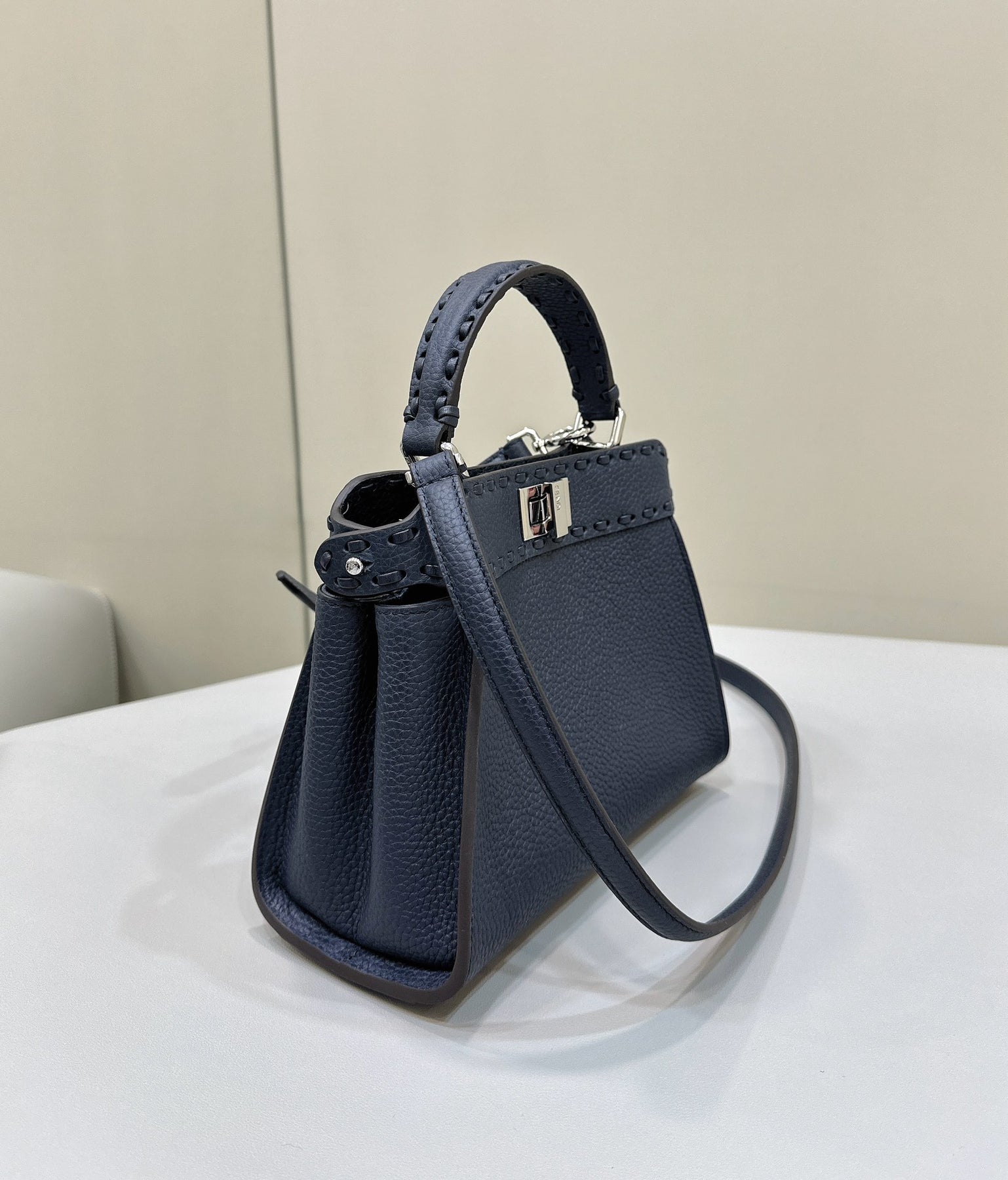 Experience elegance with our Exquisite Handmade Peekaboo Bag in Night Mist Blue. Crafted with meticulous attention to detail, this bag features distinctive outer seams that accentuate its sophisticated contrasting colors. Made from premium cowhide, it provides a luxurious touch that every FD Girl desires. With a spacious capacity, it's the perfect companion for your daily travels. Dimensions: 23.5 x 12 x 20 cm. Elevate your style with this timeless accessory.