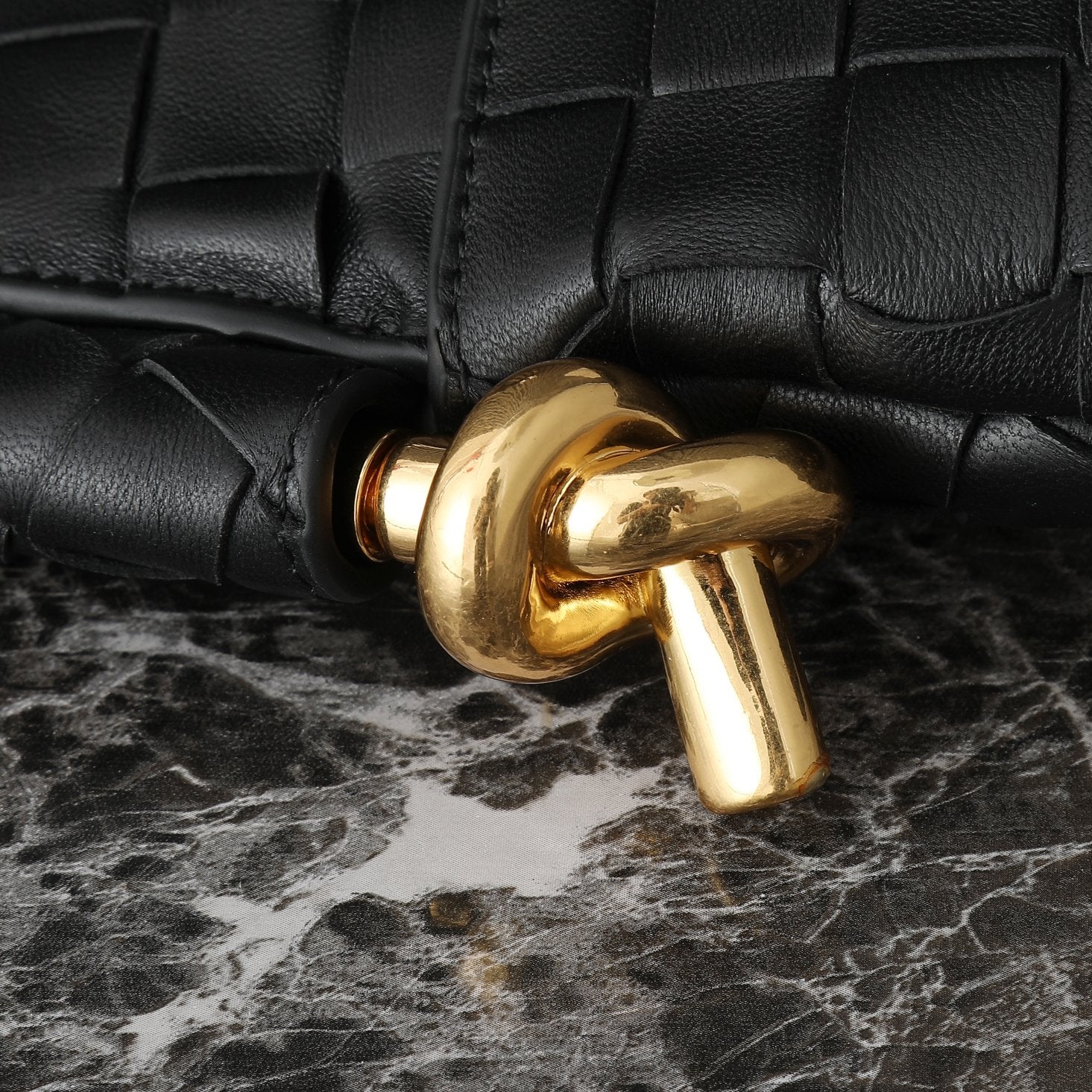 Designed with attention to detail, the bag's tubular leather shoulder strap is adorned with classic Muse brass knot elements, reminiscent of fine jewelry craftsmanship. With a size of 28 x 18 x 5 cm, it offers the perfect balance of style and practicality.