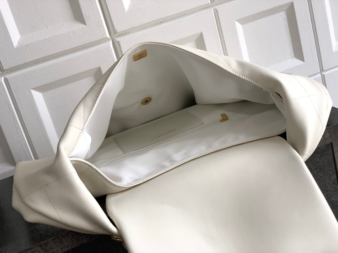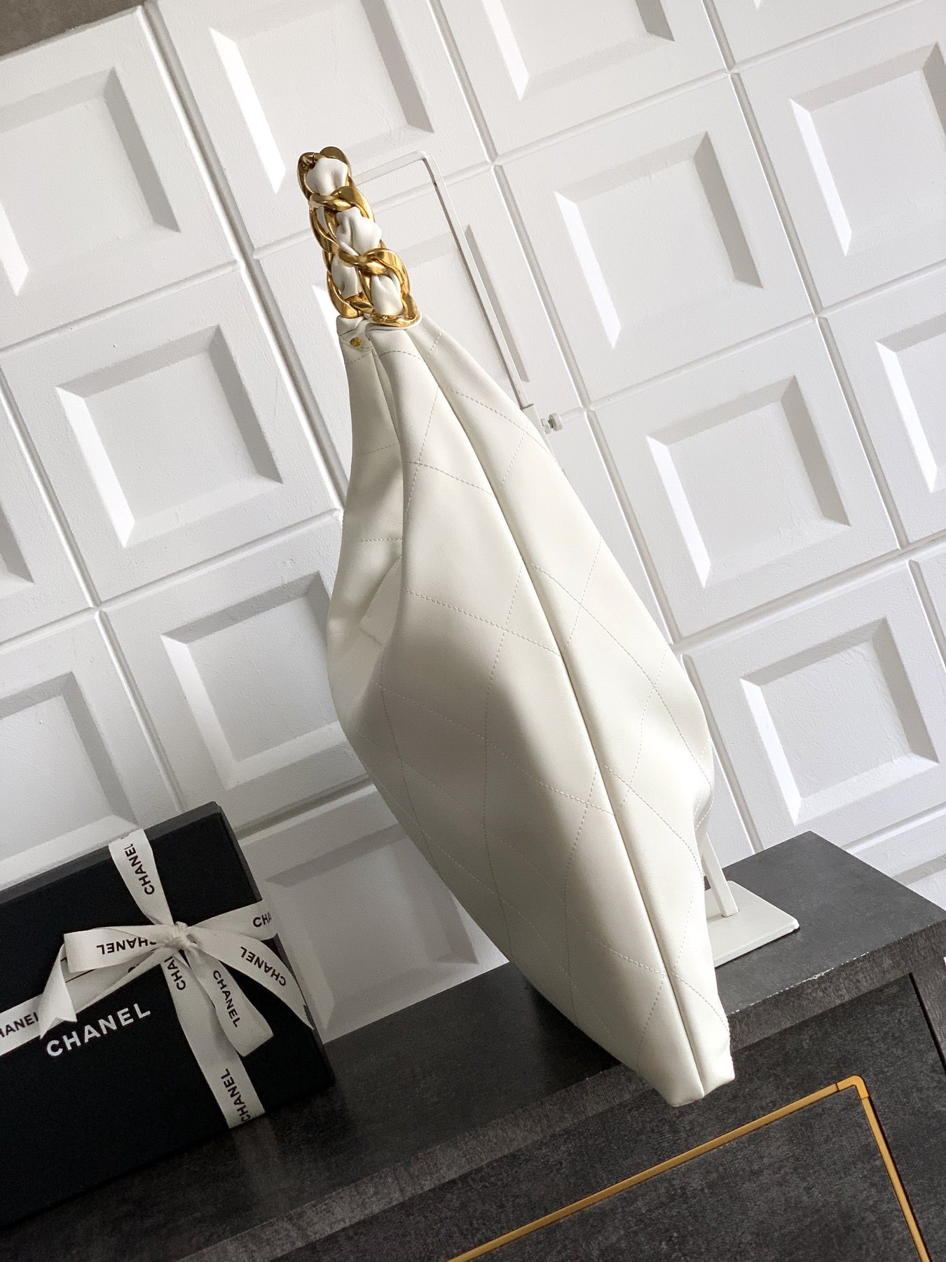 Extra Large White Hobo Bag with Gold Chain – Unisex Fashion Statement