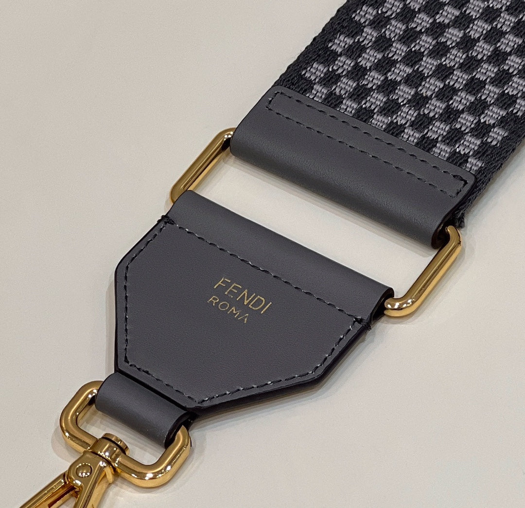 Elevate your style with the FEND iconic letter logo shoulder strap, featuring a chic gray plaid design. This versatile accessory is perfect for personalizing your favorite bags and comes with an adjustable length of 120cm for a comfortable fit. Transform your look effortlessly with this stylish addition. Style number: 910 gray plaid.