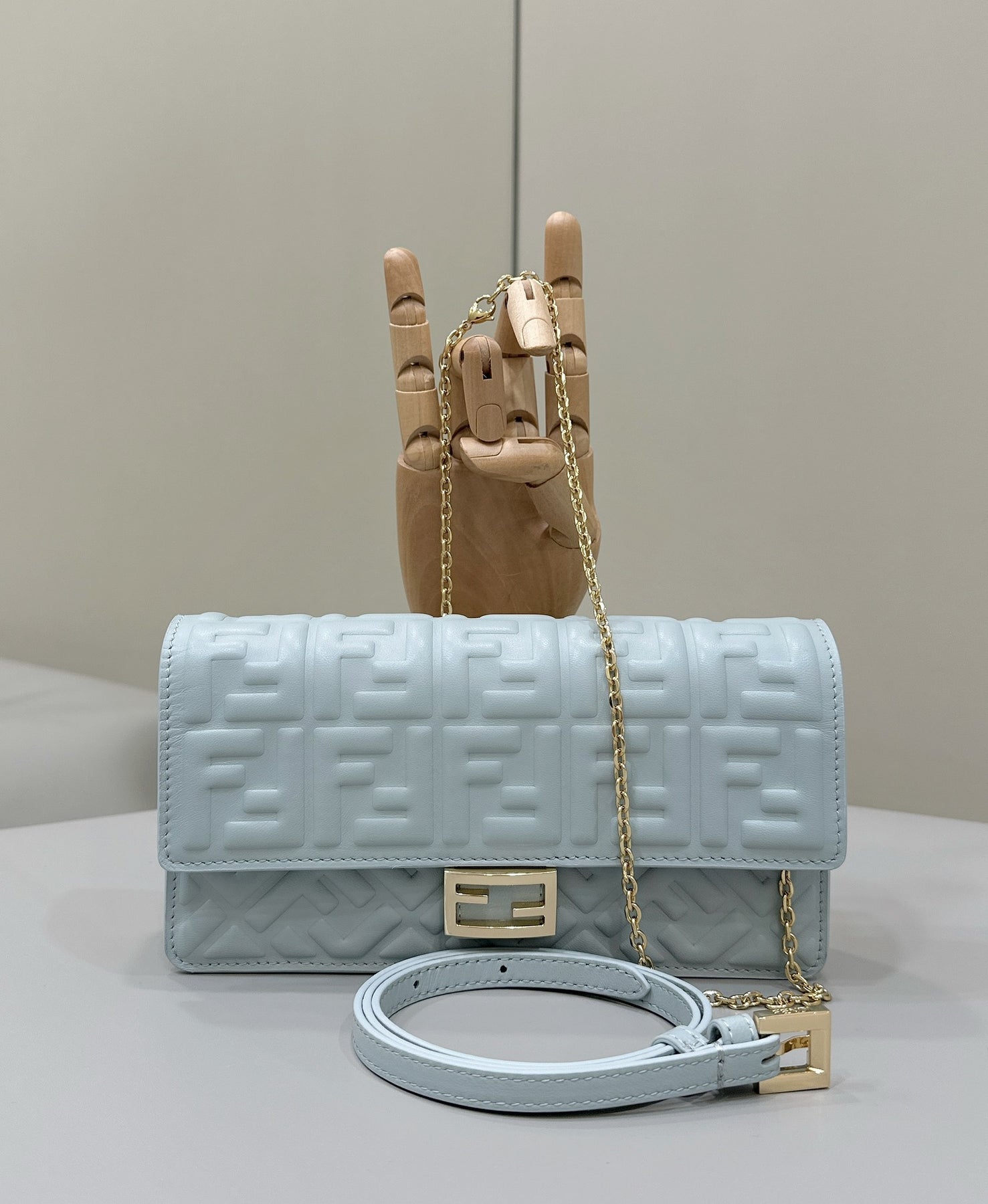 FENDI Baguette Chain Wallet - Light Blue Sheepskin Leather
