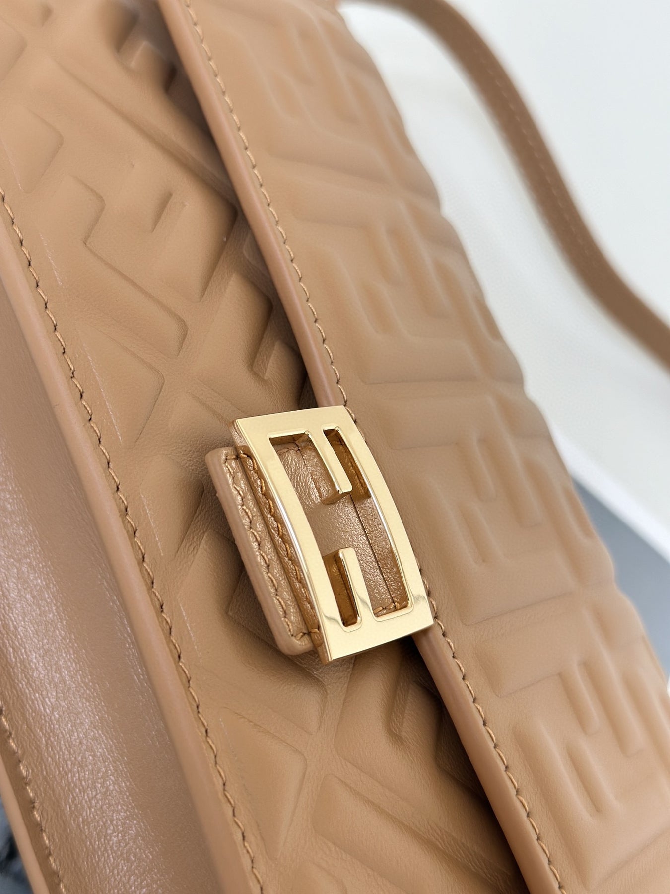 Introducing the FENDI Baguette Chain Wallet, crafted from luxuriously soft sheepskin leather with a unique concave and convex double "F" logo design. This compact and elegant wallet features an adjustable leather shoulder strap and a stylish chain, offering multiple carrying options to suit any occasion. Its versatile design makes it perfect for both day and night wear, effortlessly adapting to various styles. Measuring 21cm x 5cm x 11.5cm, this wallet combines functionality with refined aesthetics. Elevate your accessory collection with this exquisite piece. Style No. 8638A.