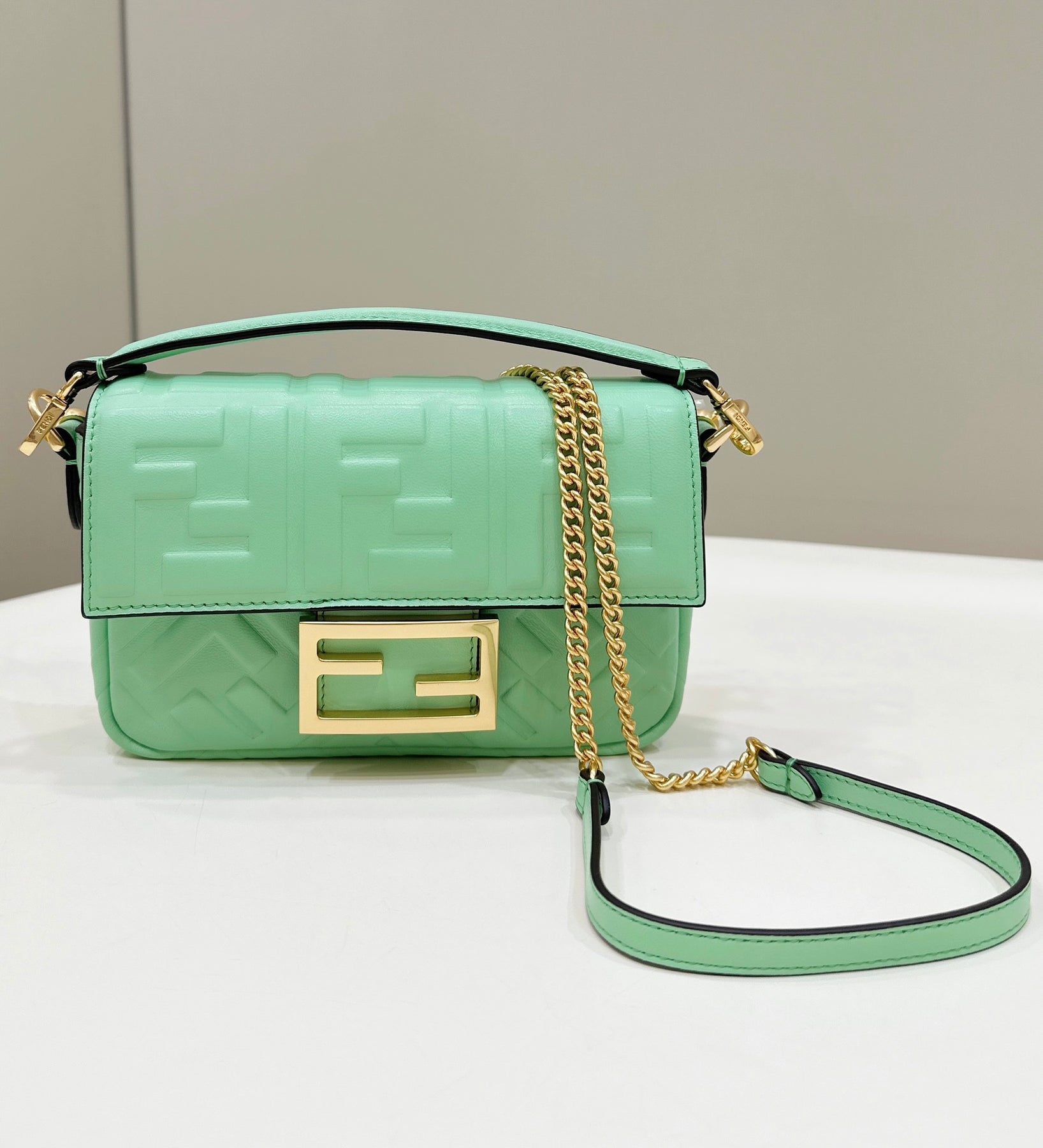 Fendi Baguette Mini Sheepskin Bag - Green (Style 0135S)
