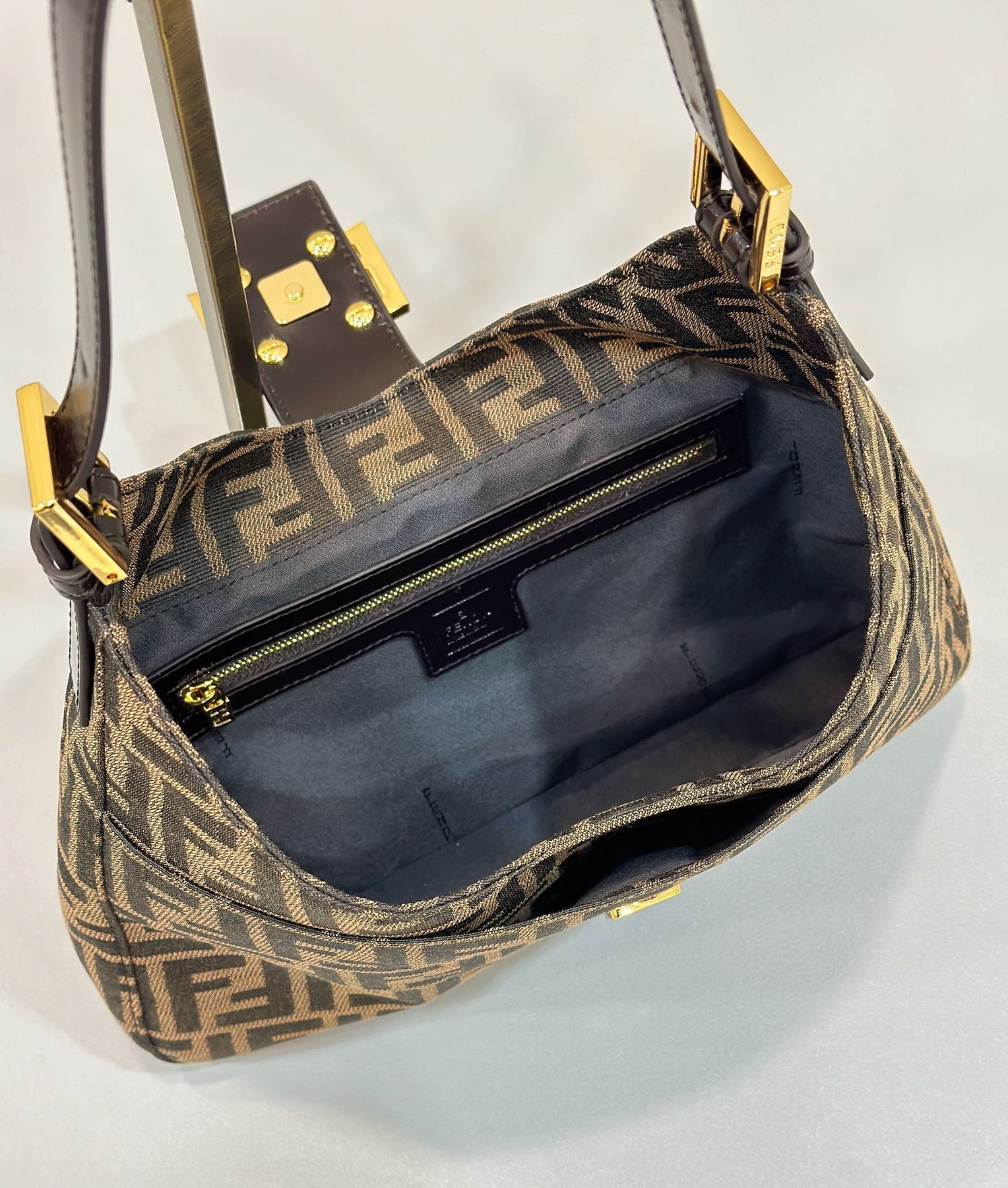 Introducing the FENDI Canvas Armpit Bag, expertly crafted from high-quality imported canvas material known for its durability and shape retention. With generous interior capacity, this bag effortlessly complements a variety of retro styles, making it a timeless addition to any wardrobe. Ideal for daily use or special occasions, it features a full set of packaging and an invoice for authenticity.