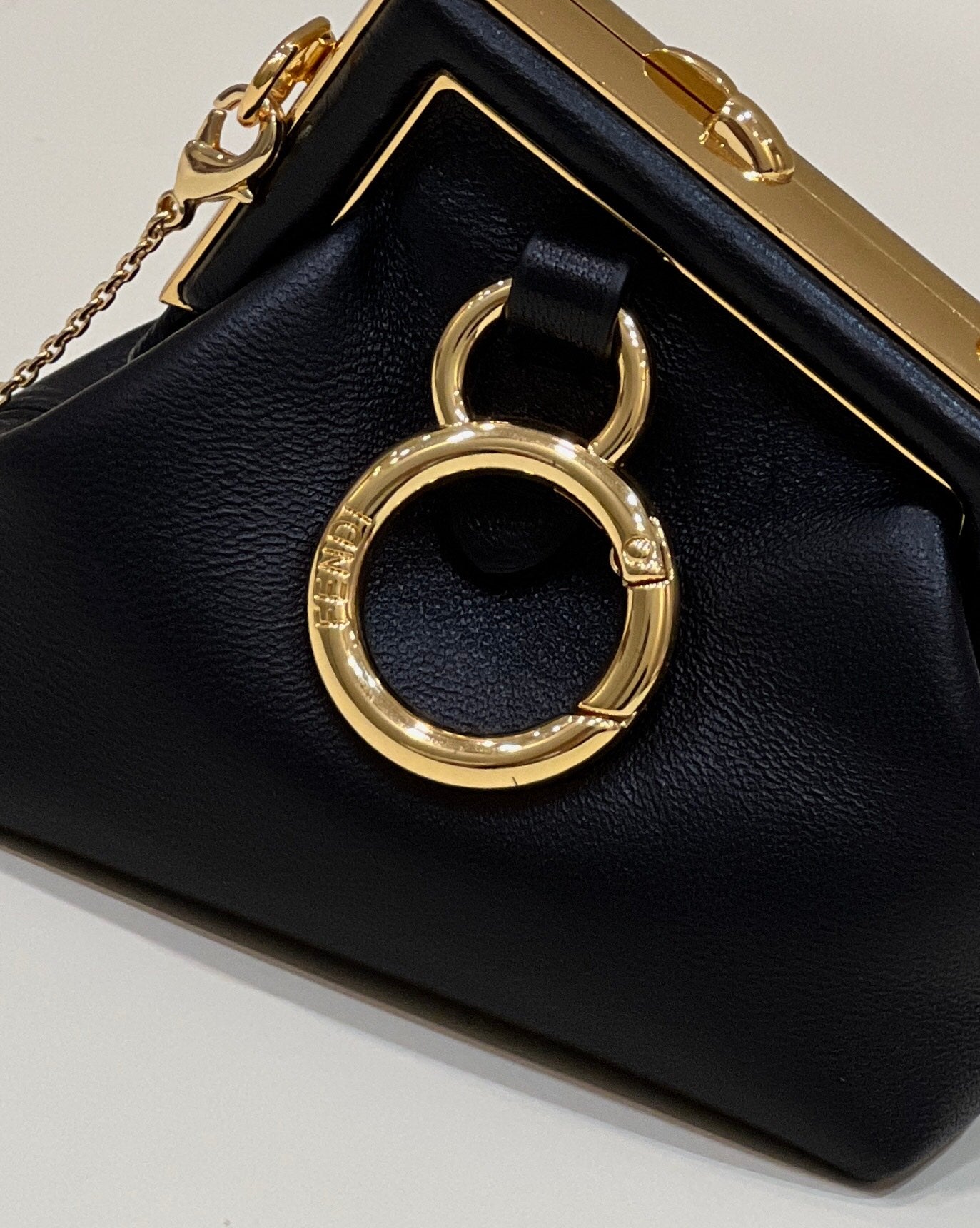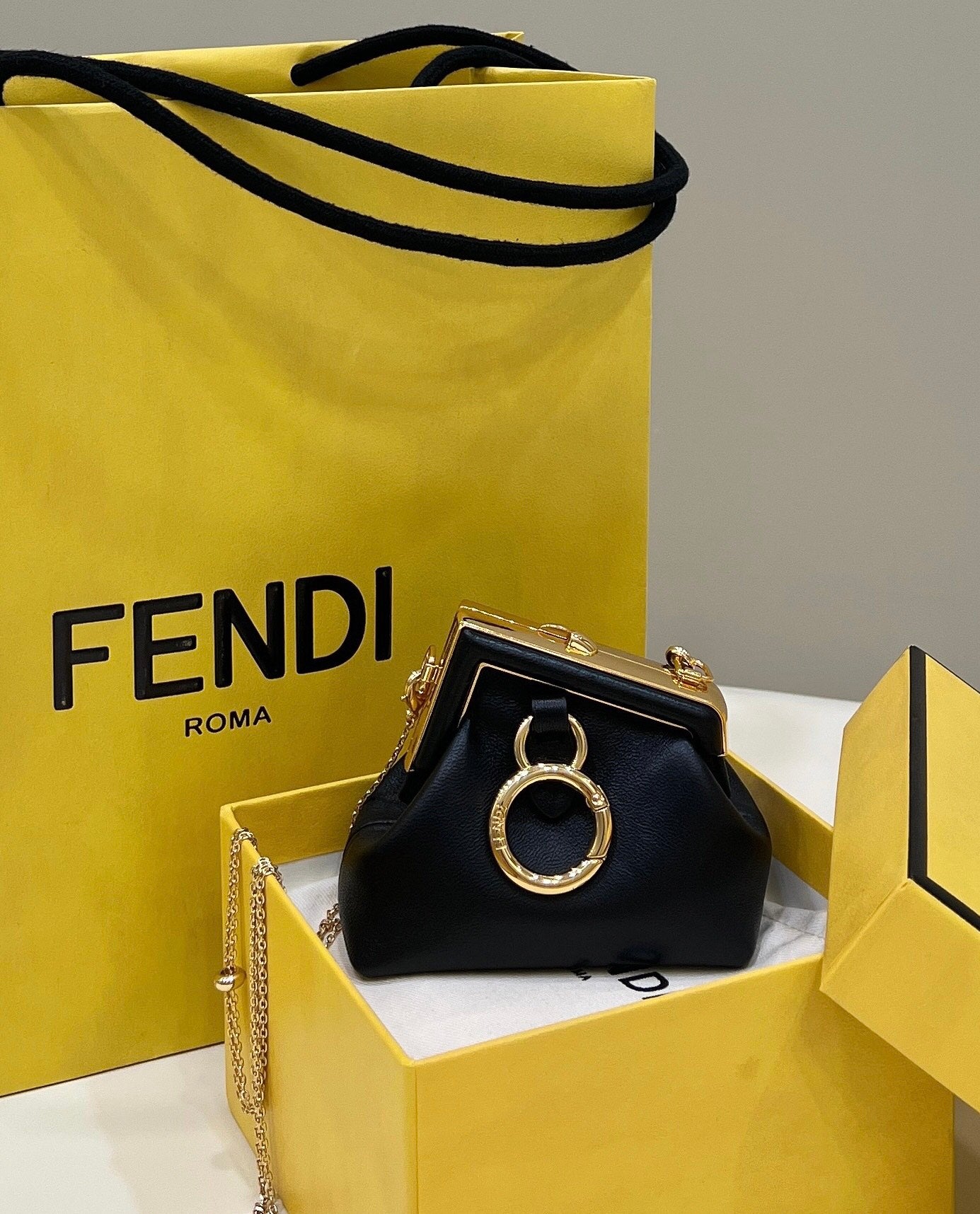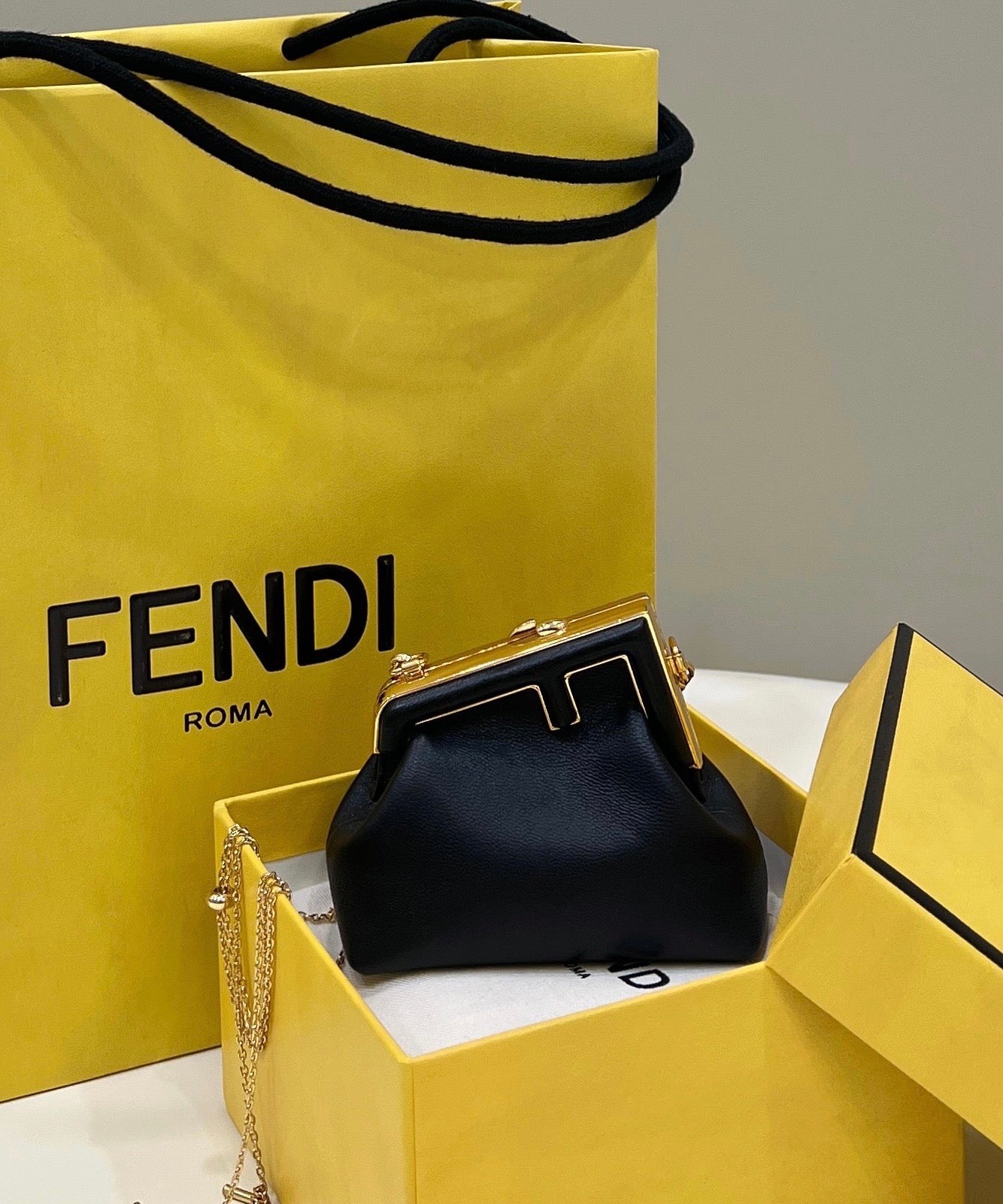 Introducing the Fendi❤️First series, featuring a striking design that highlights the iconic letter 'F' in a diagonal frame outline. With its unique asymmetric shape, this handbag combines fashion and functionality effortlessly.