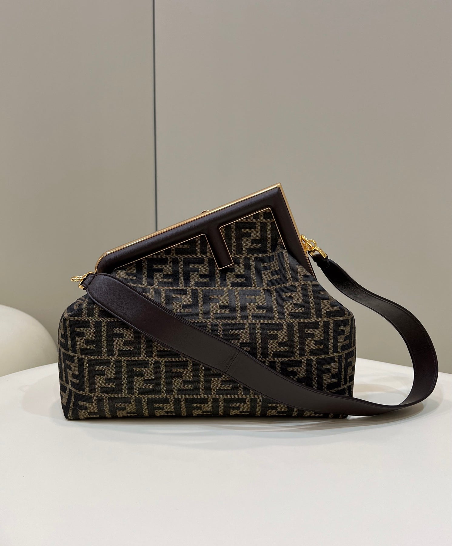 Elevate your style with the Fendi ❤️ First Series Handbag, featuring a distinctive diagonal frame design that highlights the iconic letter "F". This innovative and fashionable accessory boasts a unique asymmetric shape, making it a statement piece for any occasion. Versatile in nature, it can be effortlessly carried as a handbag or worn as a shoulder bag thanks to the convenient detachable shoulder strap. Crafted from soft leather, this handbag feels luxurious to the touch and is highly recommended by celebrities. Measuring 32.5 x 15 x 23.5 cm, this complete set is a must-have addition to your collection. Please note that the chain is sold separately. Don’t miss the opportunity to own this sophisticated and multi-functional piece!