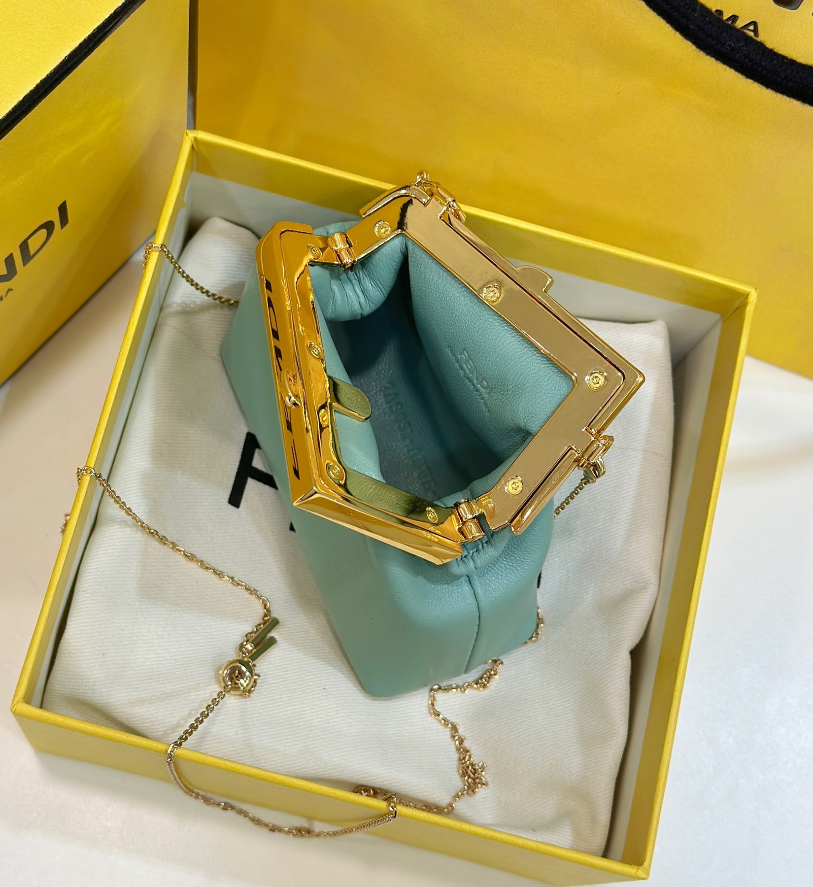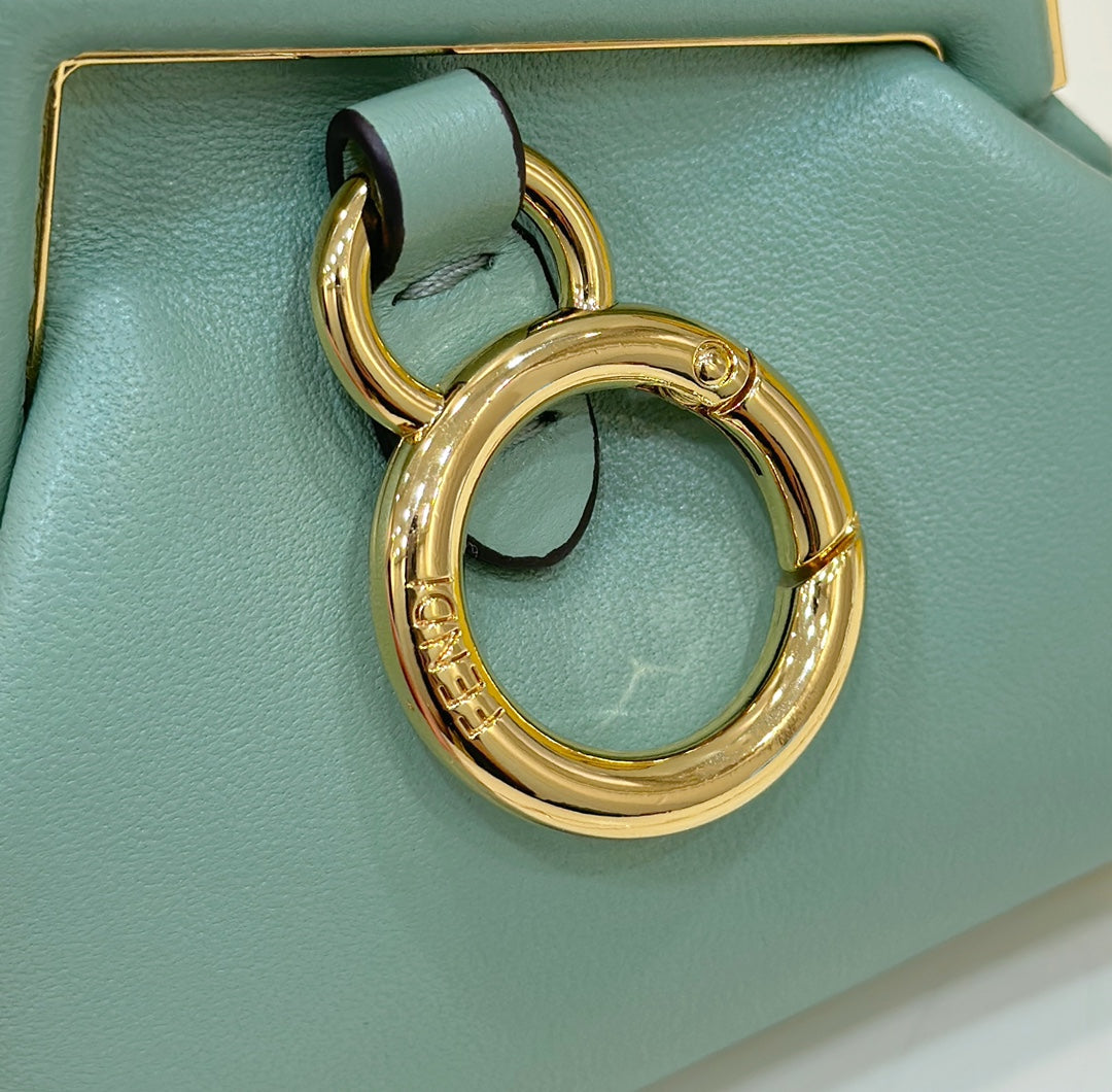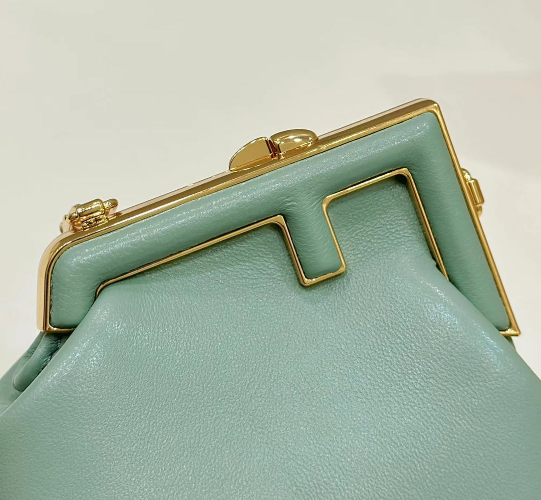 Introducing the Fendi First Series Handbag, a stunning blend of innovation and elegance. Featuring the iconic letter "F" in its unique diagonal frame design, this handbag stands out with its fashionable asymmetric shape. Versatile and stylish, it can be carried as a handbag or converted into a shoulder bag using the detachable wide shoulder strap, allowing for effortless transitions. Crafted from soft leather, this handbag offers a luxurious feel that's highly recommended by celebrities. Its dimensions of 11.5 x 5.5 x 10 cm make it the perfect size for all your essentials. Elevate your style with this multi-functional accessory that is truly worth owning.