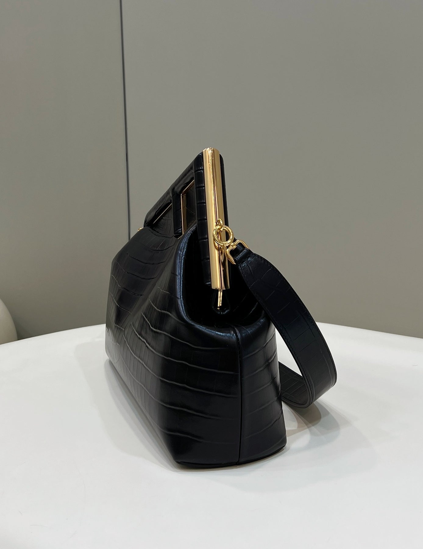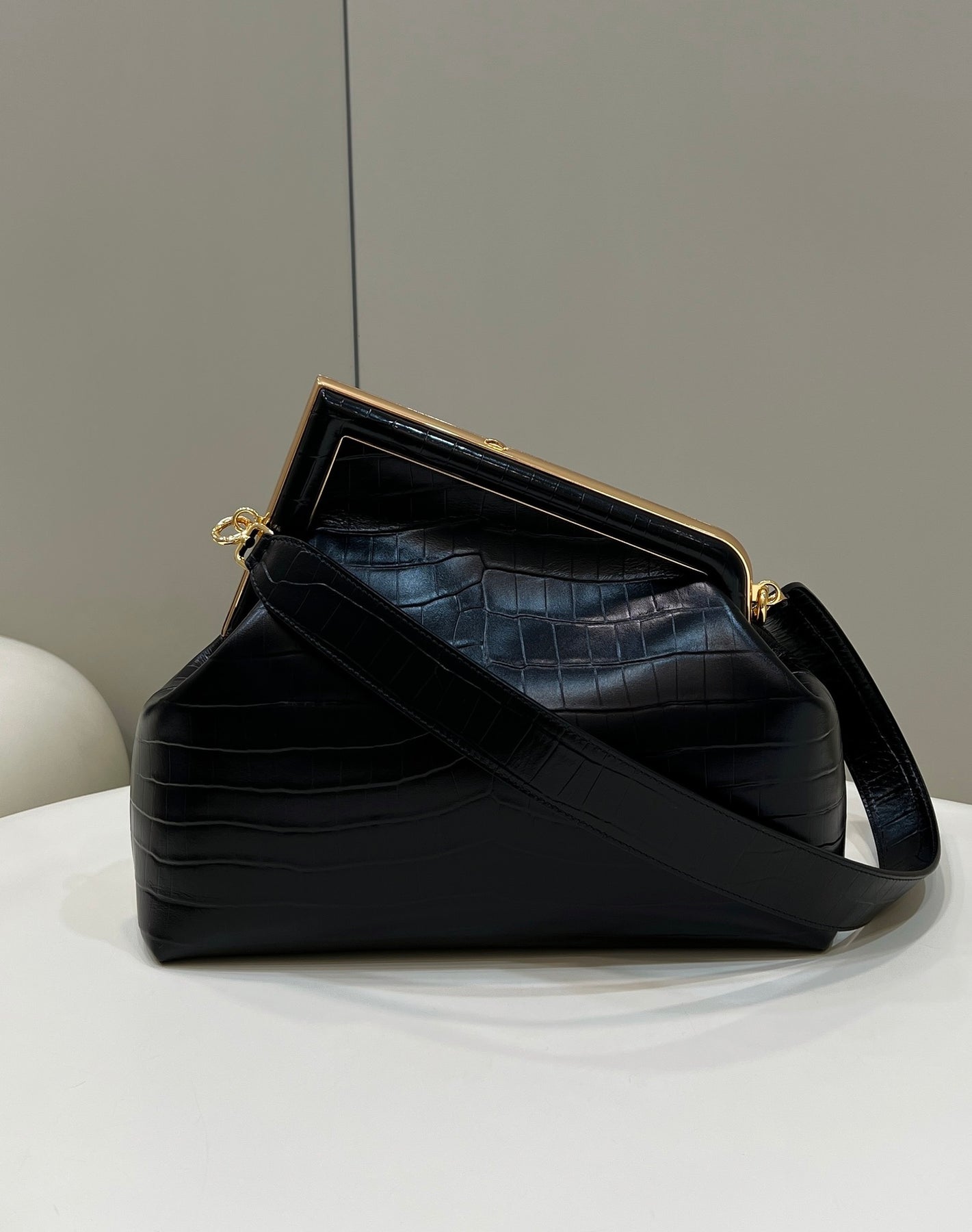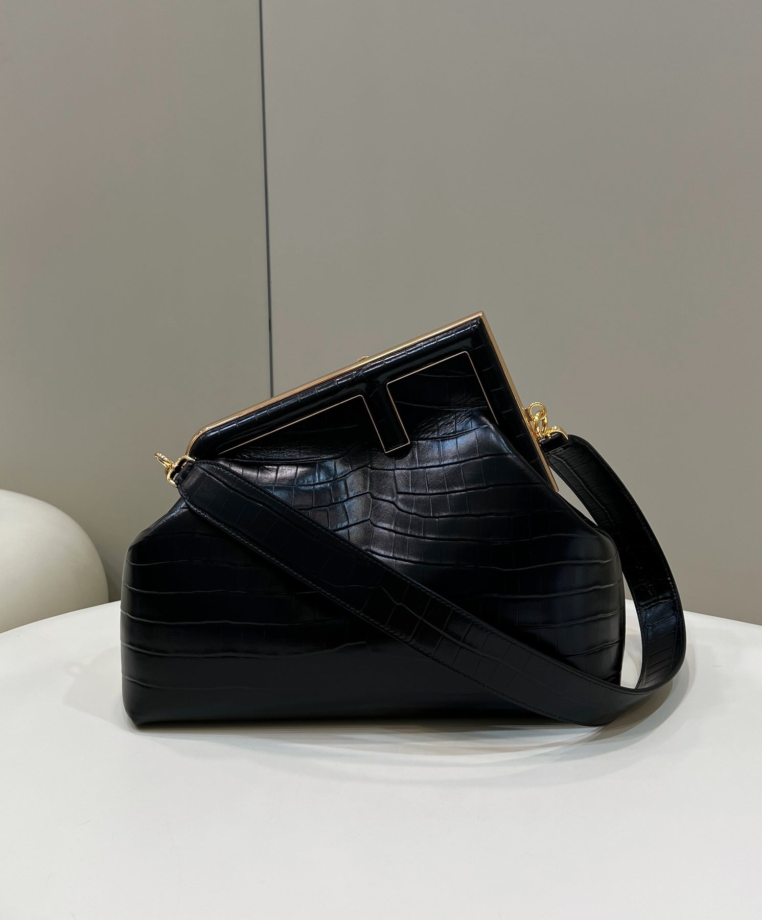 Discover the Fendi❤️First Series, where innovative design meets timeless elegance. This striking handbag showcases the iconic letter F within a sleek diagonal frame, elevating your style with its unique and fashionable asymmetric shape. Versatile in function, it can be carried as a handbag or worn as a shoulder bag with its detachable strap. Crafted from luxurious soft leather, this piece boasts a comfortable feel and is highly recommended by celebrities. Make a statement with a bag that combines practicality and sophistication.