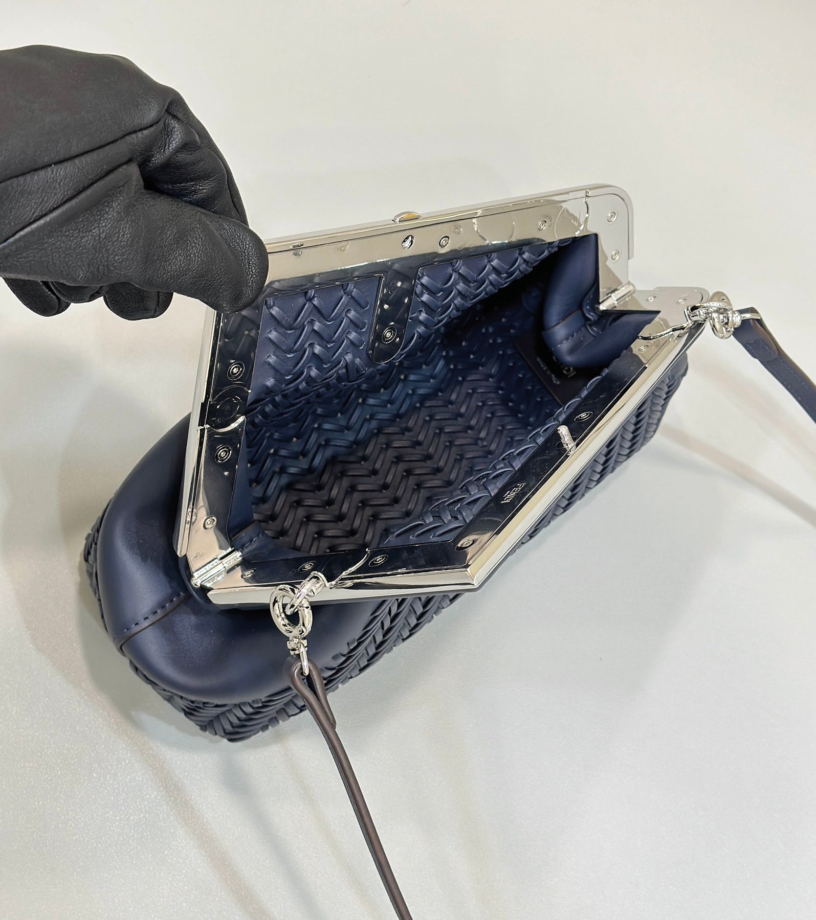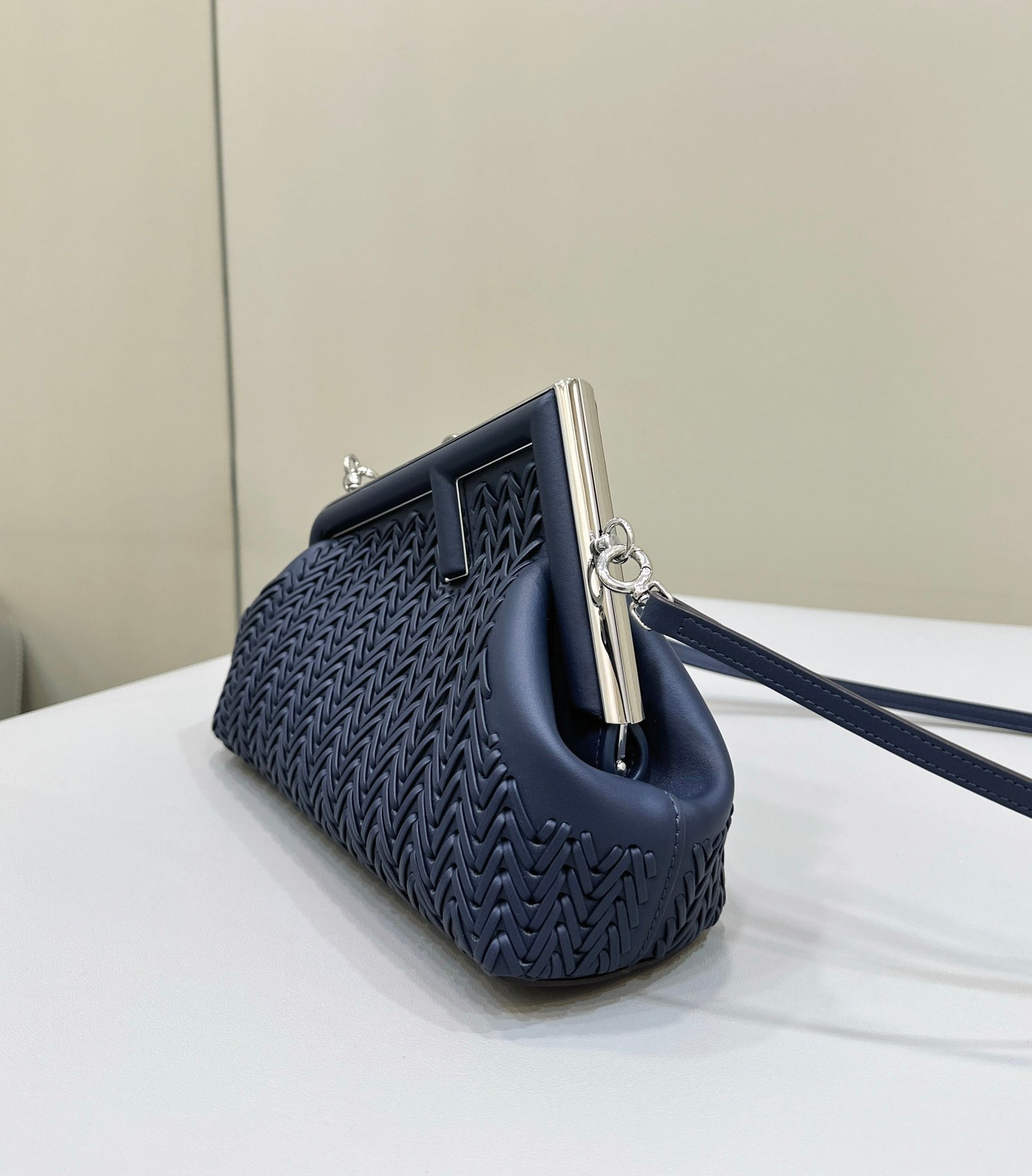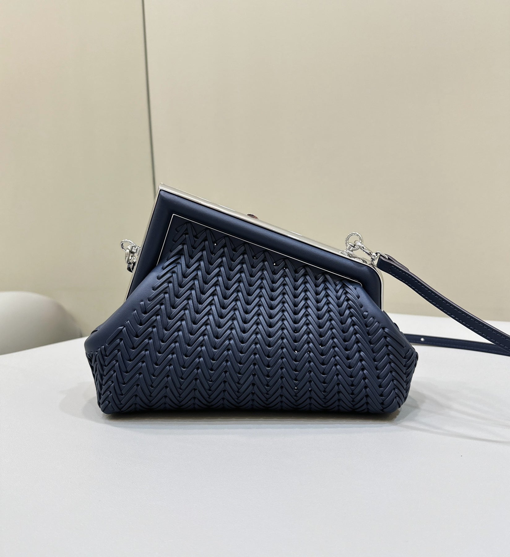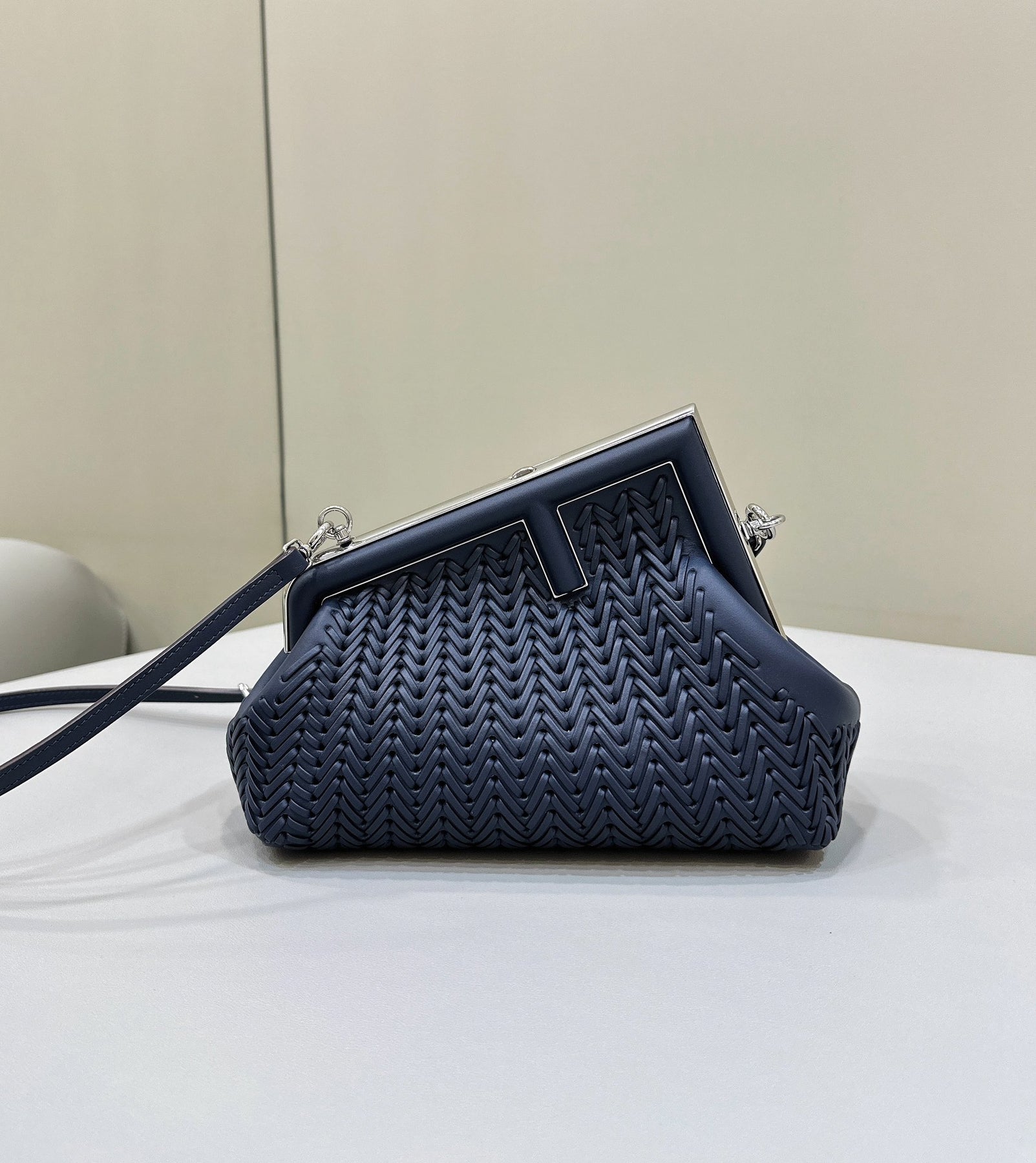 Introducing the Fendi❤️First Series Handbag in a striking royal blue hue. Crafted from fine cowhide with exquisite weaving, this bag showcases the iconic 'F' design element, framed by a modern diagonal outline. The unique asymmetric shape offers a fashionable aesthetic while ensuring practicality.