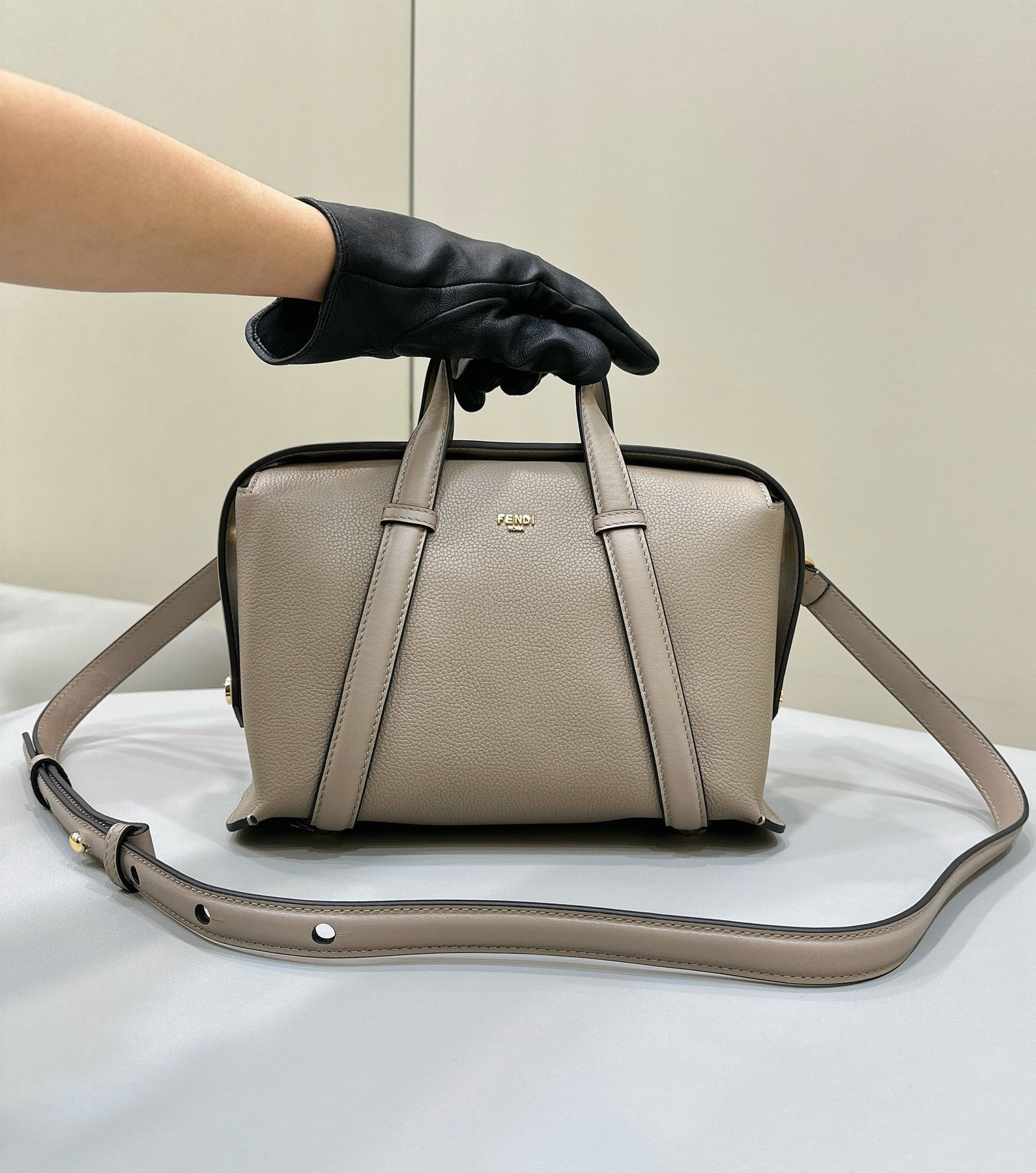FENDI Full-Grain Cowhide Boston Handbag - Dove Gray