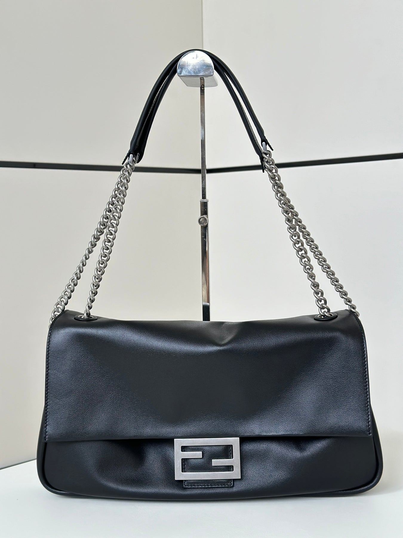 Fendi Iconic Large Baguette Chain Handbag in Soft Calfskin