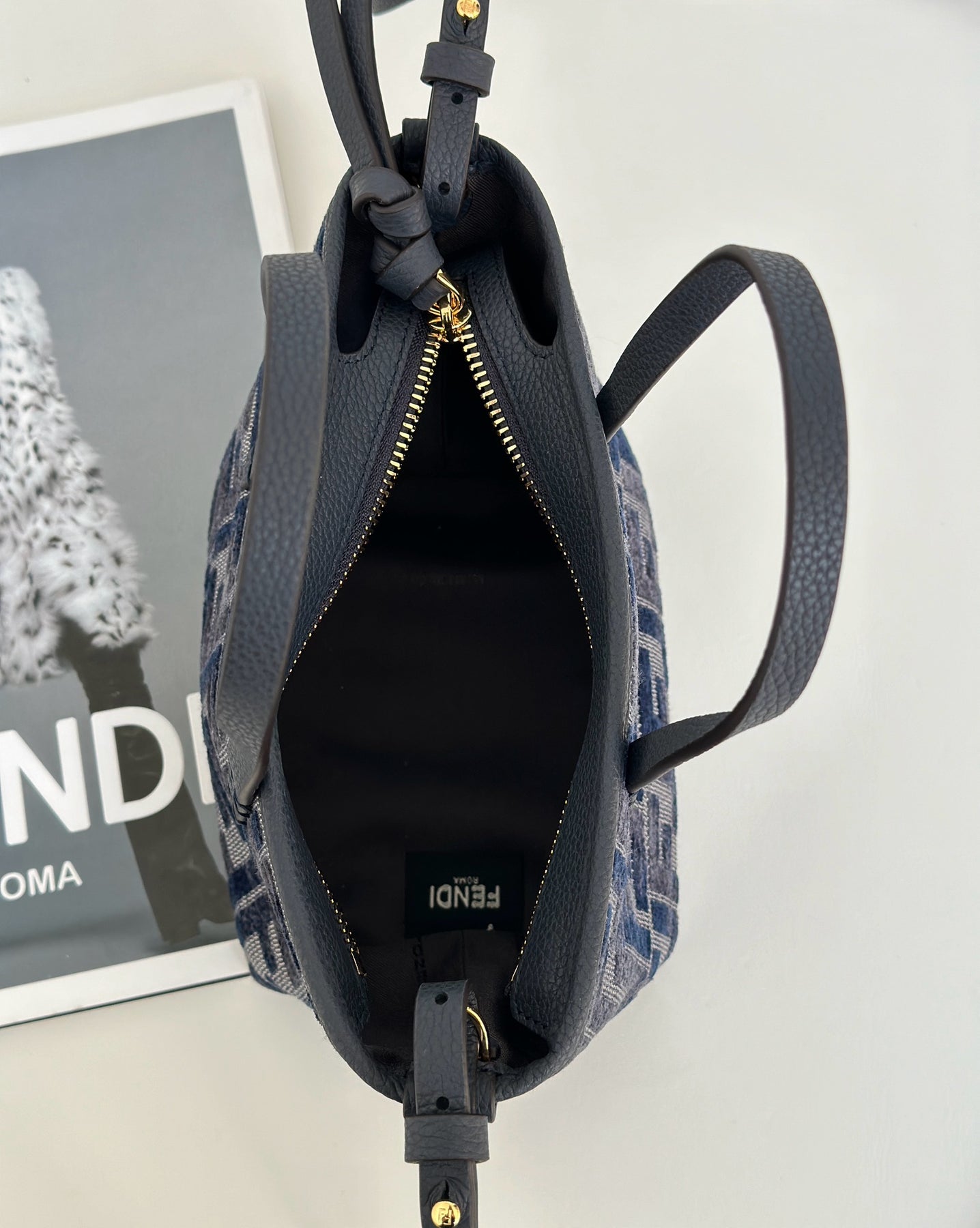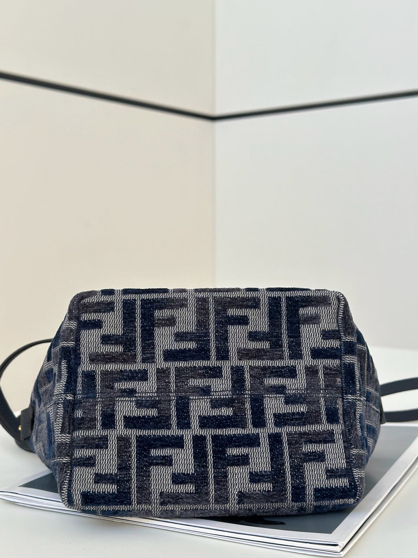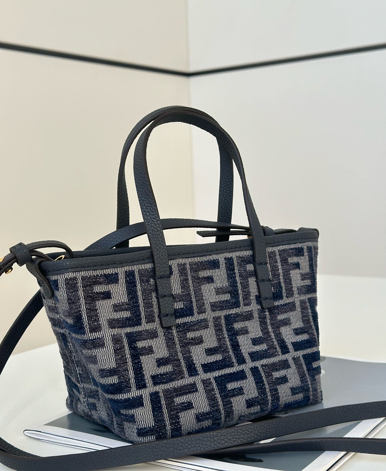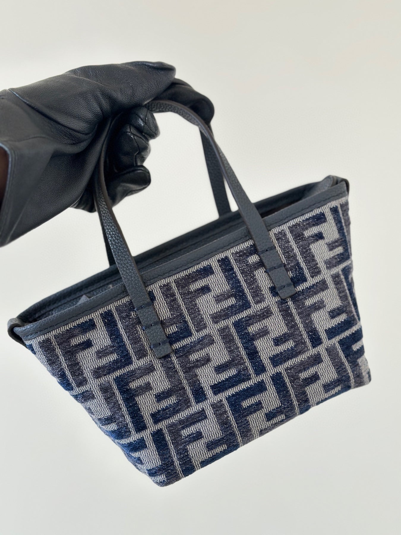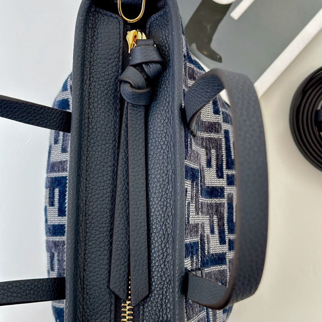 Elevate your accessory game with Fendi’s Mini Roll Bag, crafted from luxurious chenille material and featuring a stylish gradient classic double F logo in a striking dark blue calfskin. This chic bag boasts a secure zipper closure for added privacy and ample space for your essentials. Designed for versatility, it can be comfortably worn as a backpack for a relaxed, carefree look or carried over the shoulder using the detachable strap.