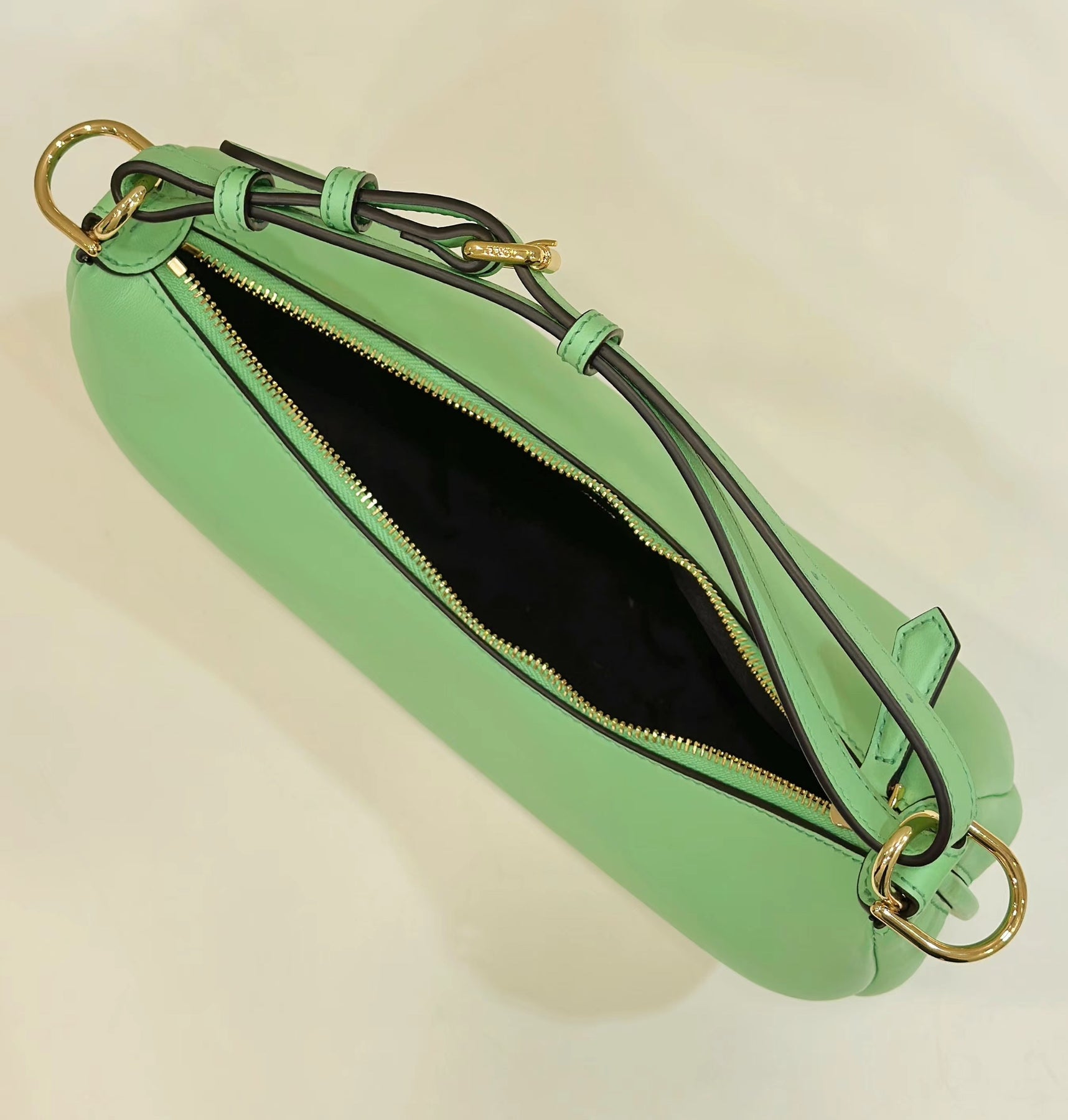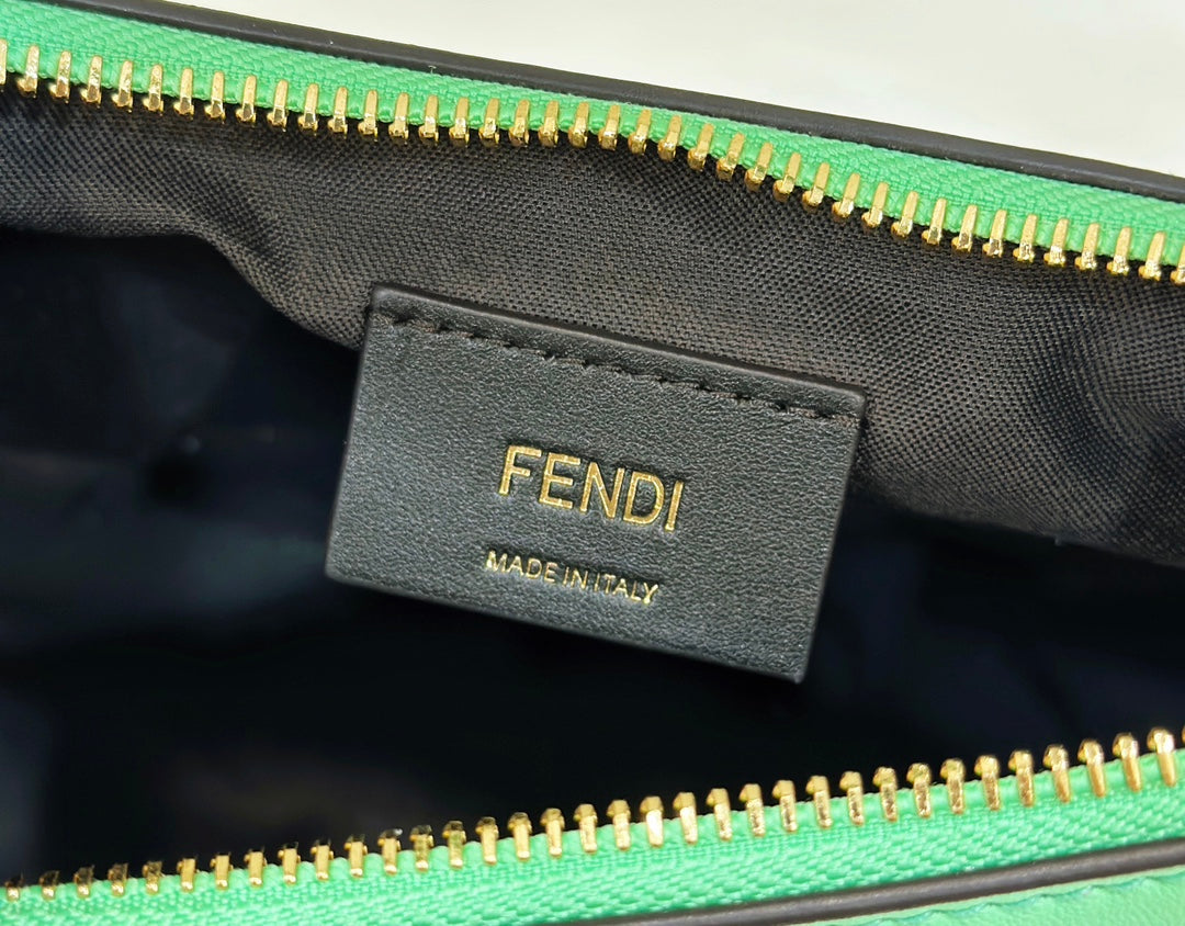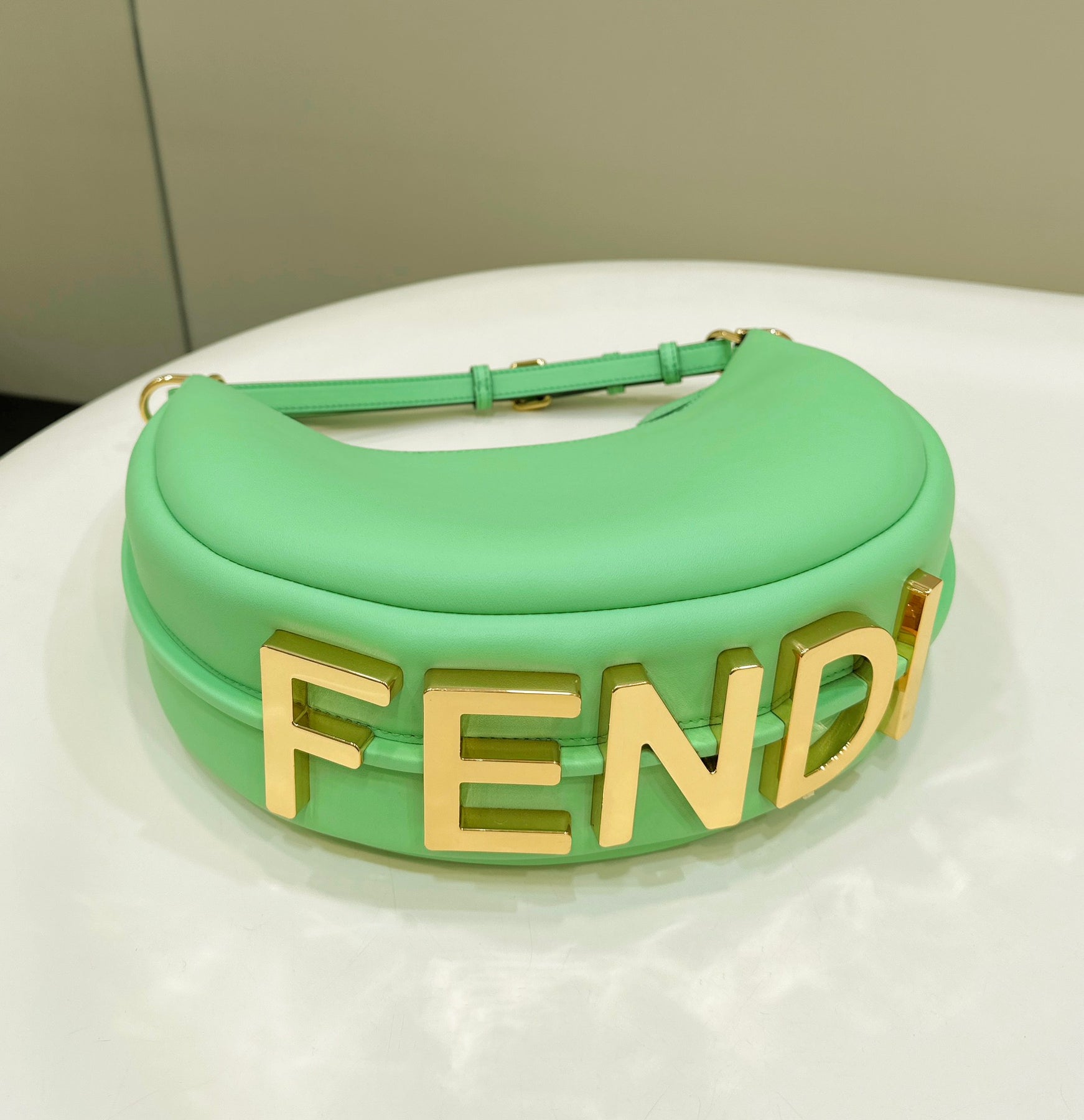 Introducing the Fendigraphy Tote, a new seasonal icon that combines bold elegance with exceptional functionality. Crafted from luxurious soft calfskin, this tote exudes a distinct layered silhouette that is both striking and sophisticated. With a spacious interior designed for your essentials, it seamlessly marries style and practicality. Its dimensions of 29 x 24.5 x 10 cm make it the perfect companion for any occasion. Elevate your accessory collection with this unique piece that boasts an unparalleled feel and chic aesthetic. Style number: 80056M. Available in vibrant green.