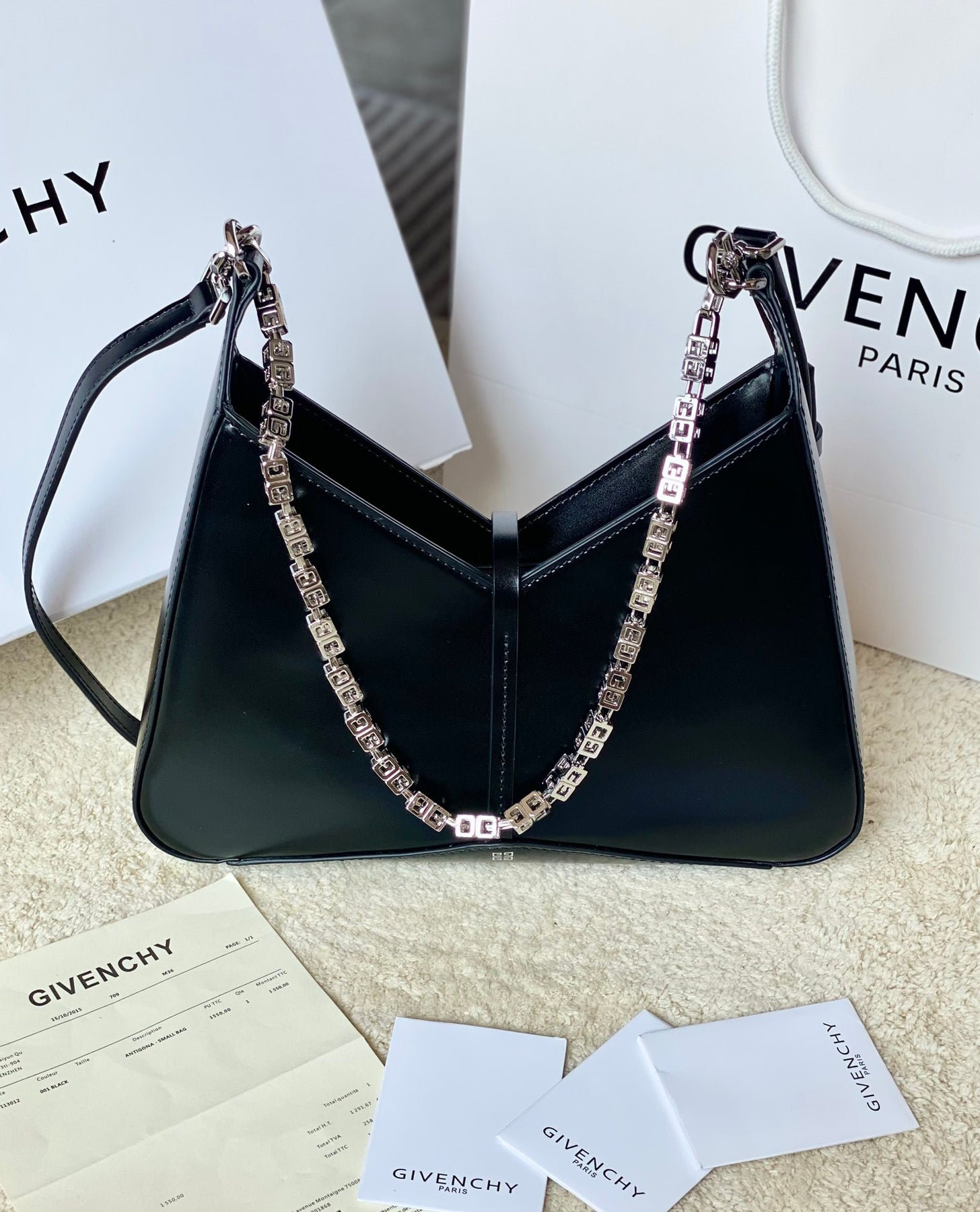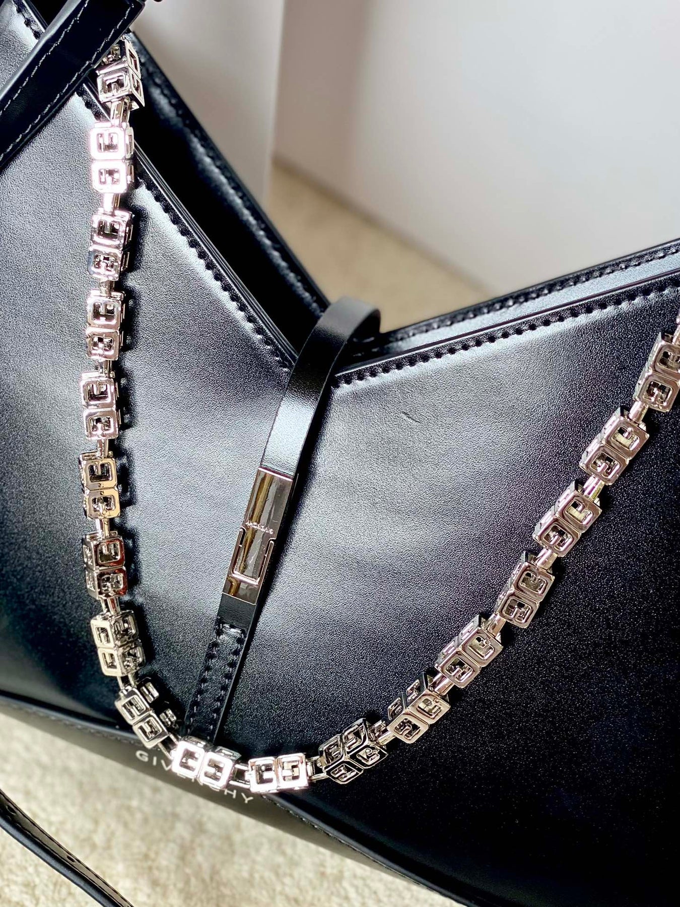 Elevate your accessory collection with the latest Cut Out handbag from GIVENC*Y. This charming and elegant handbag is crafted from high-quality French leather and features a stunning design complemented by durable cast copper 4G hardware.