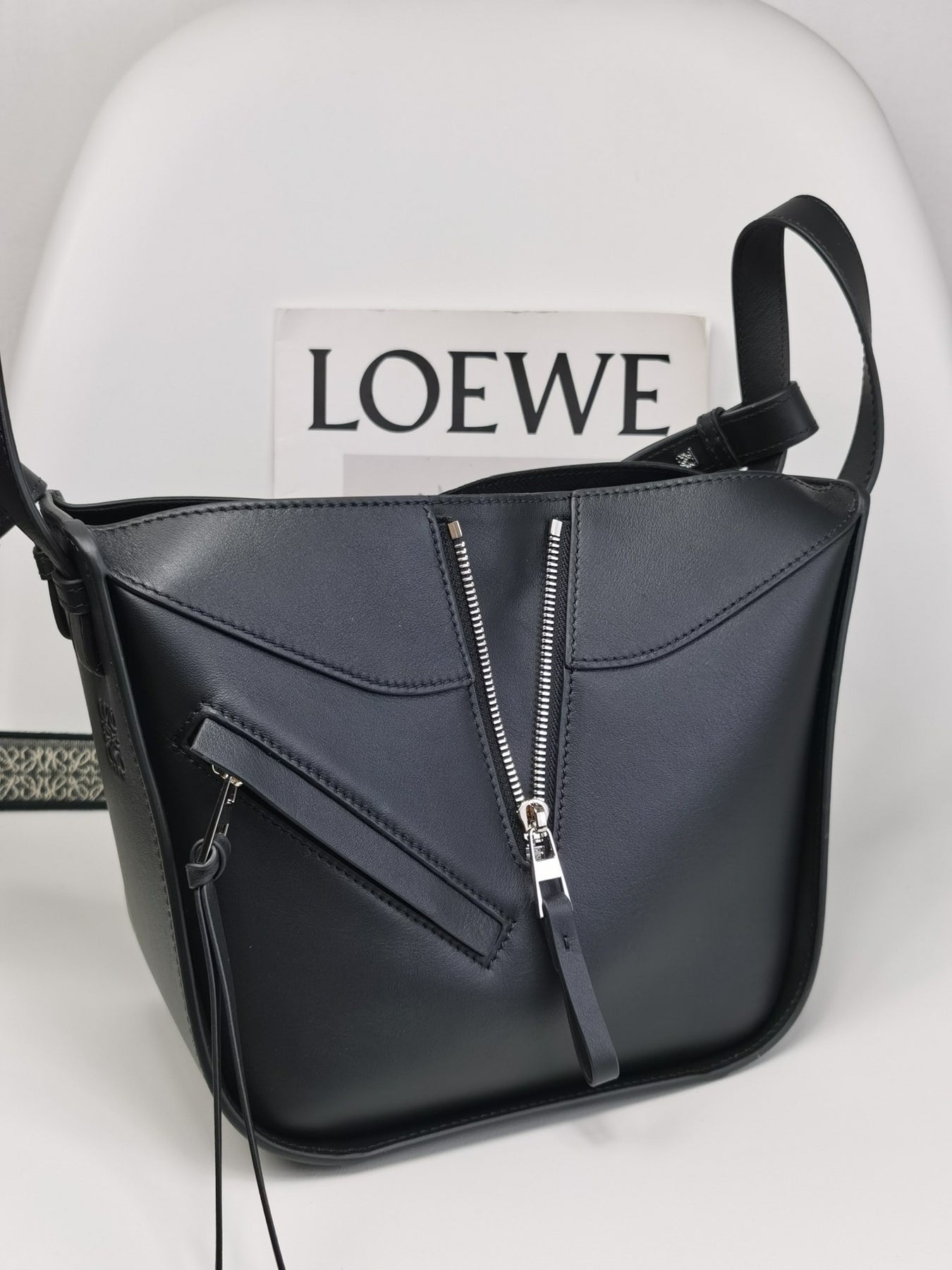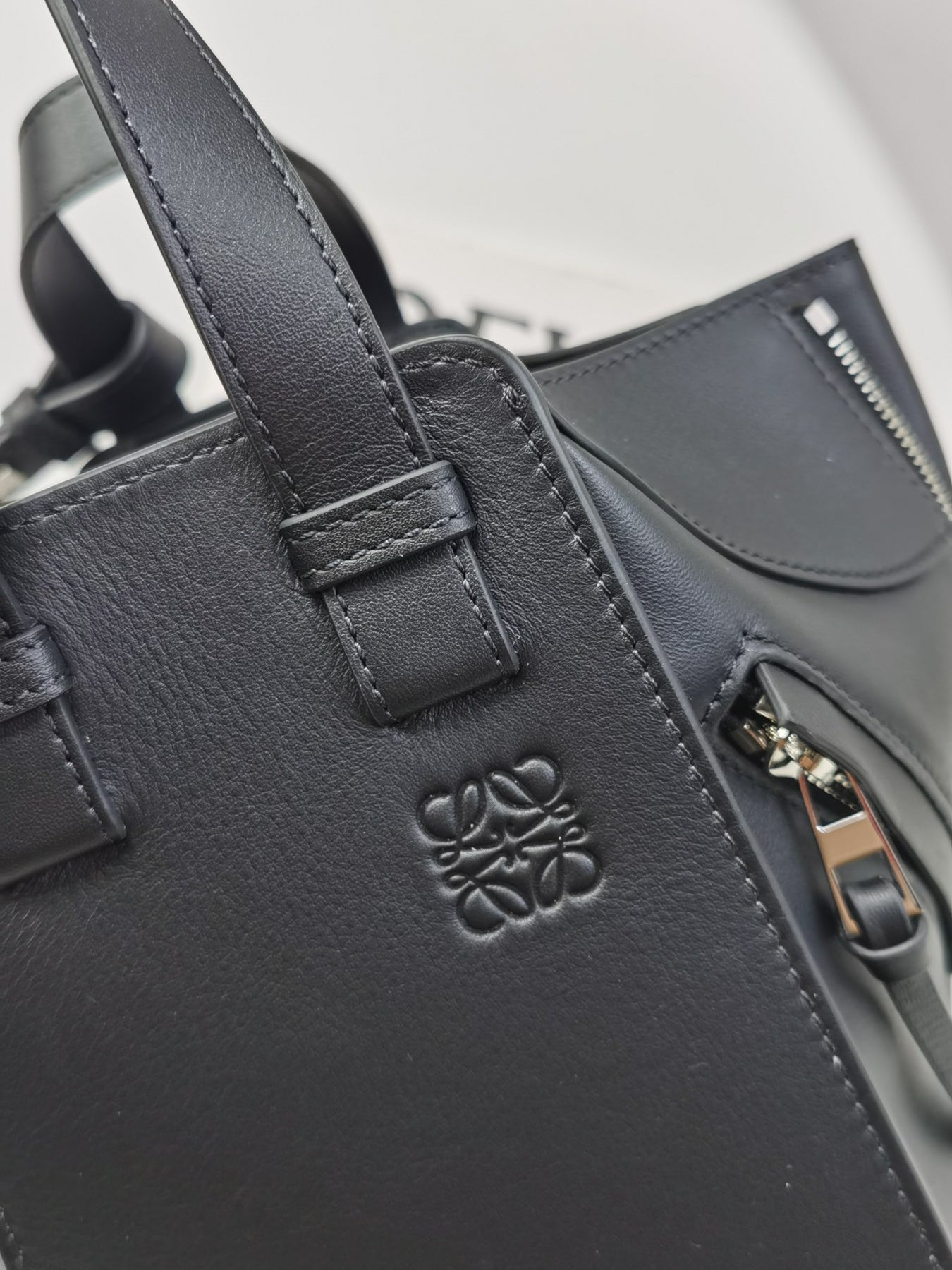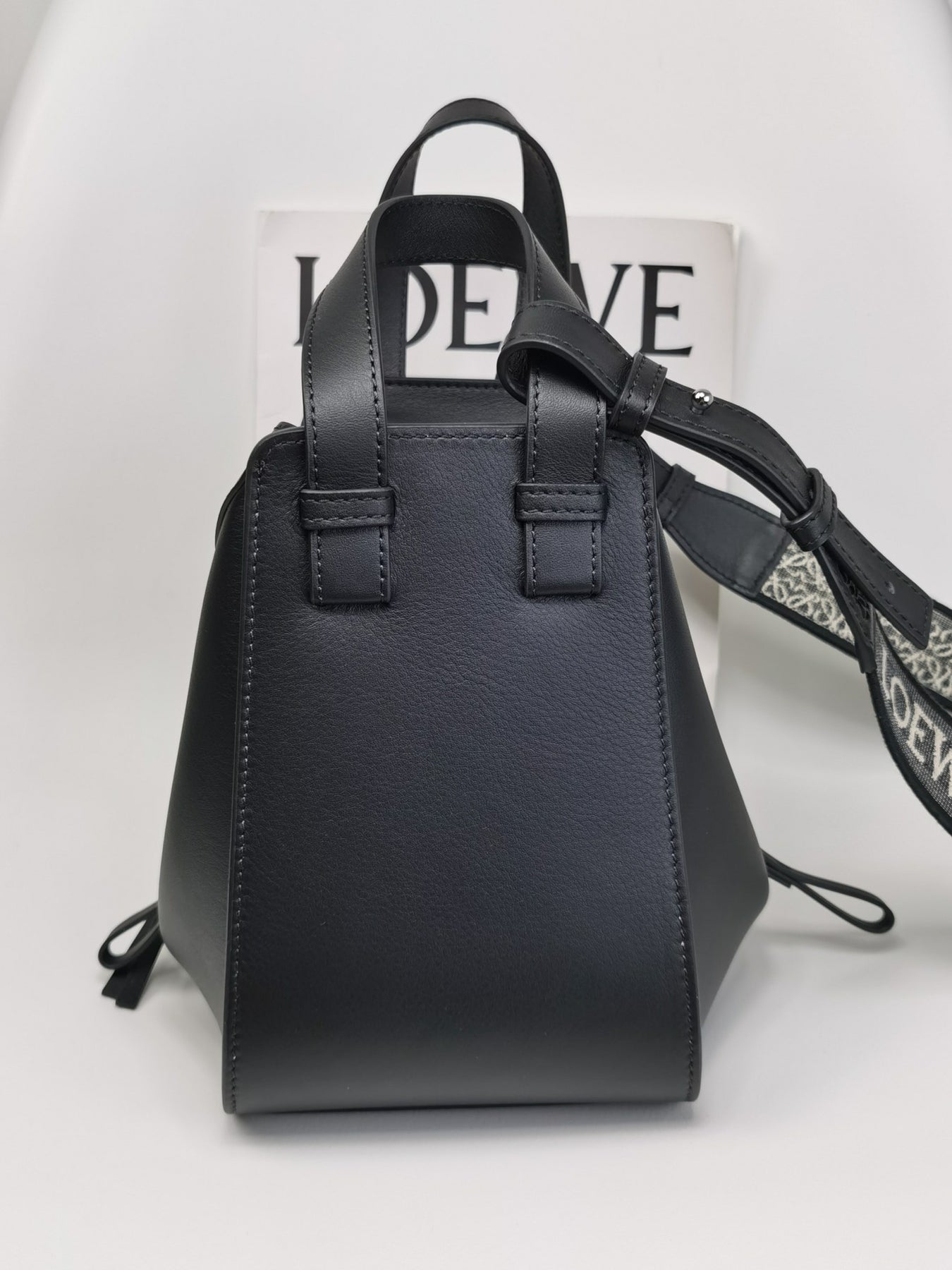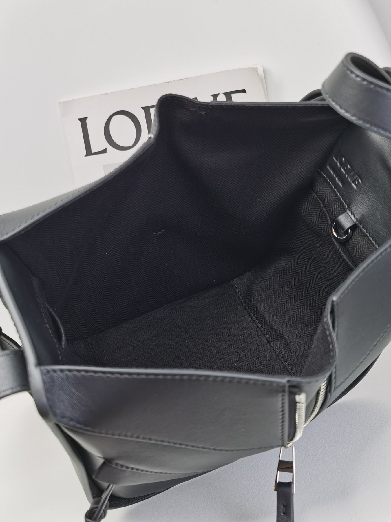Introducing the Genuine Leather Hammock Bag, a sophisticated blend of style and functionality. Crafted from premium satin calfskin in an elegant black hue, this versatile bag transforms effortlessly, thanks to its soft side panels that adjust to your needs.