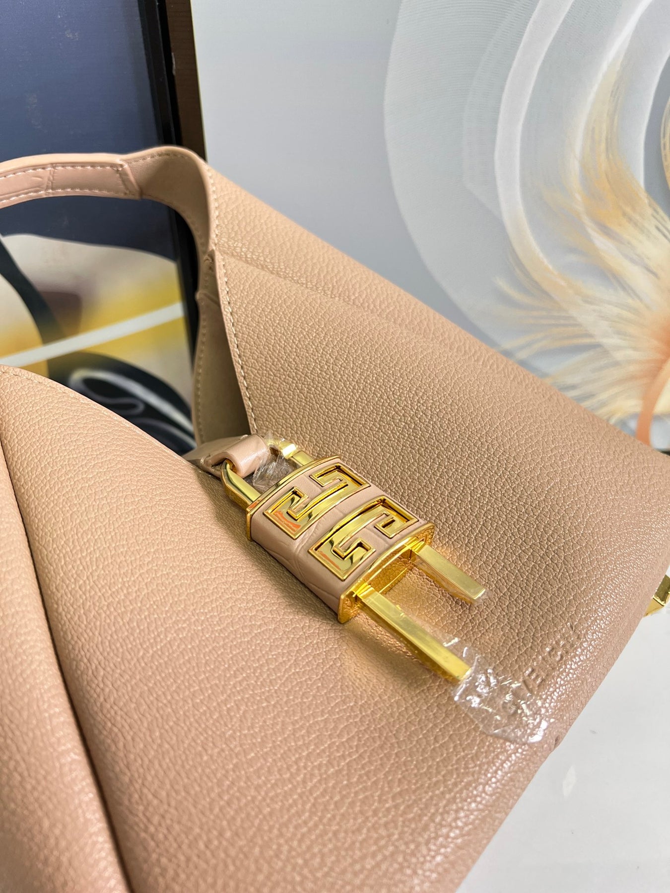 Givenchy G-Hobo Mini Leather Handbag with Gold Finish – Apricot