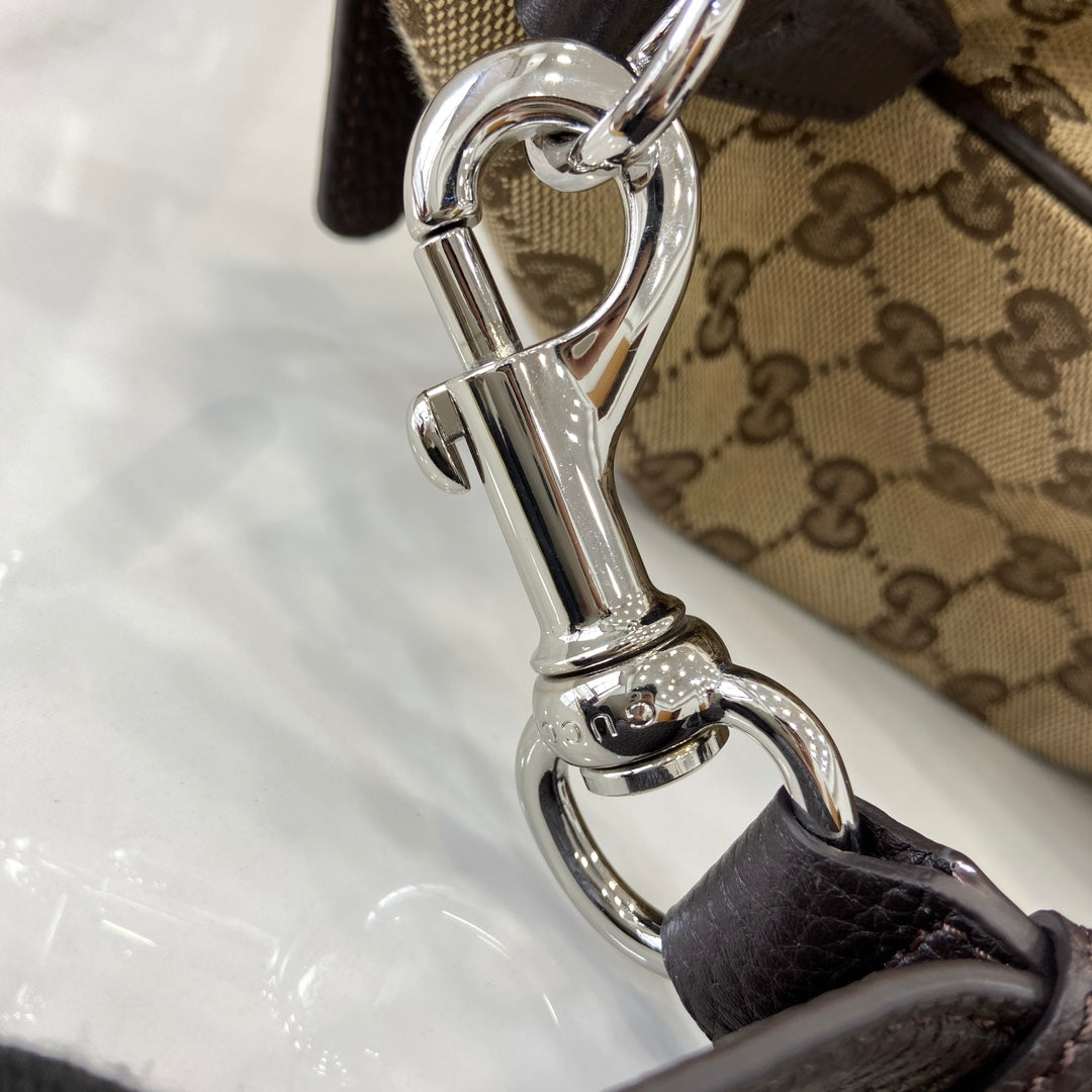 Introducing the Gucci Body Double Lock Shoulder Bag from the 2025 early spring collection. This stylish piece pays homage to an archival design while featuring a modern, casual silhouette with elegant draping. Crafted from premium beige and dark brown Original GG canvas, this bag is enhanced with brown leather trims for durability and sophistication.