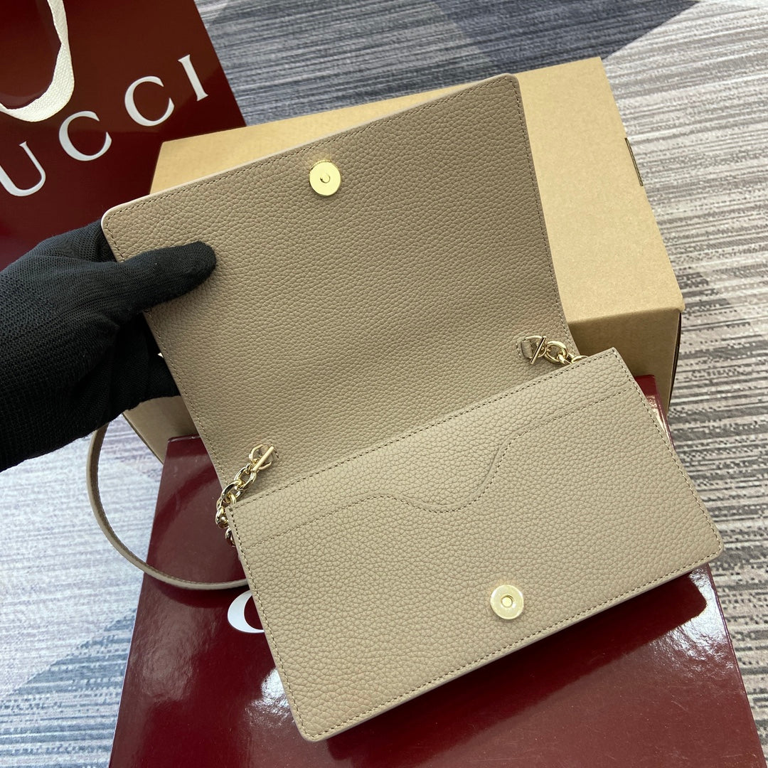 Gucci GG Emblem Taupe Leather Chain Bag - Model 818705