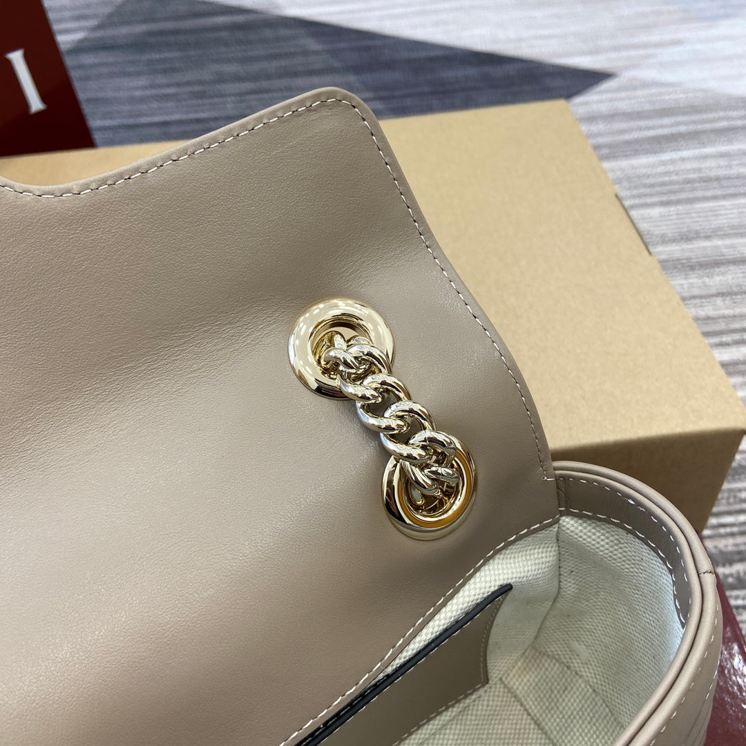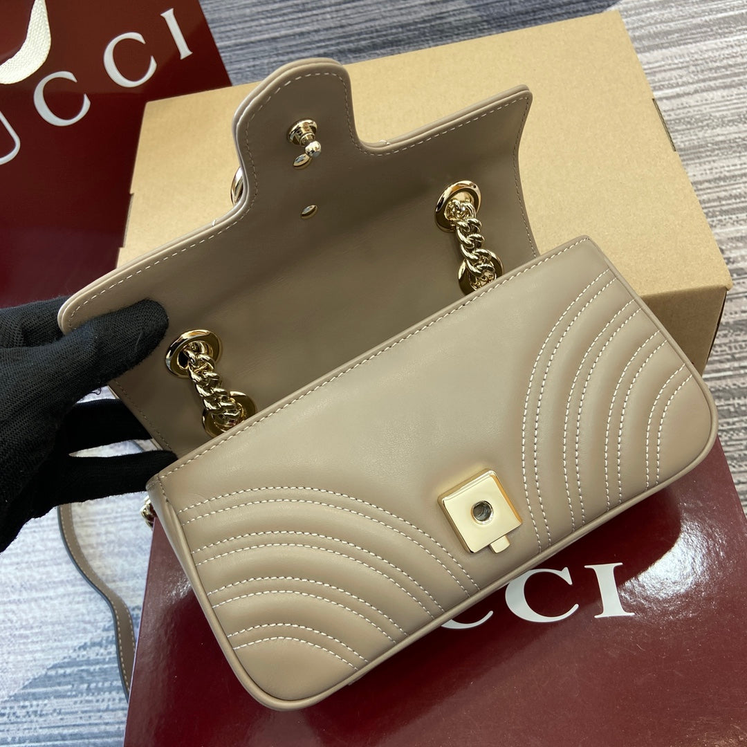 Elevate your style with the Gucci GG Marmont Mini Quilted Handbag, a stunning accessory that marries luxury and practicality. Crafted from soft, neutral beige quilted V-shaped leather, this handbag features a classic silhouette that is instantly recognizable.