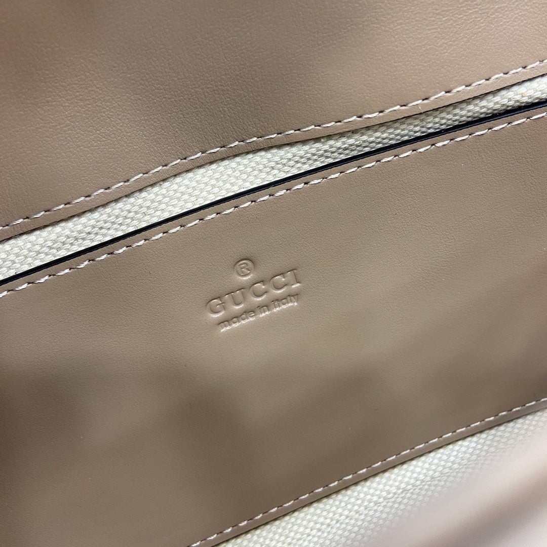 Designed with a slightly structured body, it offers a convenient flap closure, accented with the iconic double G hardware for a touch of elegance. Versatility is key with this bag; effortlessly transition from a chic handbag to a stylish shoulder bag by sliding the adjustable metal chain.