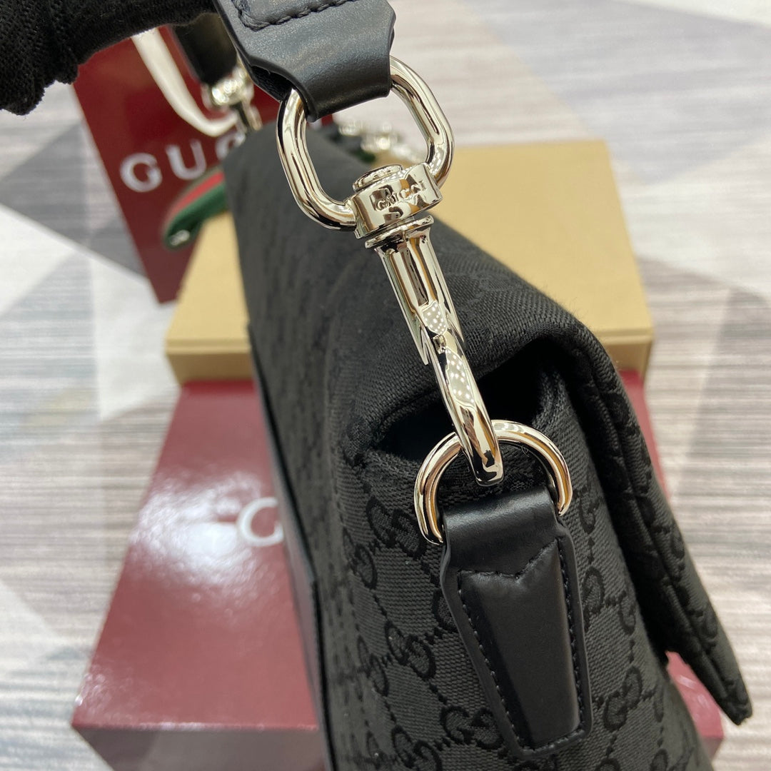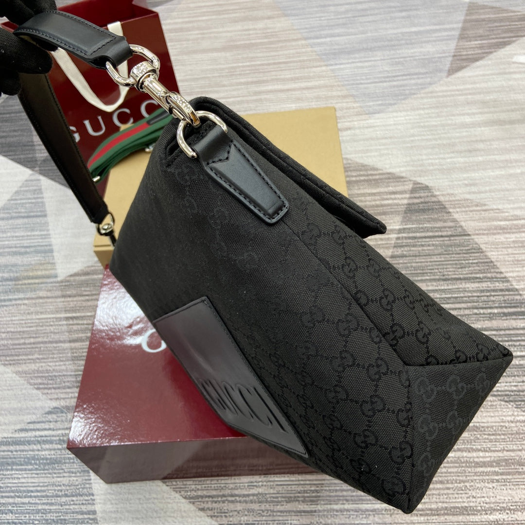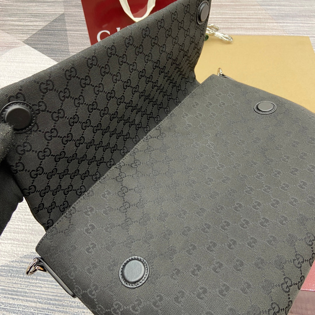 Elevate your style with the Gucci Men's All-Black Crossbody Bag from the Spring/Summer 2025 Collection. This impeccably crafted handbag features a soft yet structured design, made from premium Original GG canvas for a luxurious feel. The smooth texture is complemented by an easy-to-use magnetic flap closure, ensuring your essentials are secure while maintaining effortless accessibility. With thoughtful craftsmanship that balances practicality and elegance, this bag is ideal for daily wear or special occasions. The embossed Gucci logo on the back adds a subtle touch of sophistication.