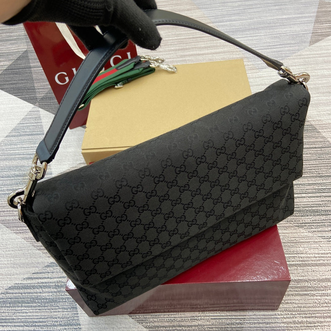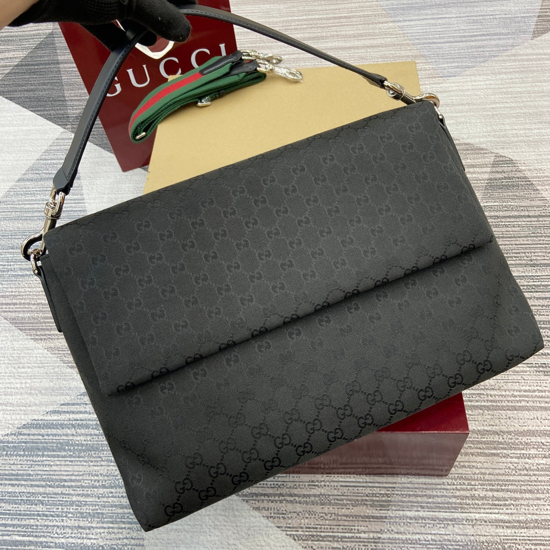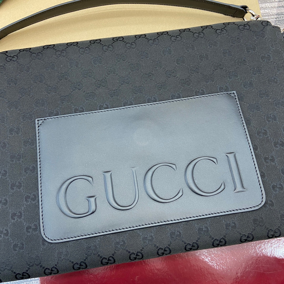 Elevate your style with the Gucci Men's All-Black Crossbody Bag from the Spring/Summer 2025 Collection. This impeccably crafted handbag features a soft yet structured design, made from premium Original GG canvas for a luxurious feel. The smooth texture is complemented by an easy-to-use magnetic flap closure, ensuring your essentials are secure while maintaining effortless accessibility. With thoughtful craftsmanship that balances practicality and elegance, this bag is ideal for daily wear or special occasions. The embossed Gucci logo on the back adds a subtle touch of sophistication.