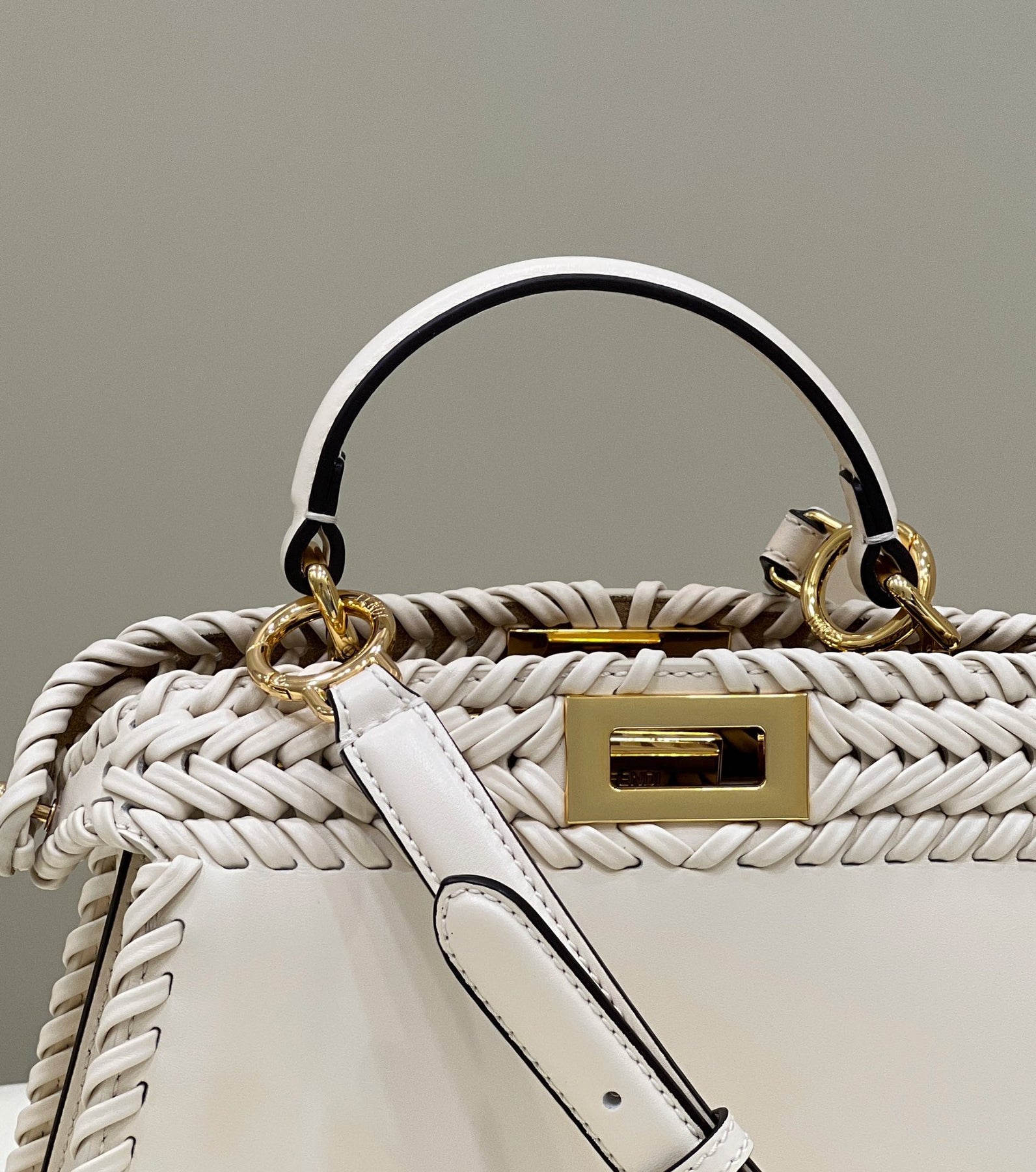 Discover the exquisite Hand-Knitted Peekaboo Bag, crafted from premium full cowhide for a touch of luxury. This unique and stylish accessory features a spacious interior, allowing you to carry your essentials with ease. With its classic design and top-notch finish, this bag is not only functional but also a statement piece for any wardrobe. Measuring 27 × 11 × 22 cm, its versatile size makes it perfect for daily use or special occasions. Elevate your style with the chic Brown Peekaboo Bag, Style Number 80051.